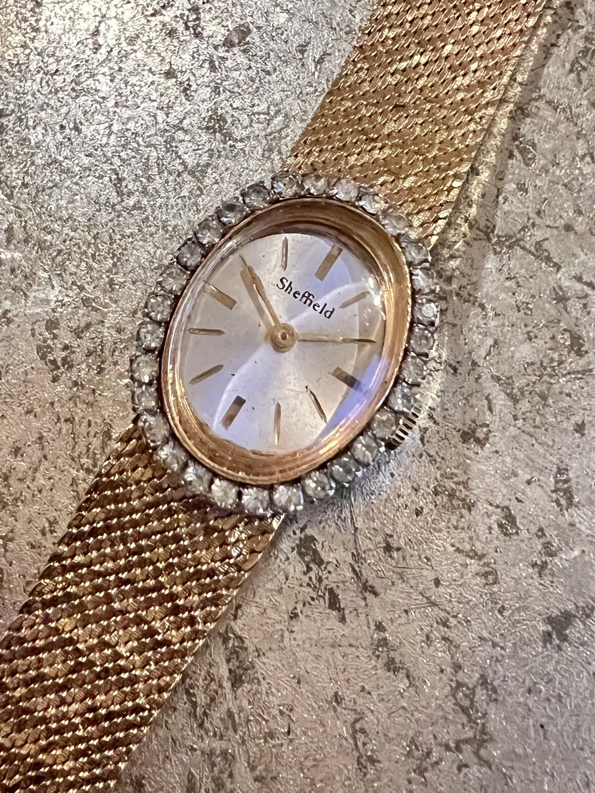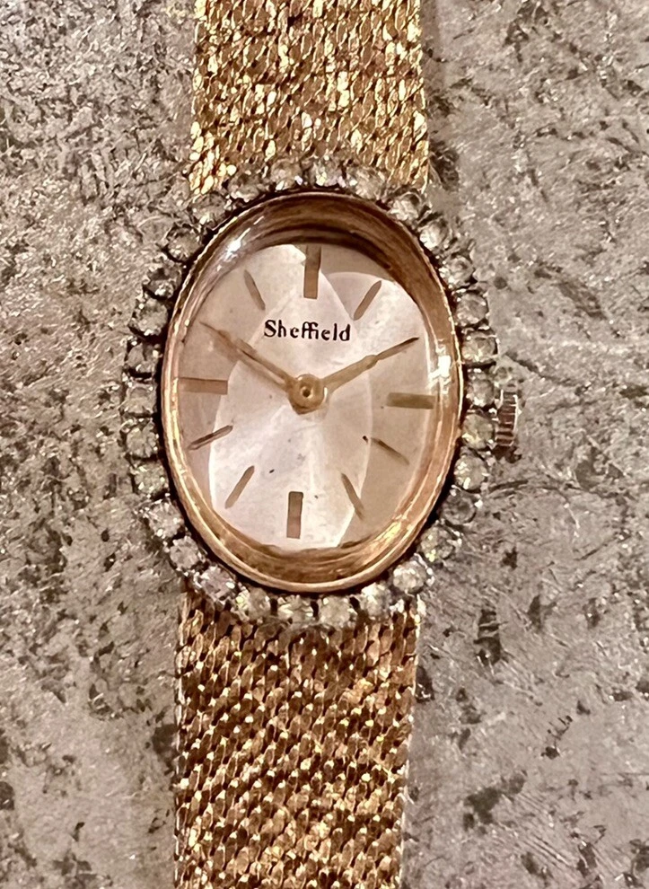 Vintage New 1979 SHEFFIELD Diamond Women’s 26mm Mechanical Hand Wind Watch Gold