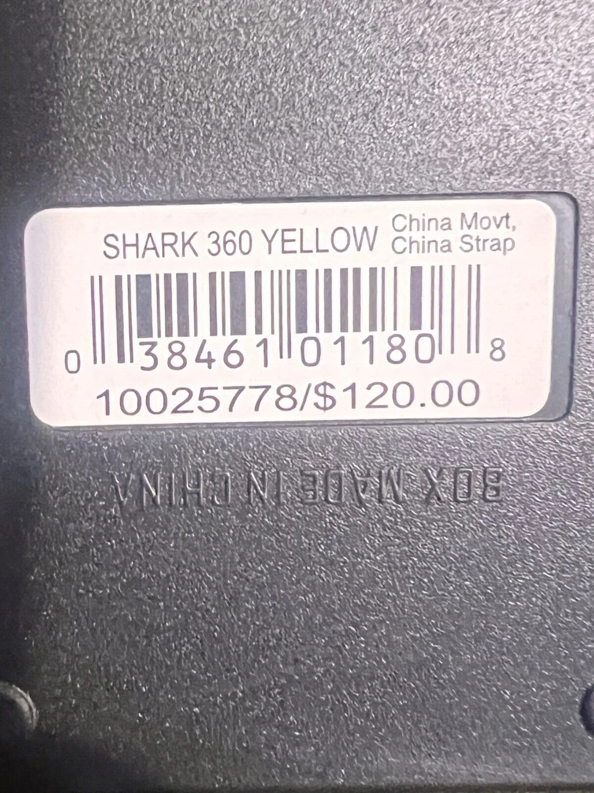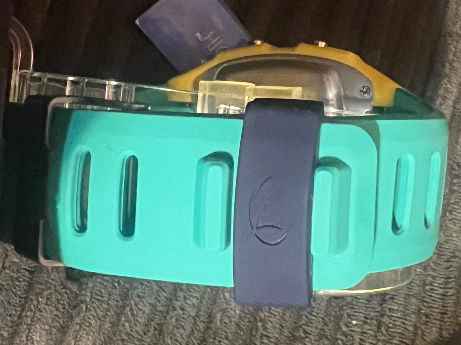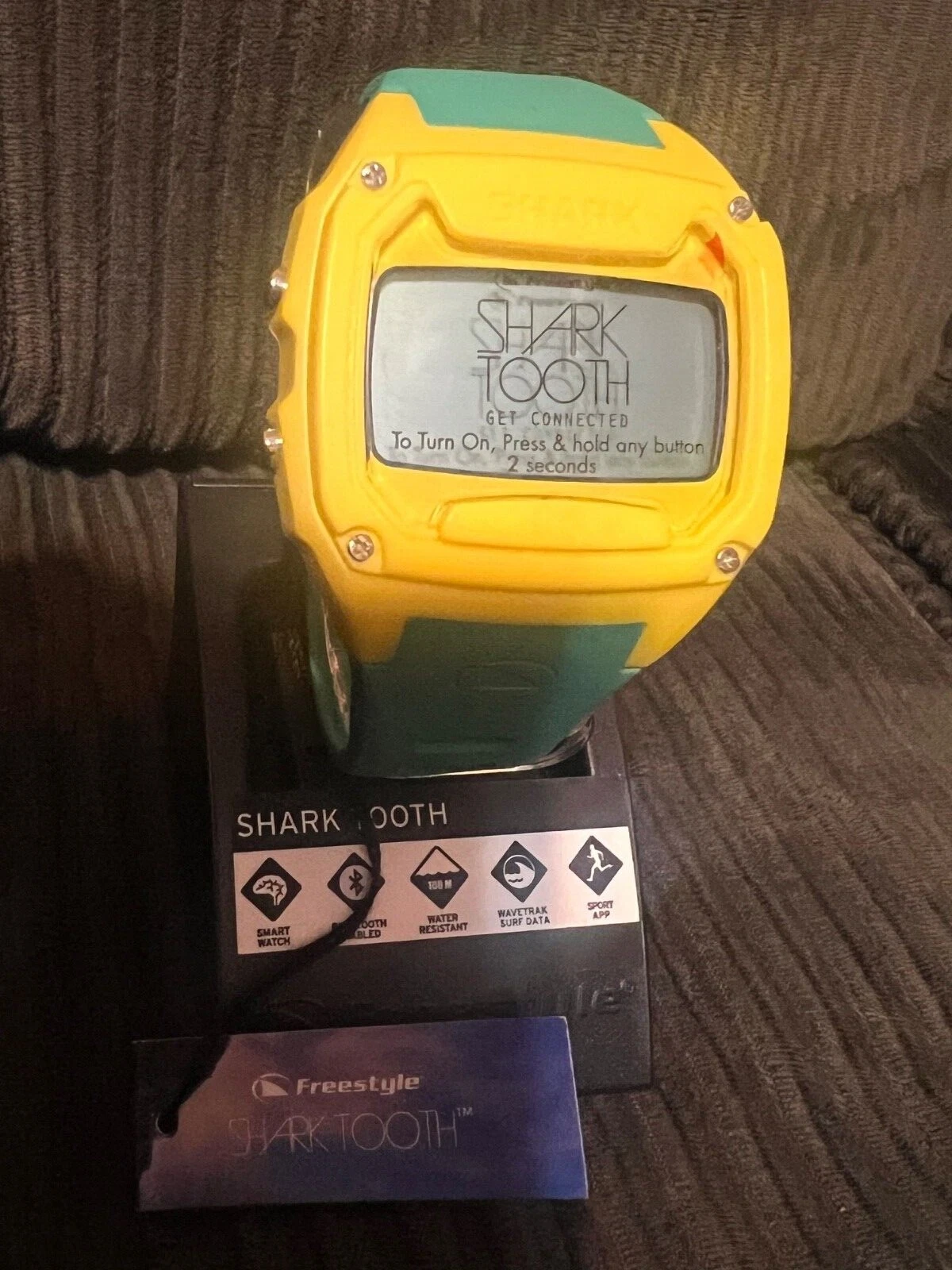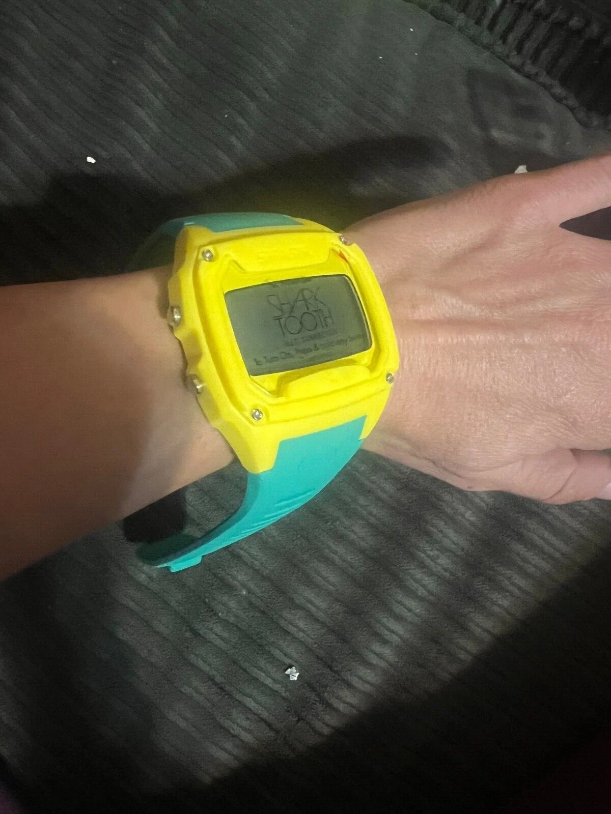shark tooth surf watch oversized green and yellow with rubber wrist band