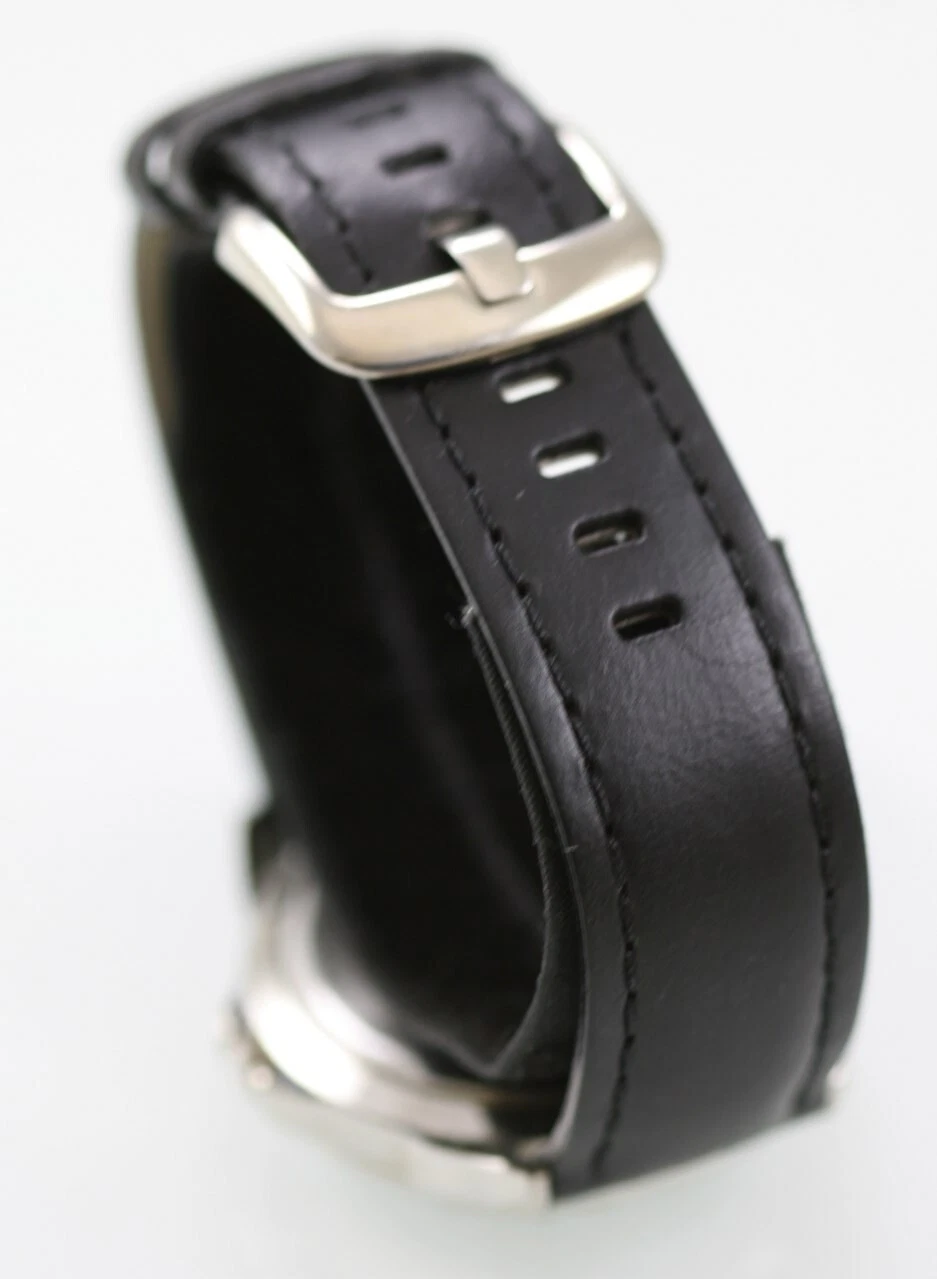 Sierra Club Men Watch Stainless St Black Leather WR Day Date 24hr White Quartz