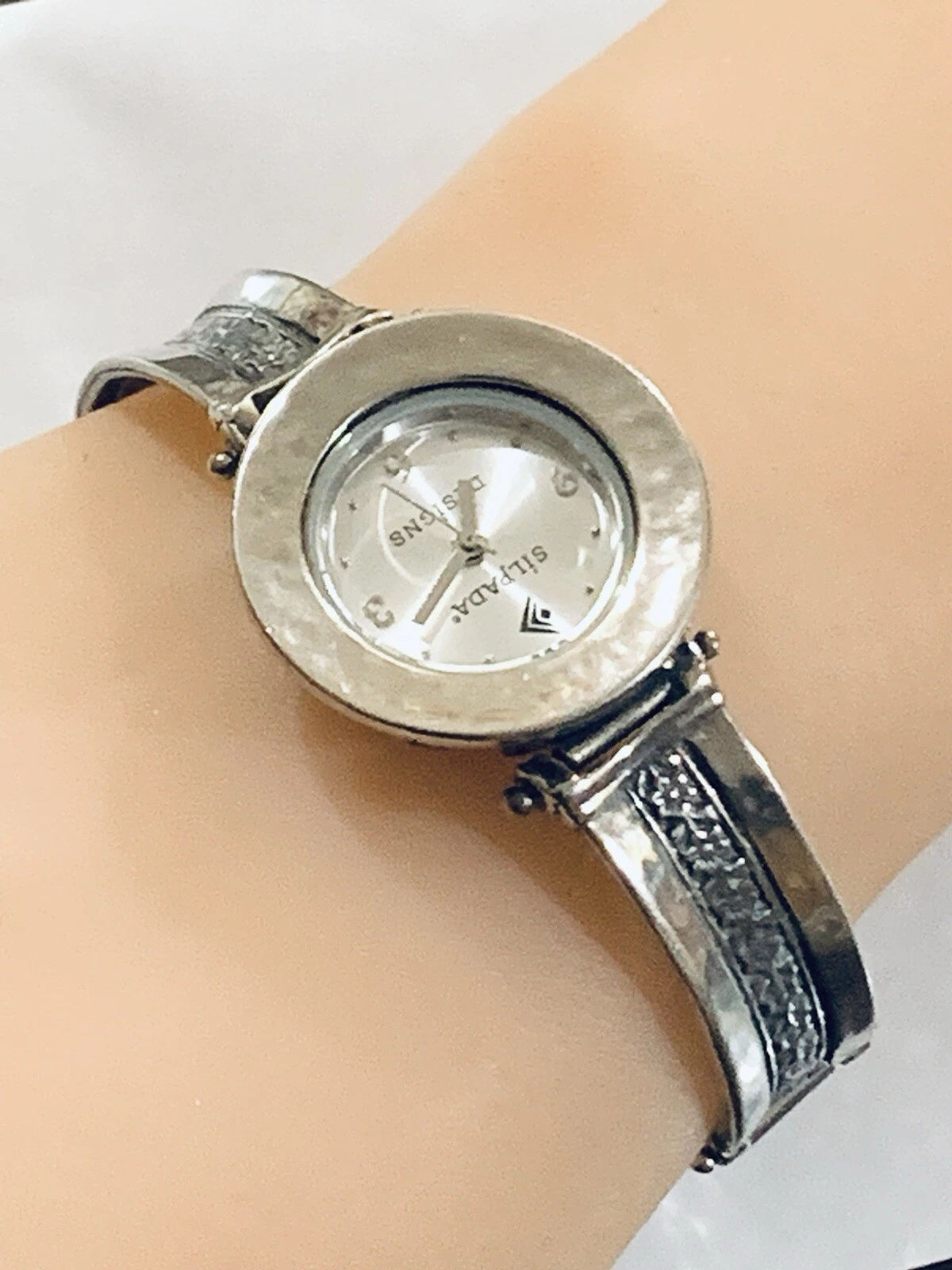 Beautiful Vintage Silpada Sterling Silver Womans Watch Hand Hammered Beze7- 7.5”
