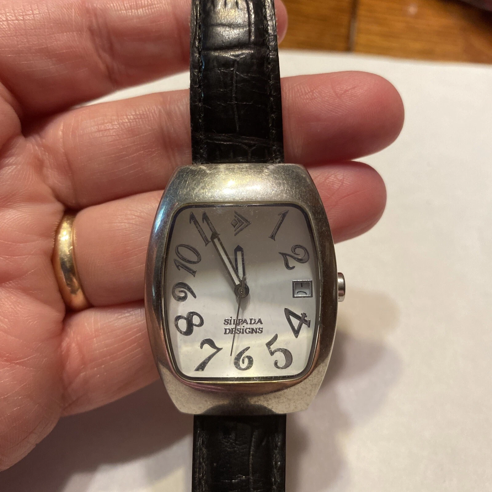 Silpada Designs Silver Tone Black Leather Band Watch 9 Inch Italian Design