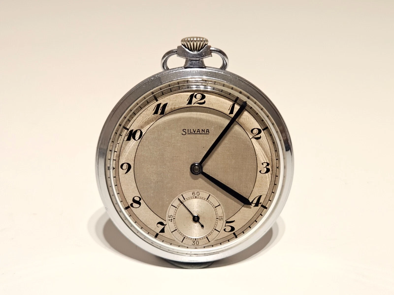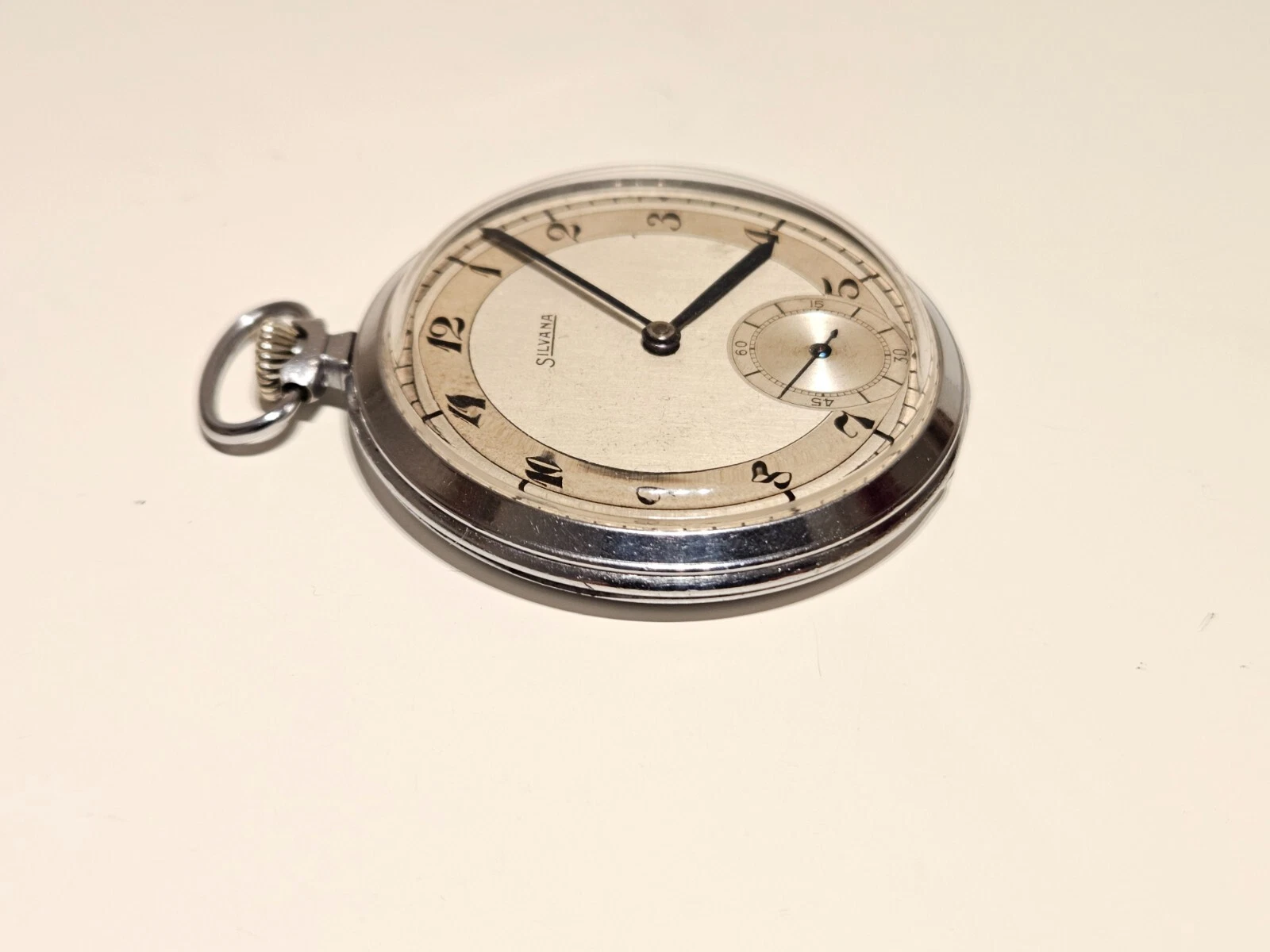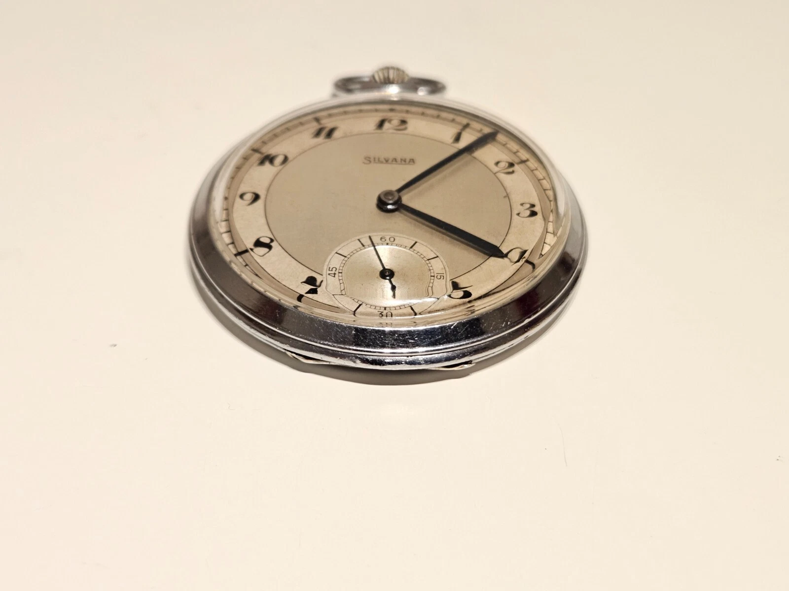 VINTAGE WW2 ERA RARE SWISS MEN'S TWO TONE DIAL OPEN FACE POCKET WATCH"SILVANA"