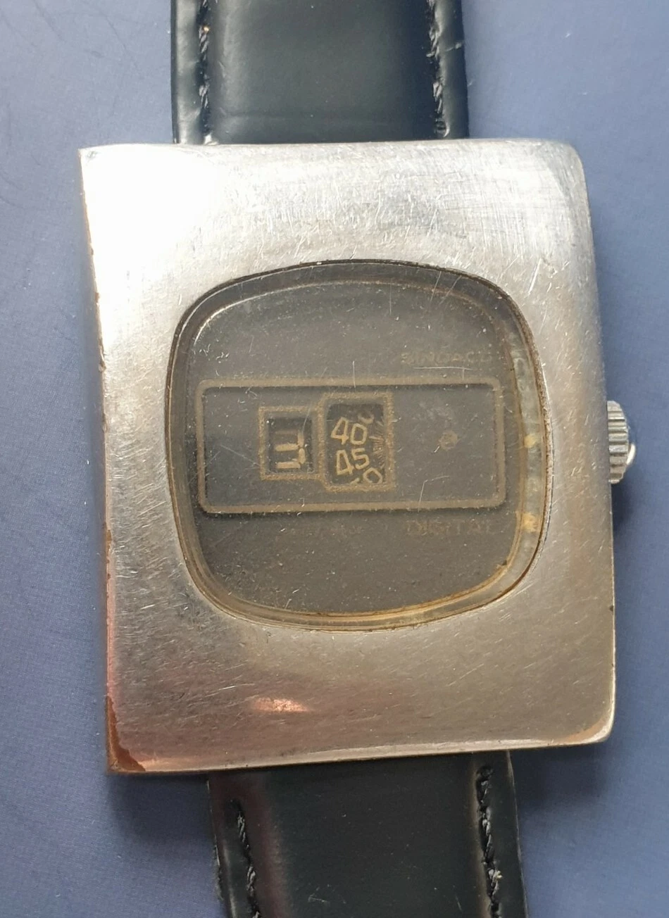 Vintage Rare Sindaco Digital Jump Hour Swiss Watch Mechanical Wristwatch Faulty