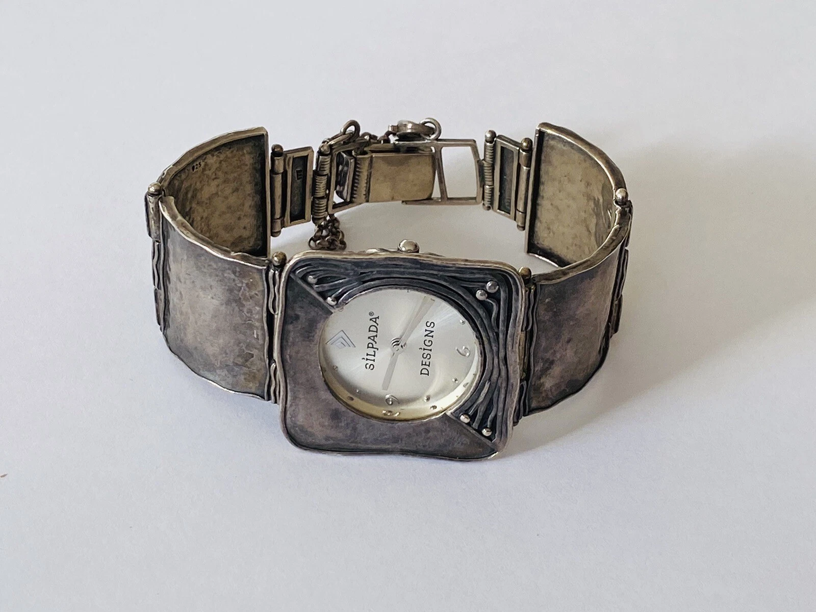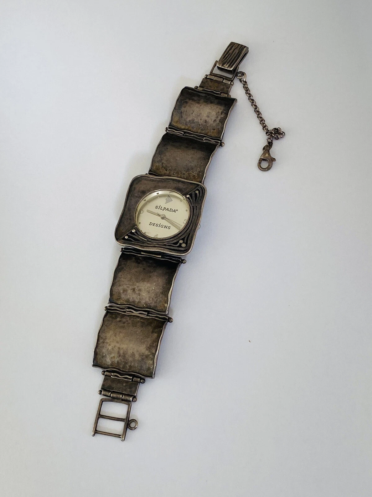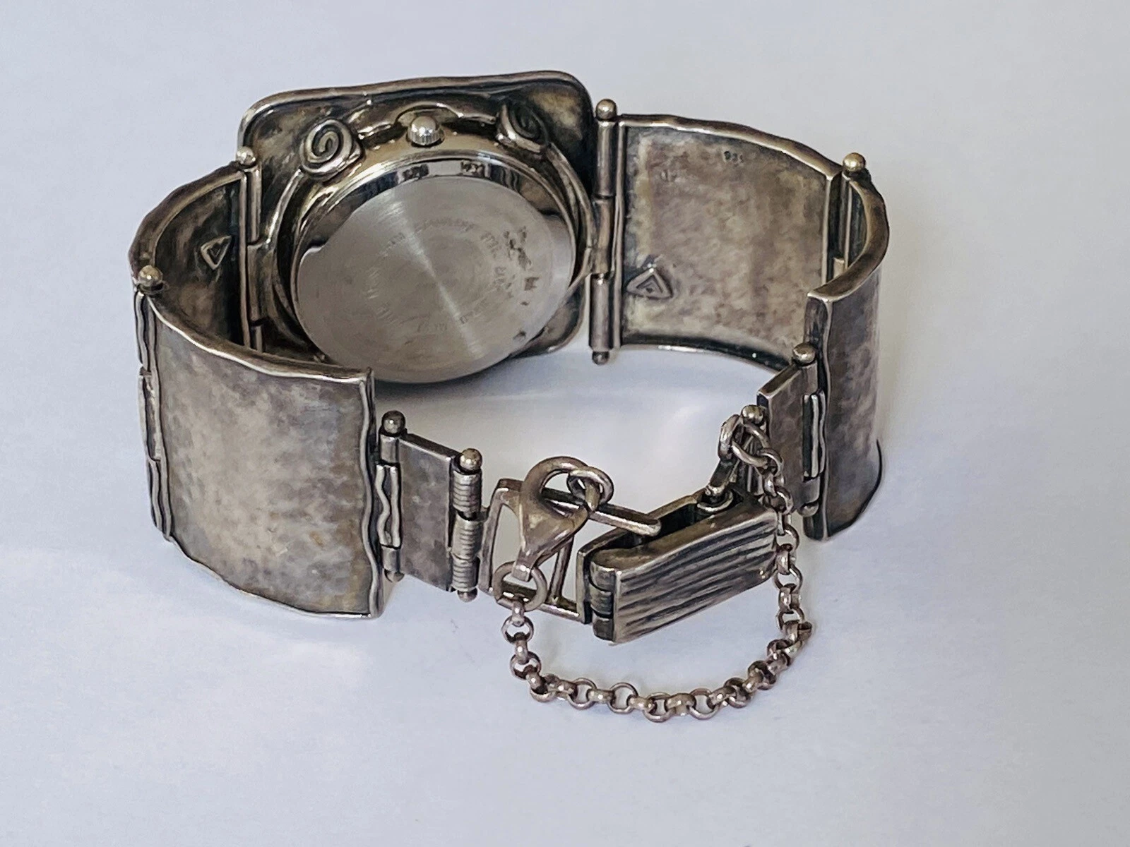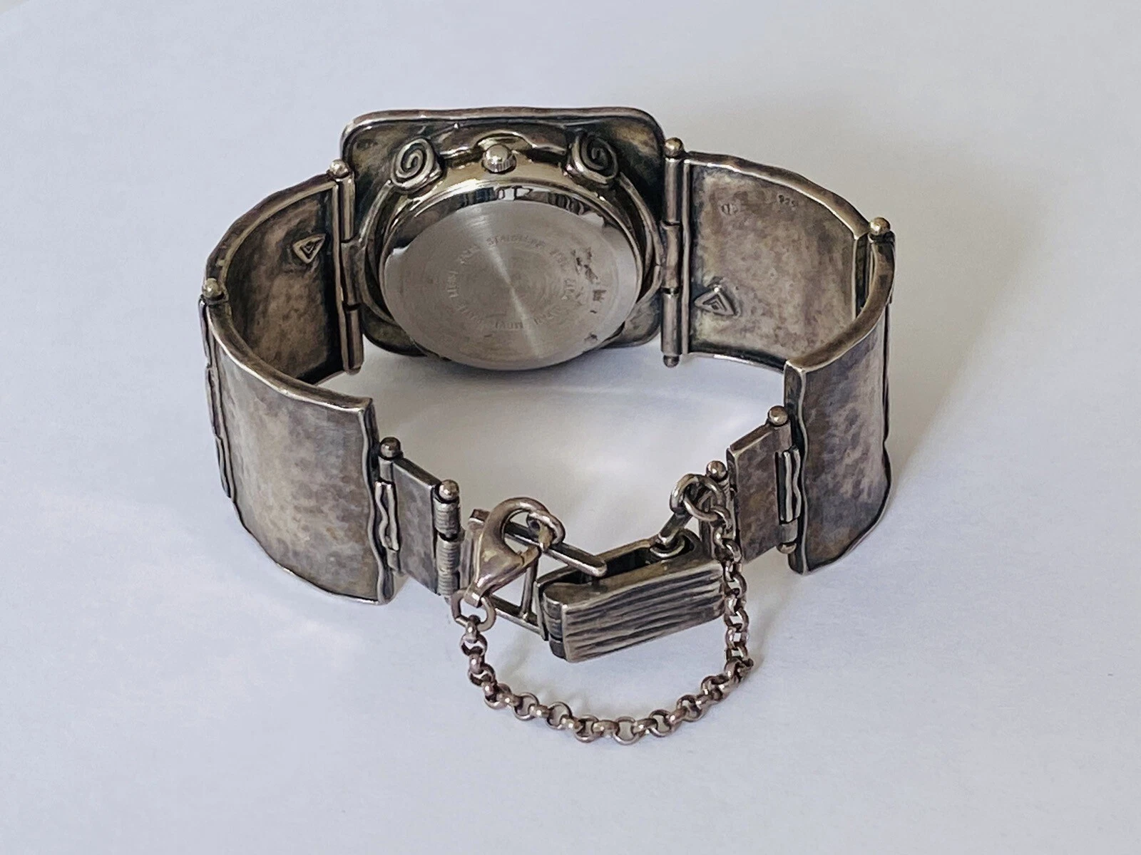 Silpada Designs 925 Sterling Silver Wide Bracelet With Safety Chain Ladies Watch