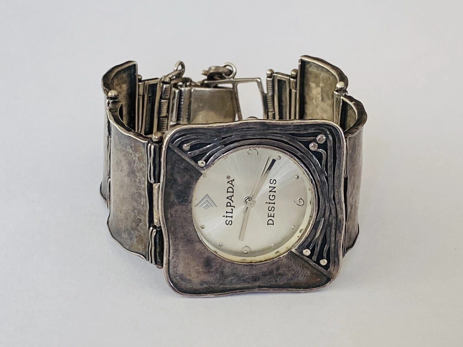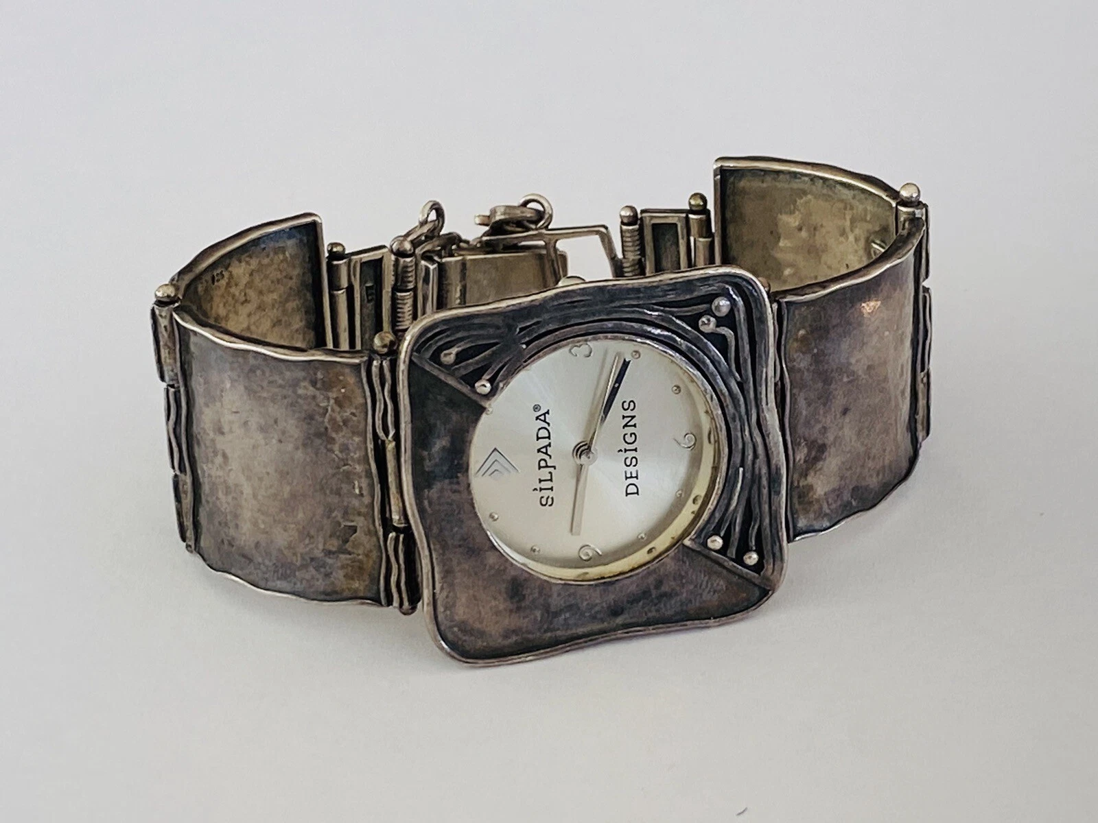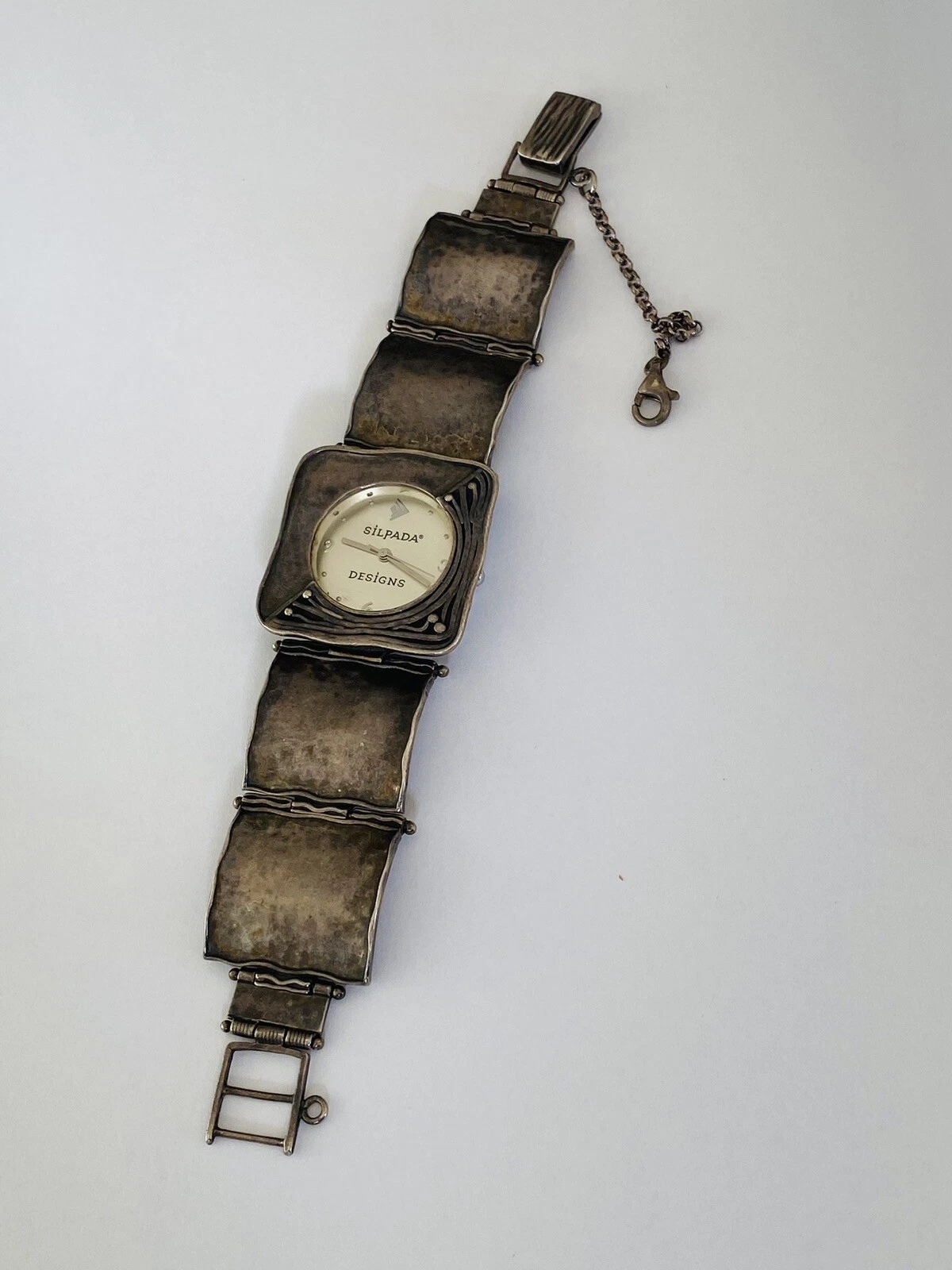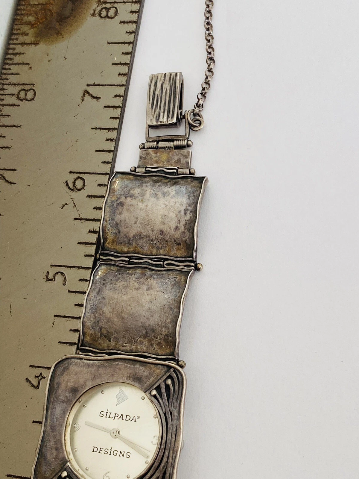 Silpada Designs 925 Sterling Silver Wide Bracelet With Safety Chain Ladies Watch