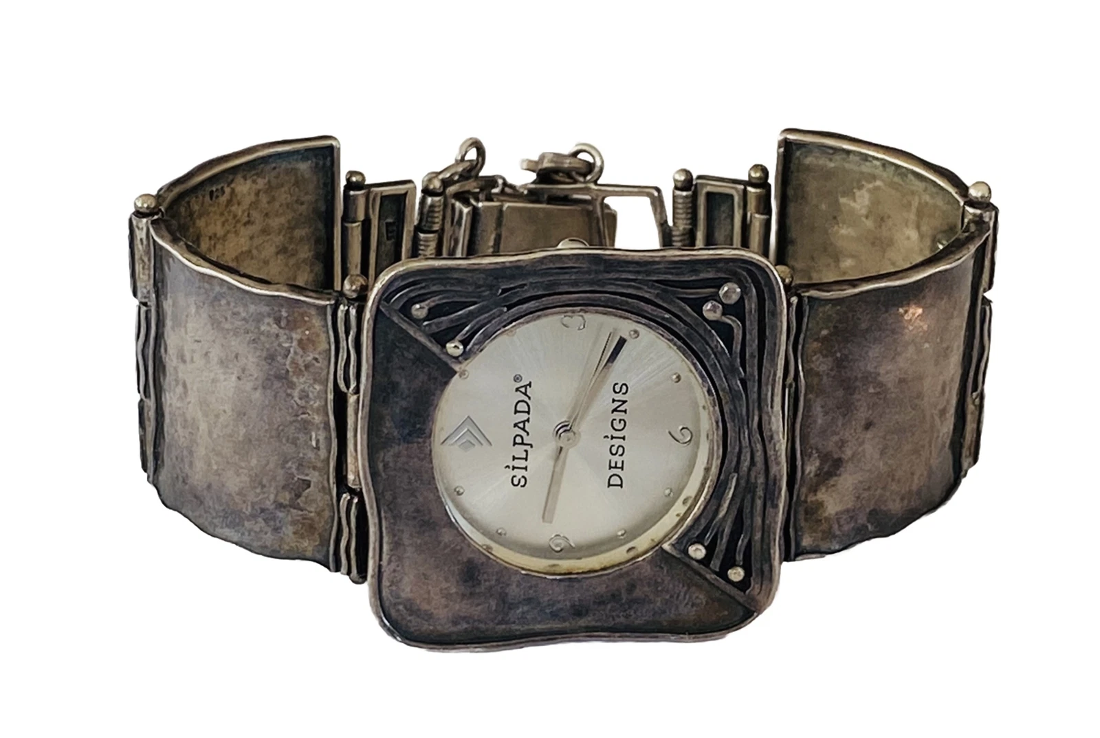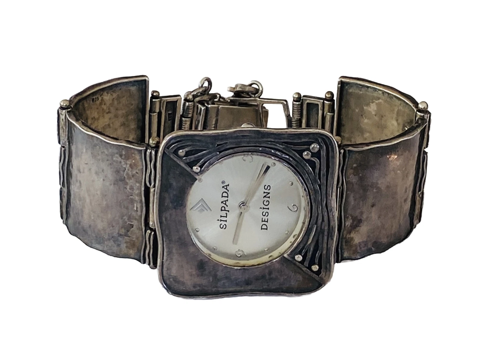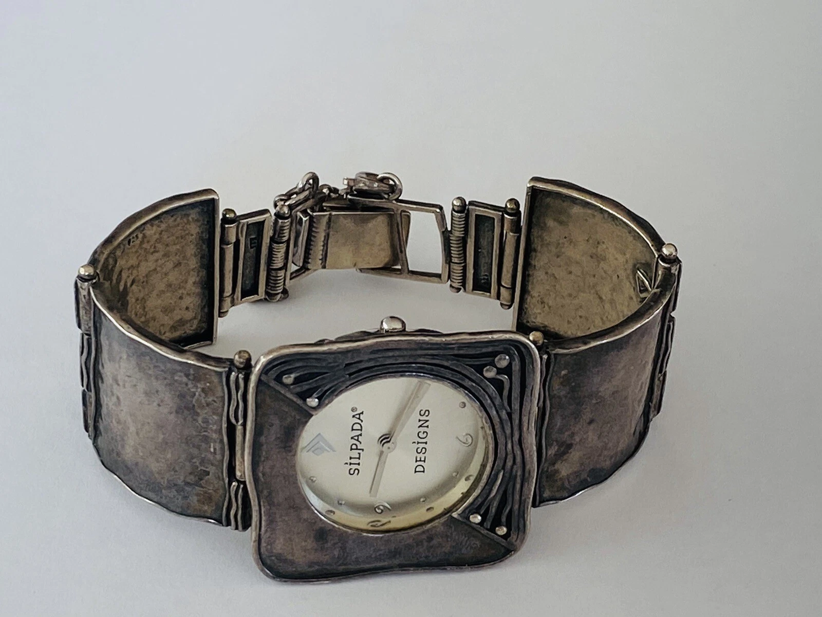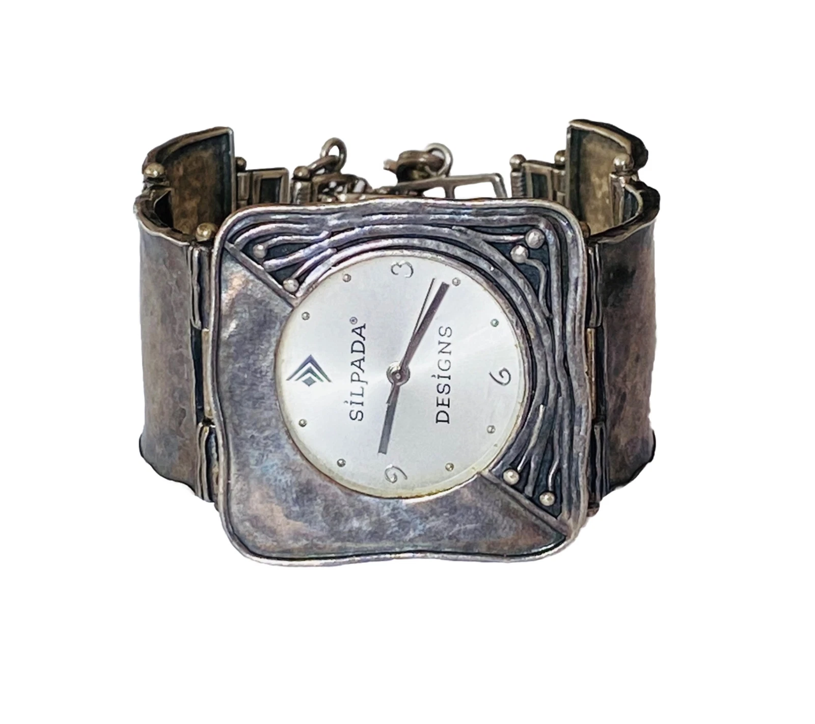 Silpada Designs 925 Sterling Silver Wide Bracelet With Safety Chain Ladies Watch