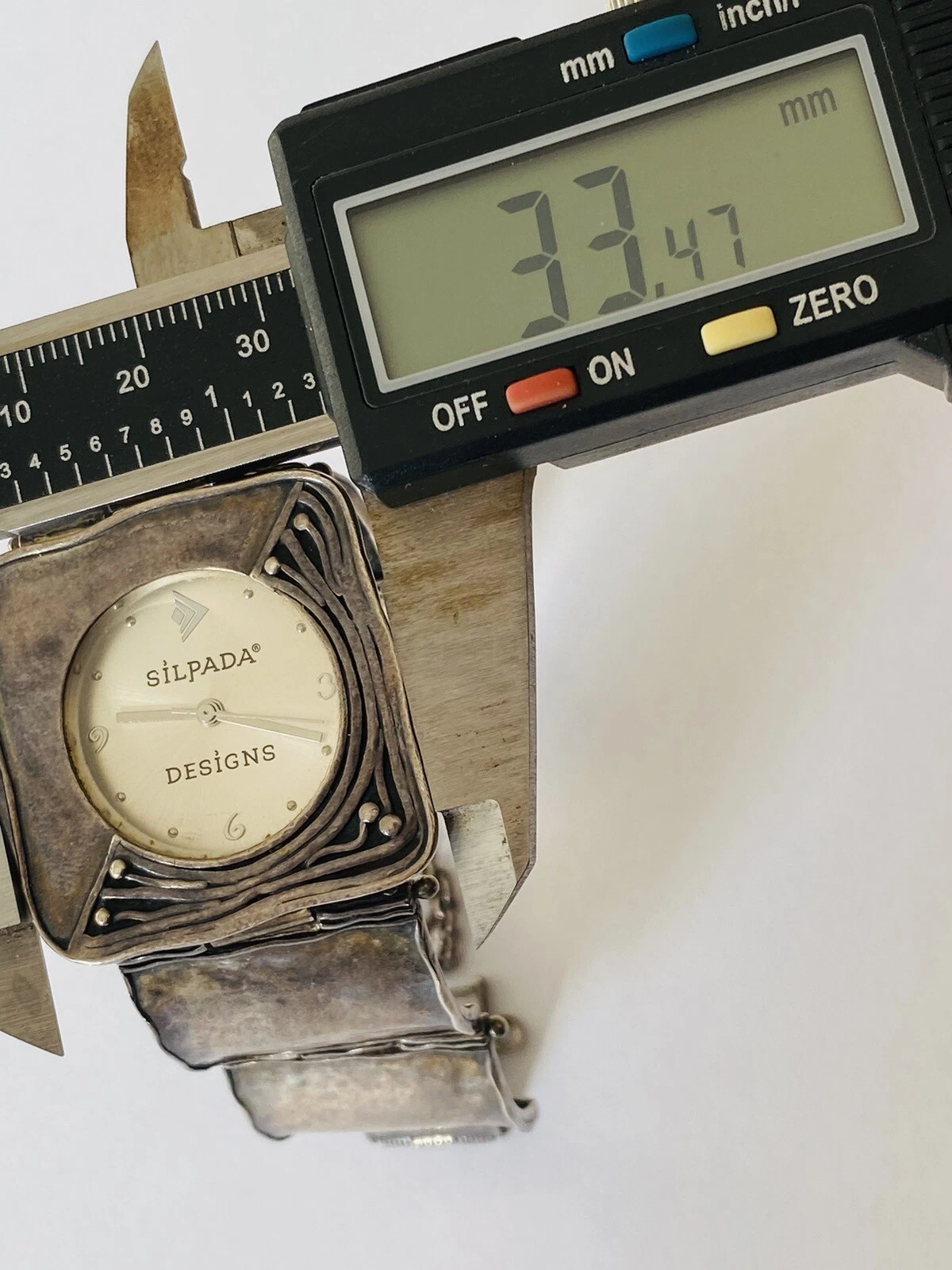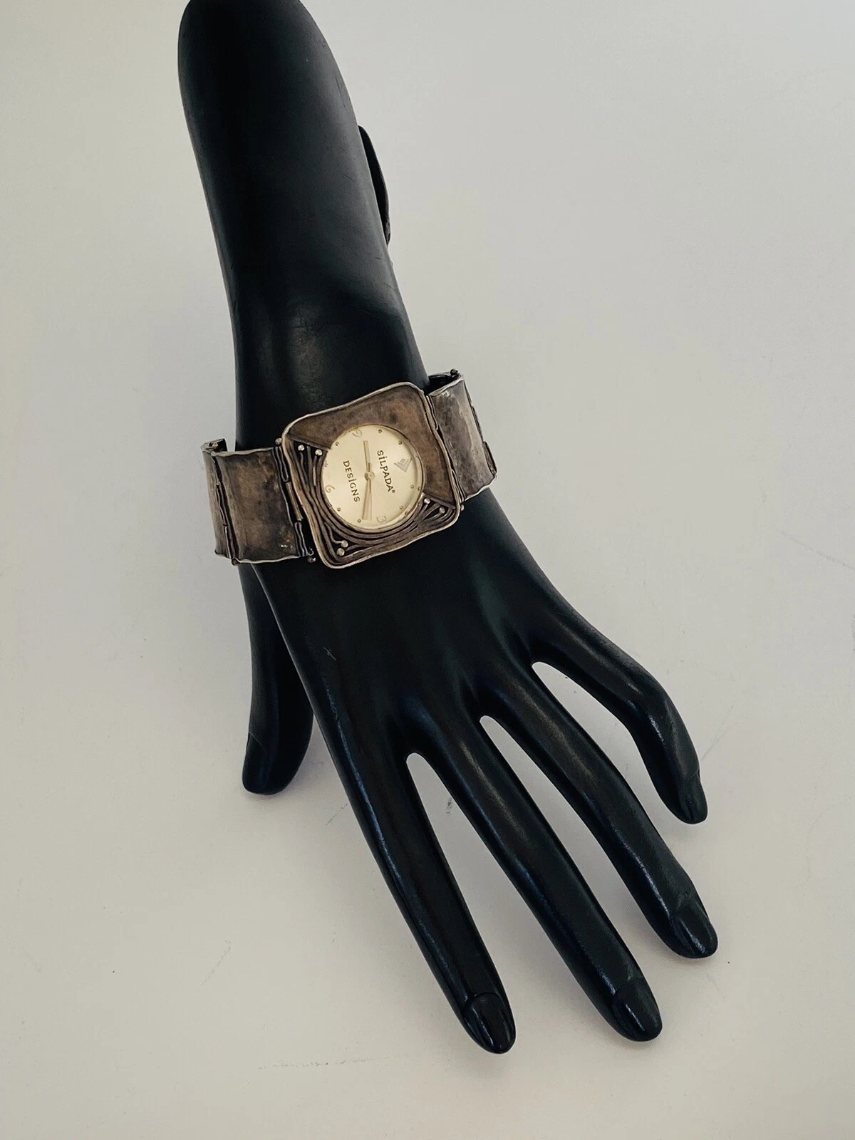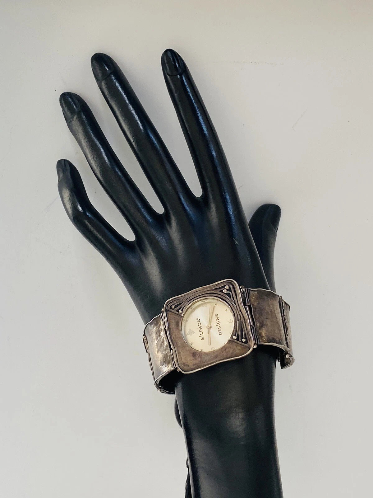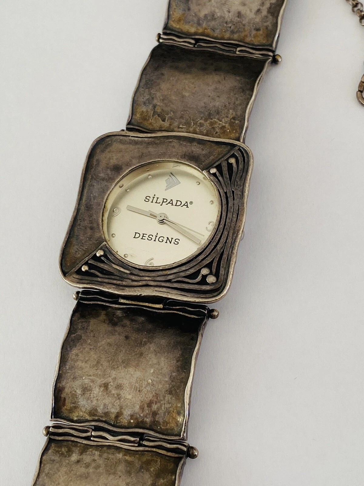 Silpada Designs 925 Sterling Silver Wide Bracelet With Safety Chain Ladies Watch