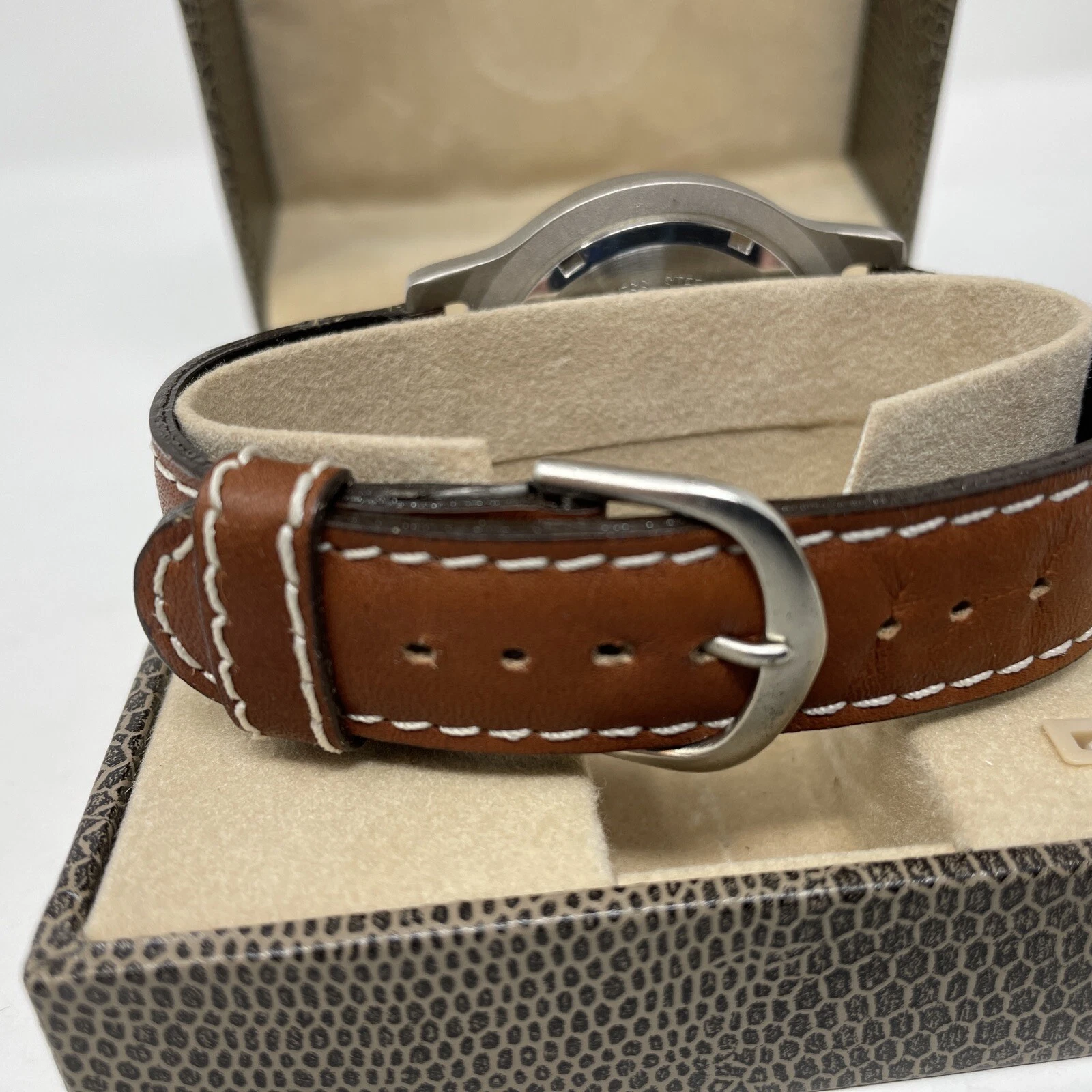 Sierra Club Men Watch Stainless Silver Leather Band, Date, Battery White Face