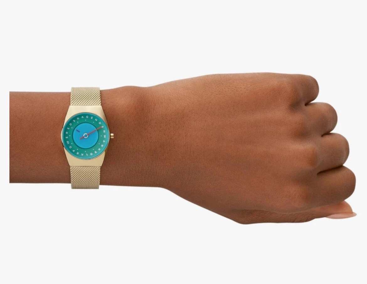 Skagen Grenen Lille Solar Halo Gold Stainless Steel Mesh Watch SKW3087