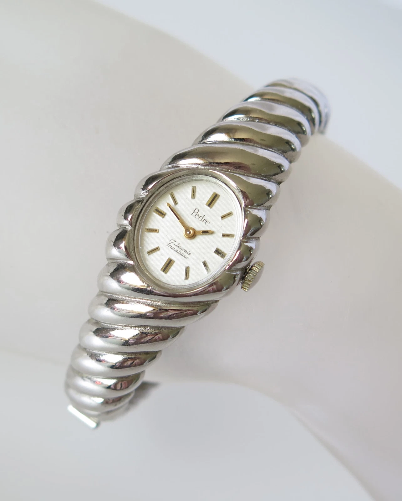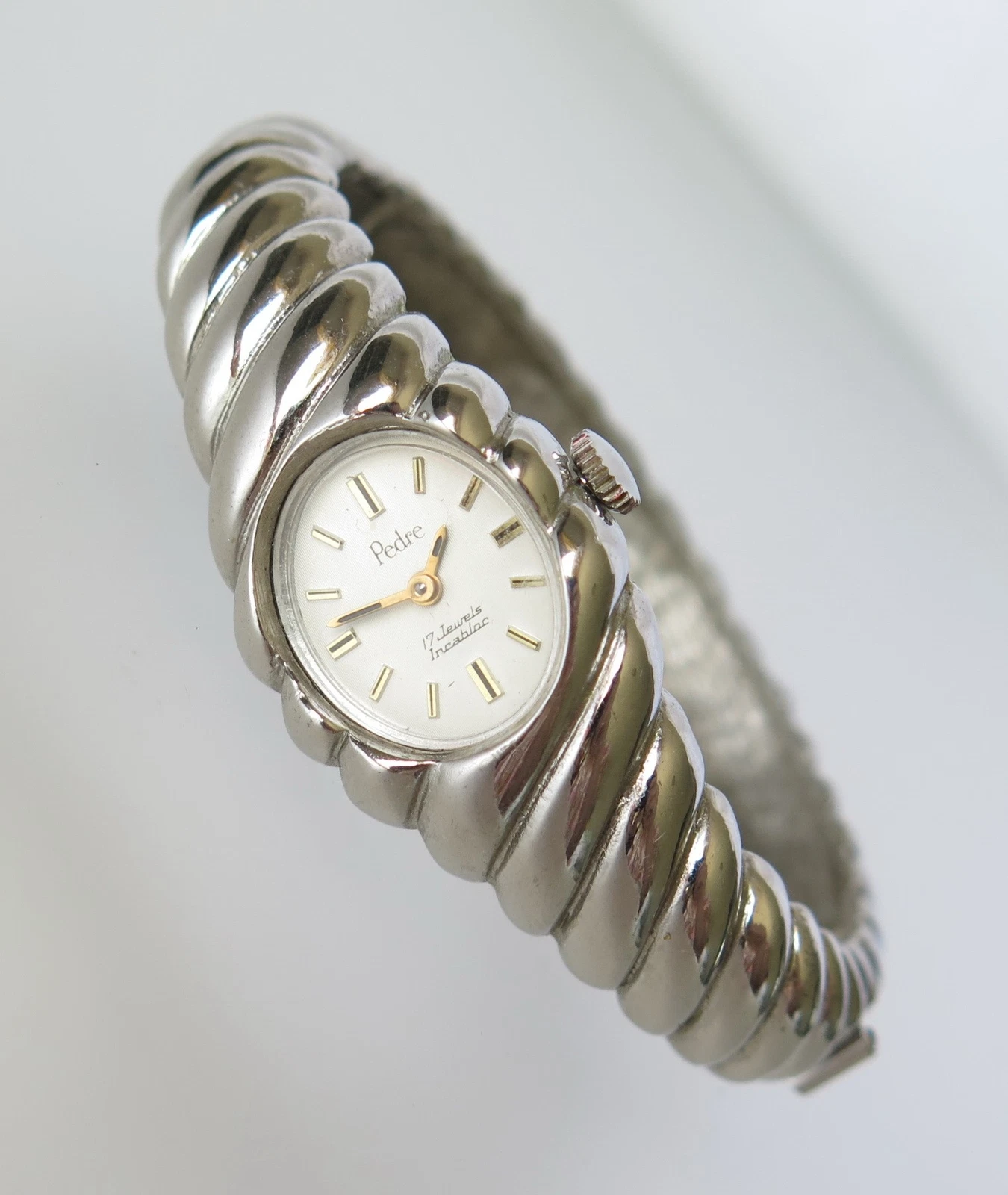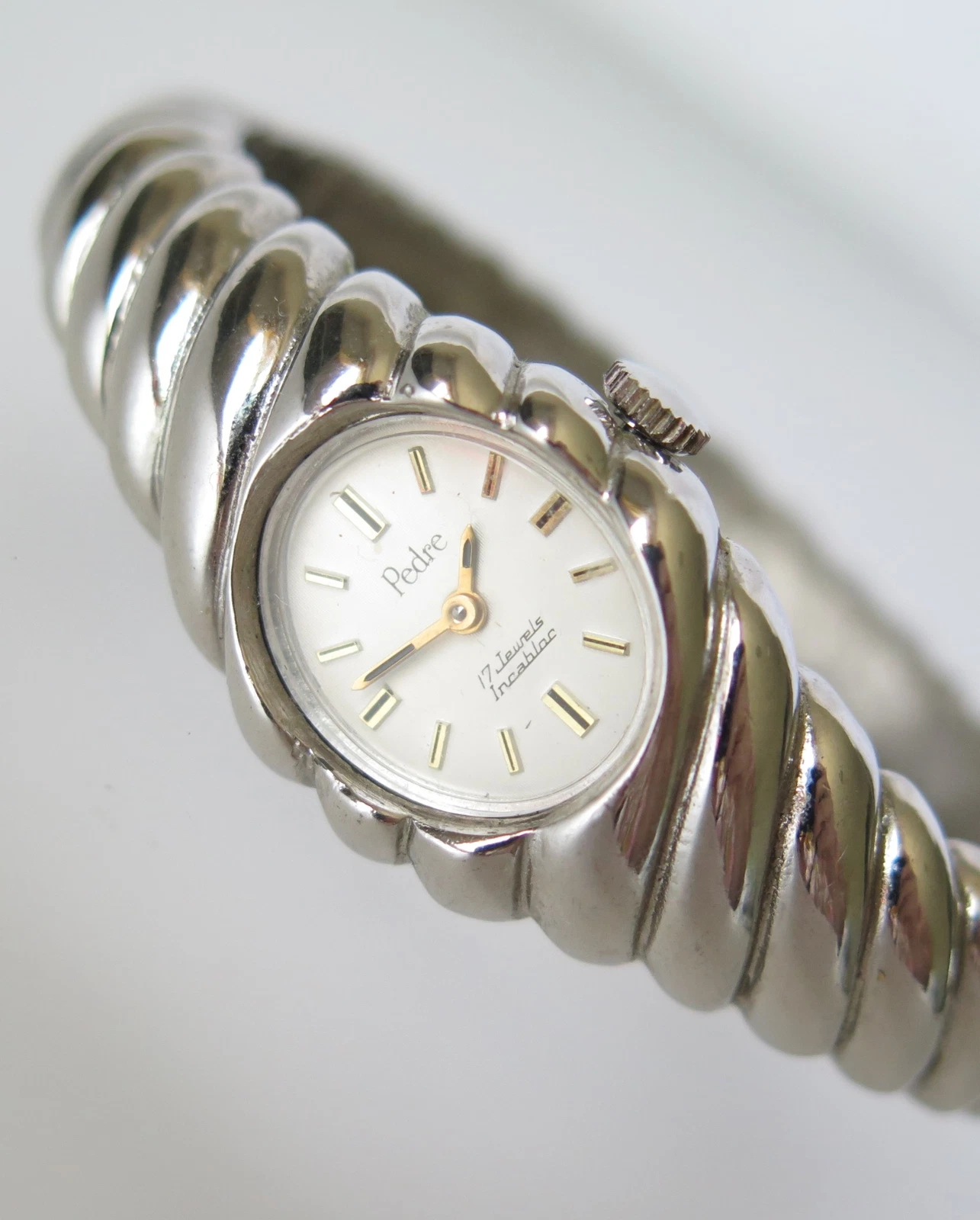 VINTAGE PEDRE 17 JEWELS MECHANICAL MANUAL CLAMPER BRACELET WRISTWATCH WORKS