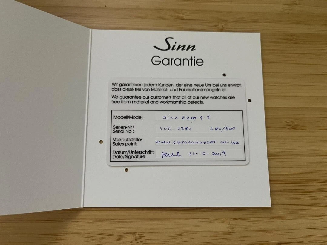 Sinn EZM 1.1 Limited Edition (only 500) SZ01 Tegimented Chronograph - Box, Paper