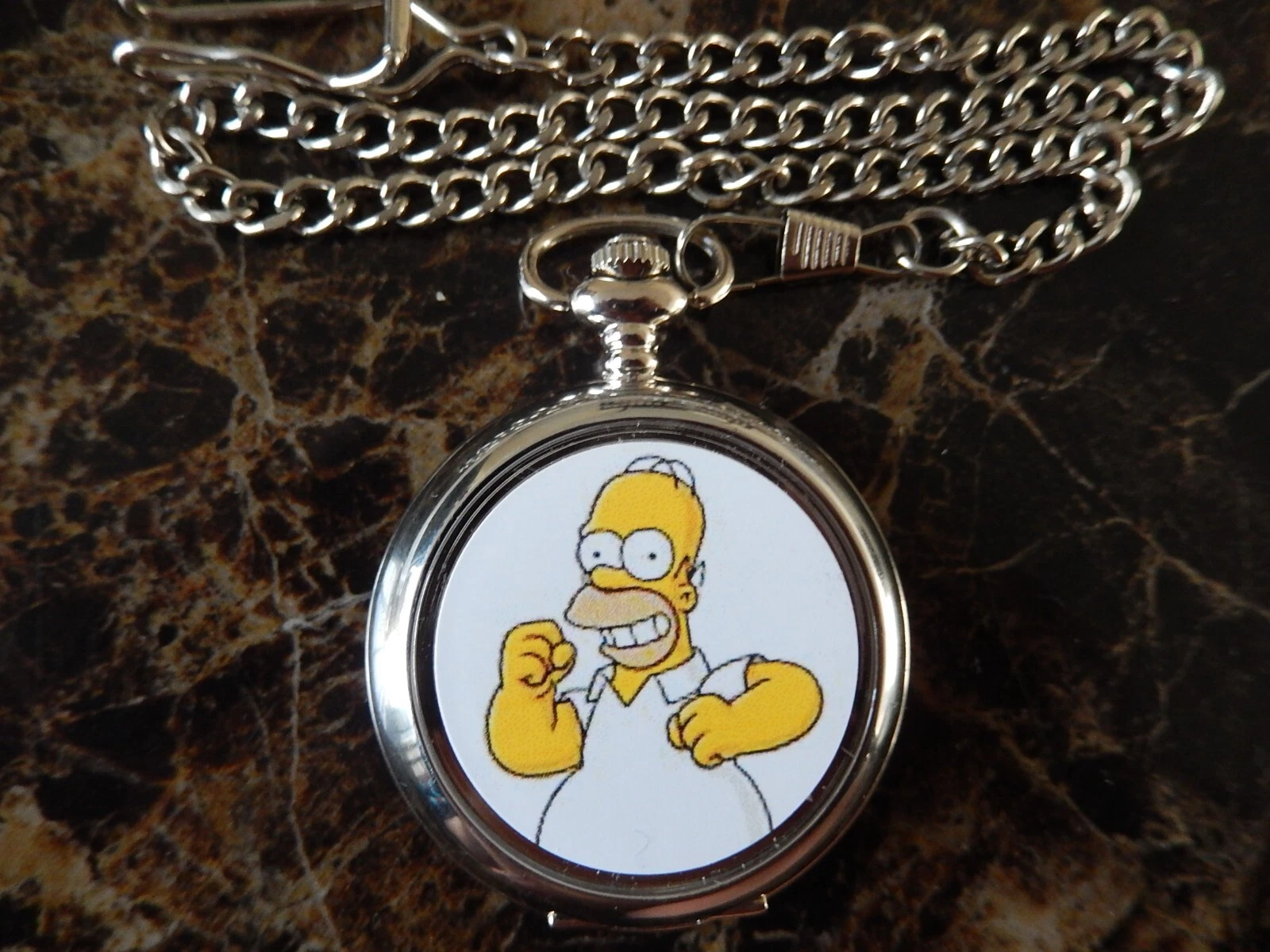 HOMER SIMPSON CHROME POCKET WATCH WITH CHAIN (NEW)