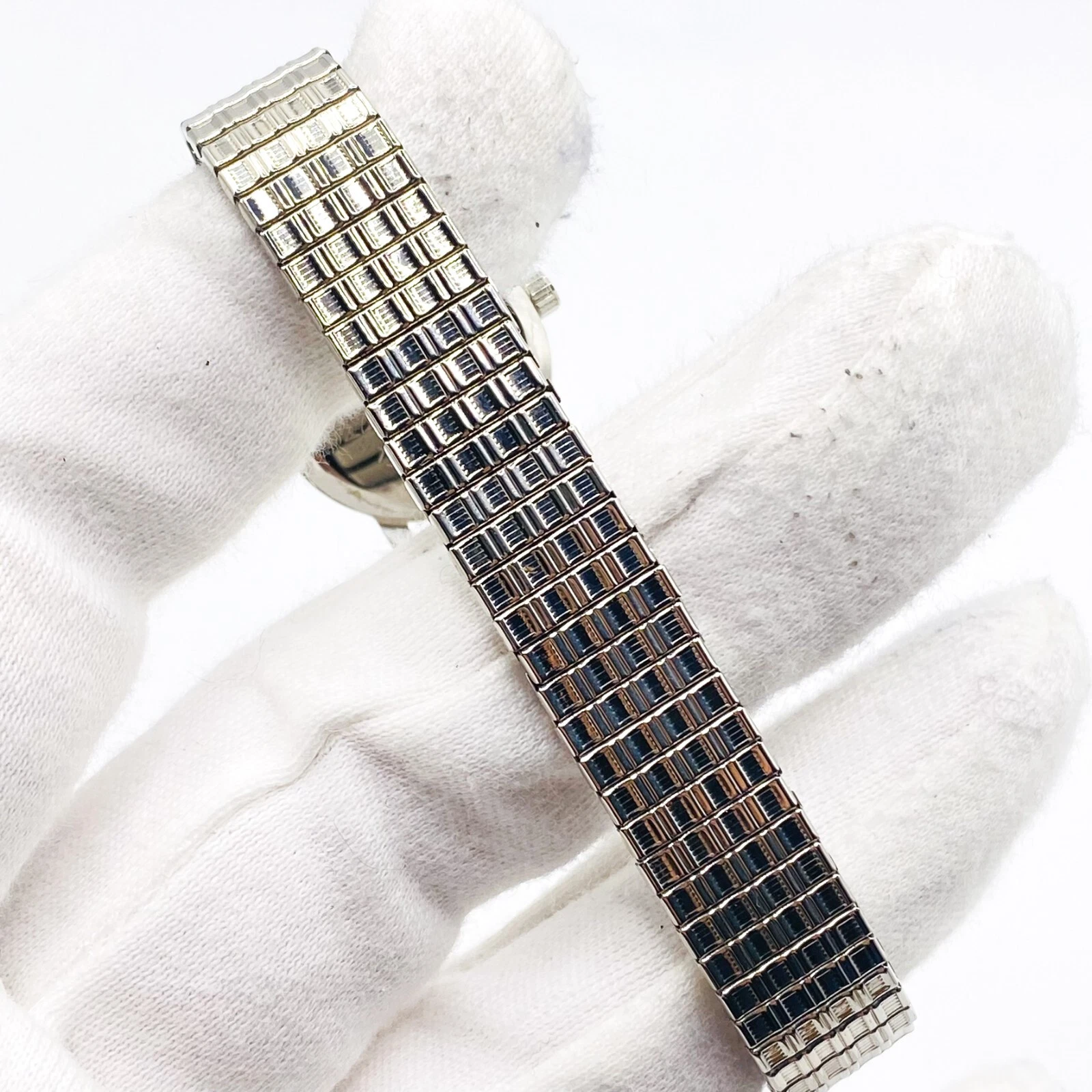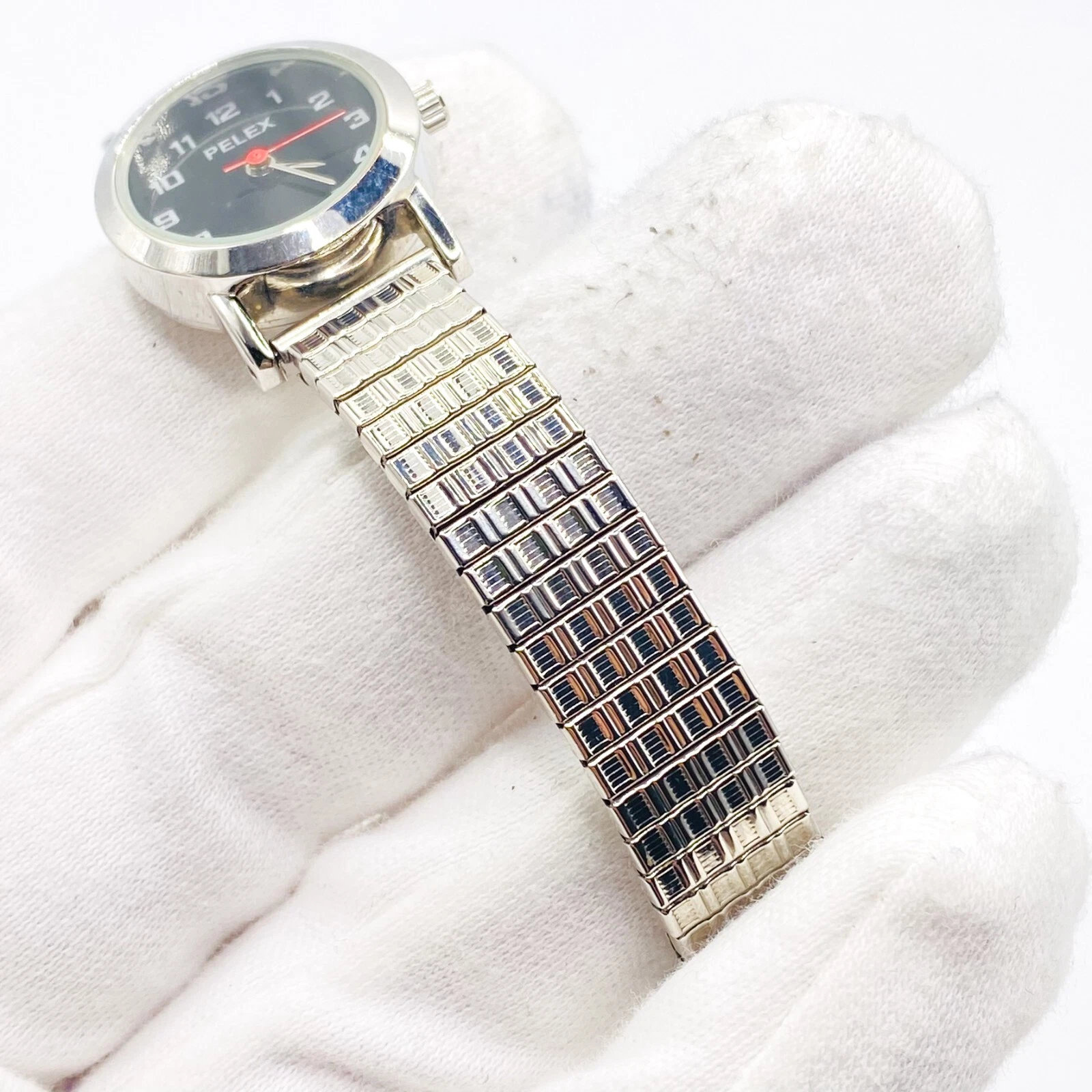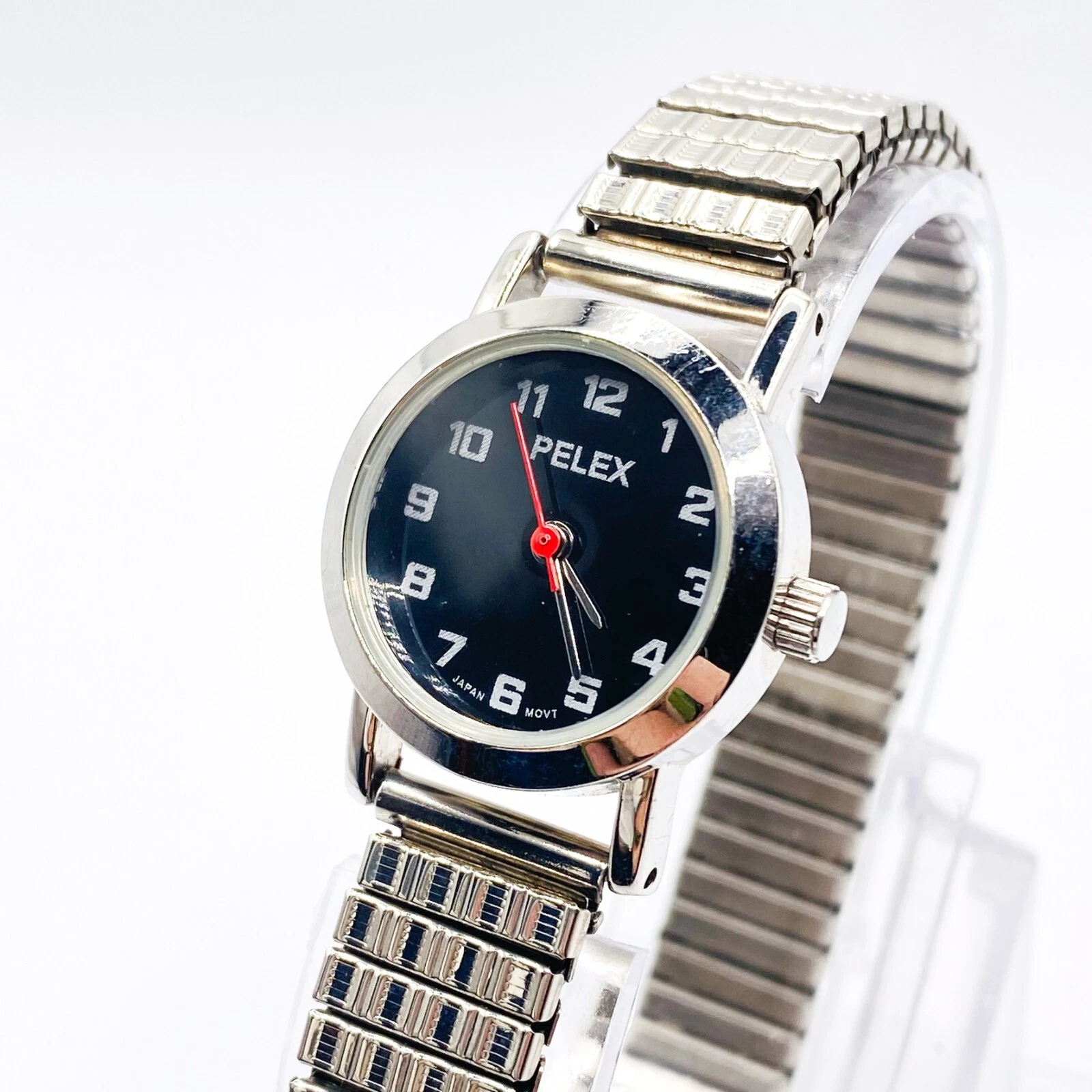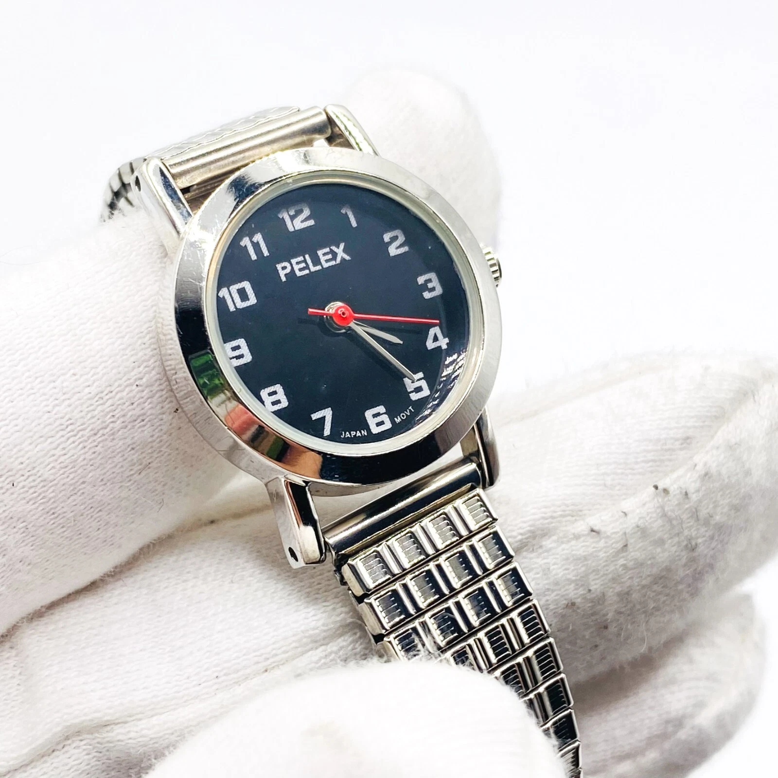 Vintage PELEX Silver Tone Wrist Watch Quartz Stainless Steel Back Stretch Strap