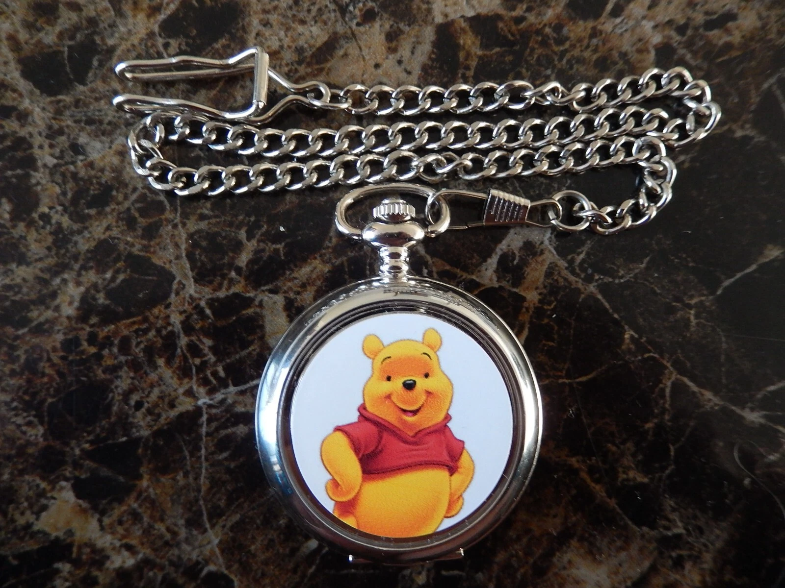 WINNIE THE POOH CHROME POCKET WATCH WITH CHAIN (NEW)
