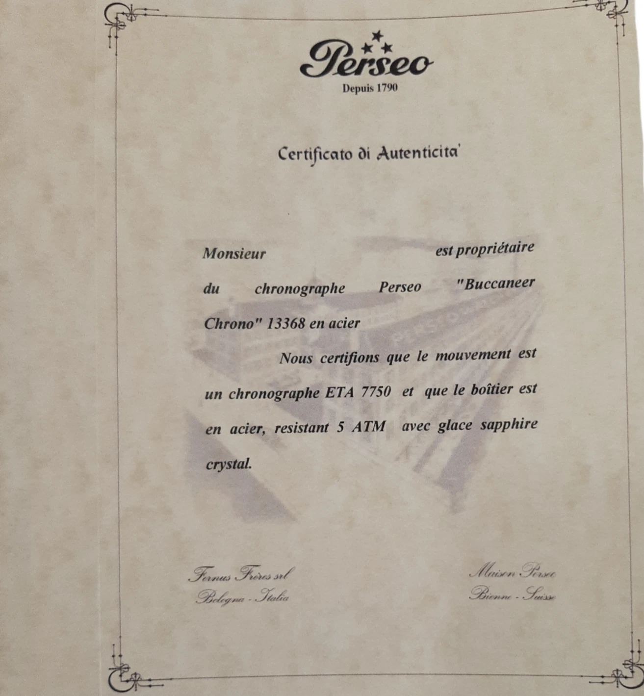 Perseo Buccaneer Automatic Mechanical Chronograph Watch ETA 7750 13368