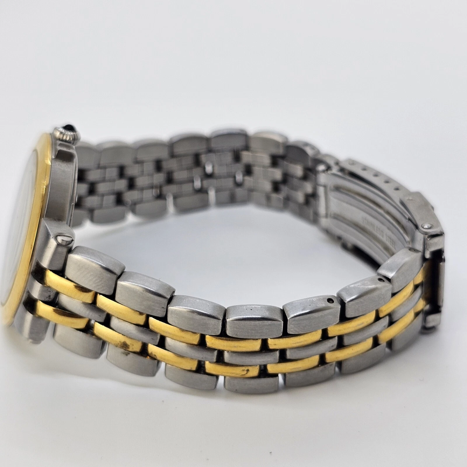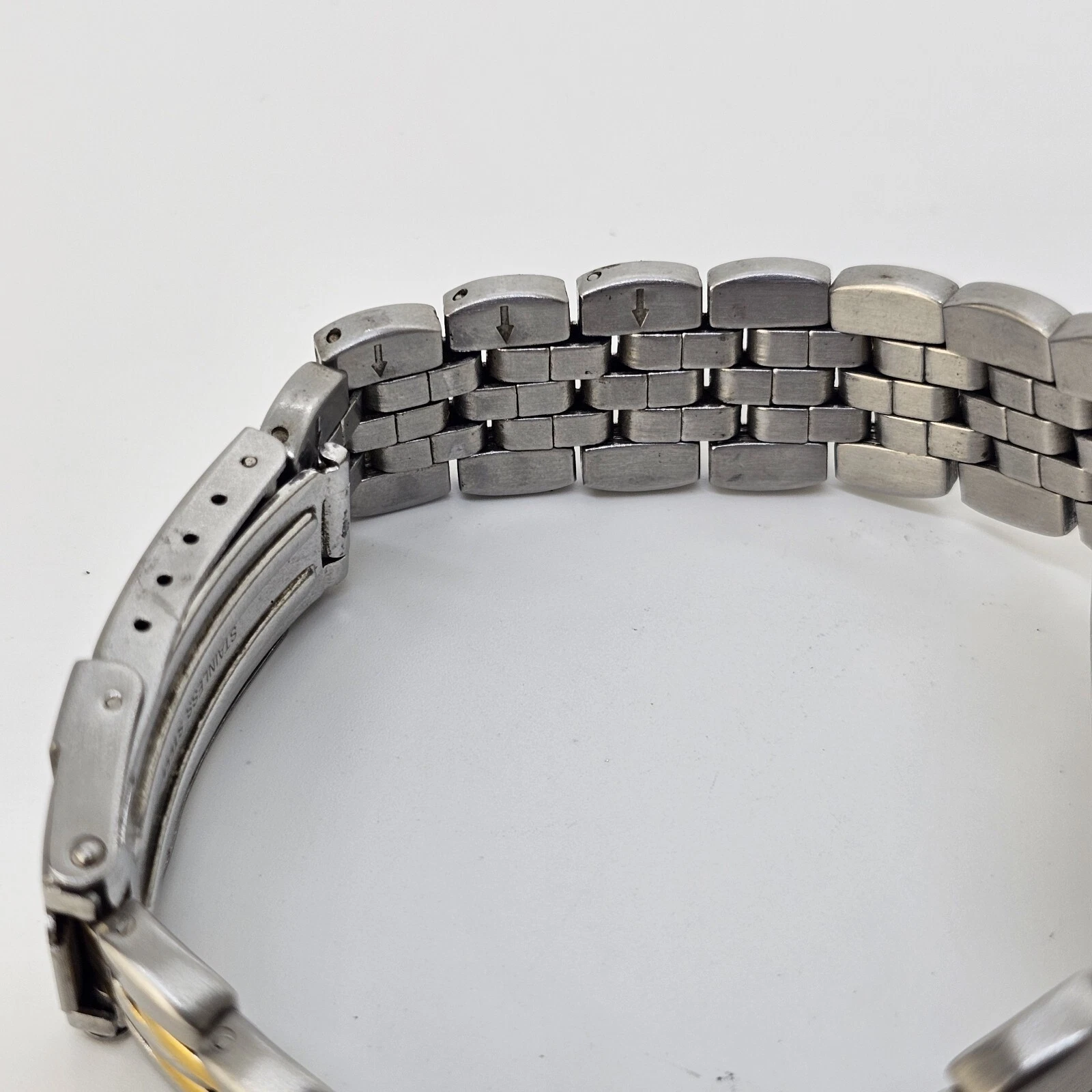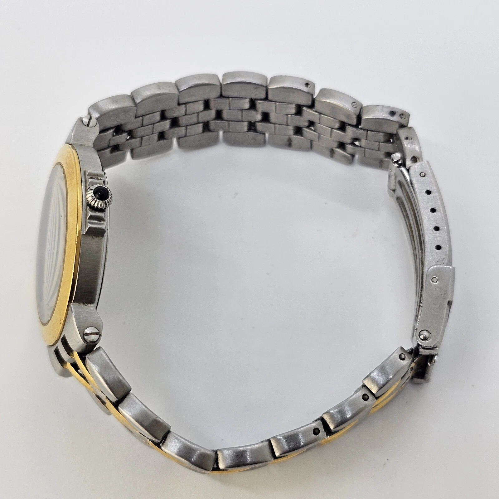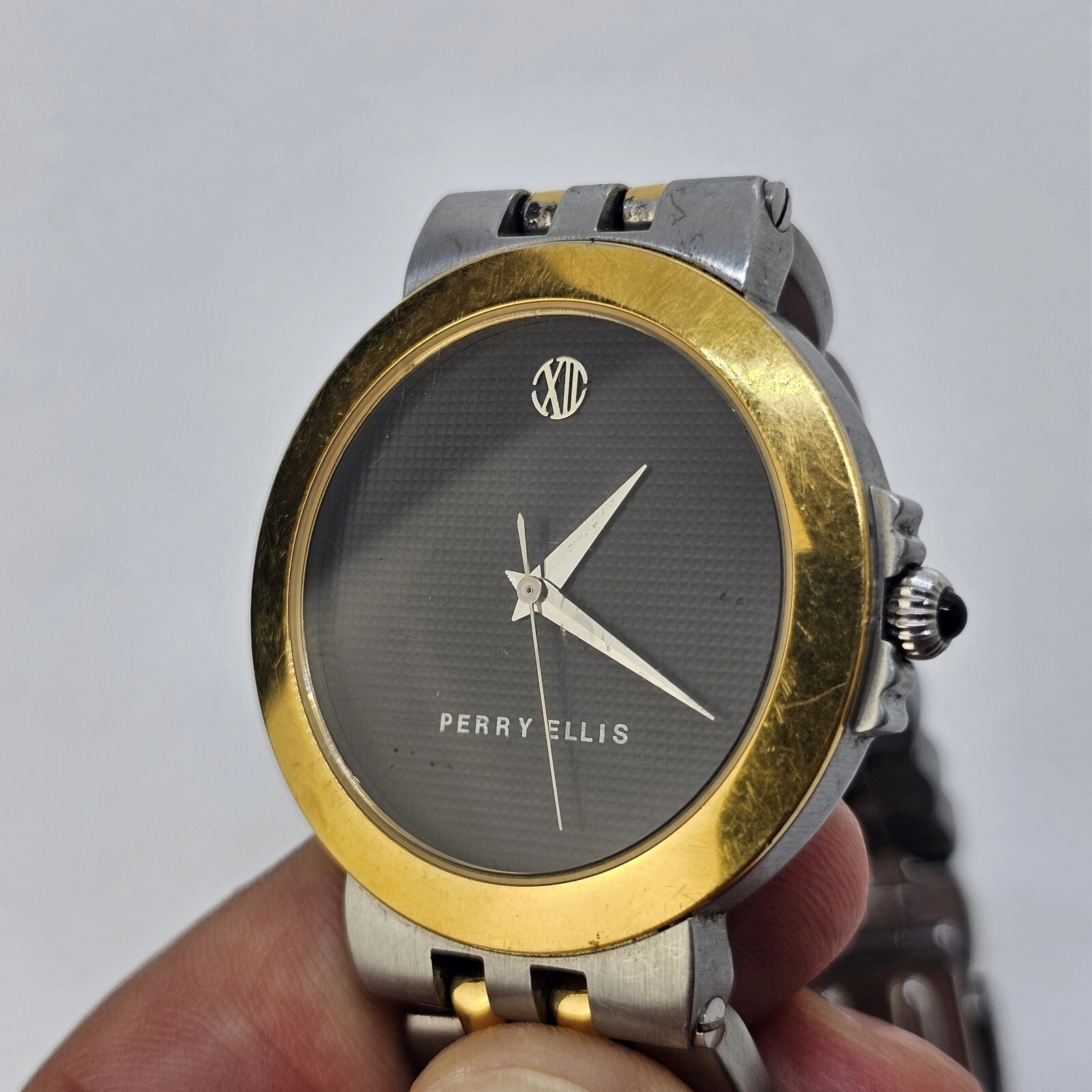 Perry Ellis Men’s Watch 36MM Black Dial Two Tone Bracelet 8" Wrist New Battery