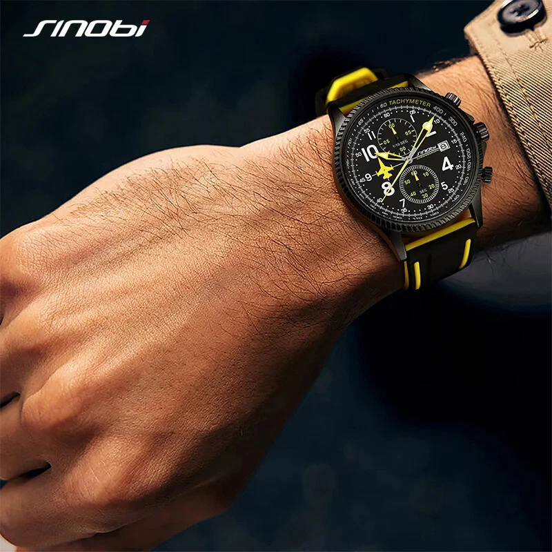 SINOBI Creative Design Airplane Chronograph Men's Watches Original Calender