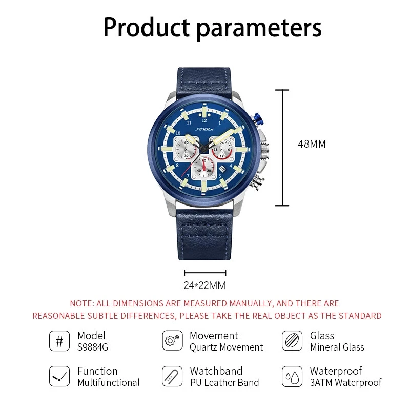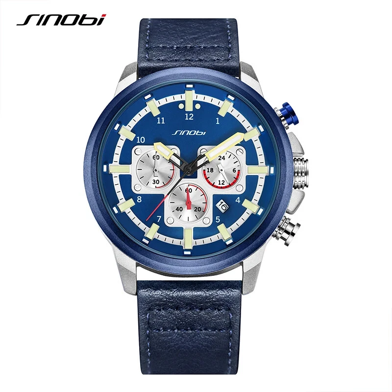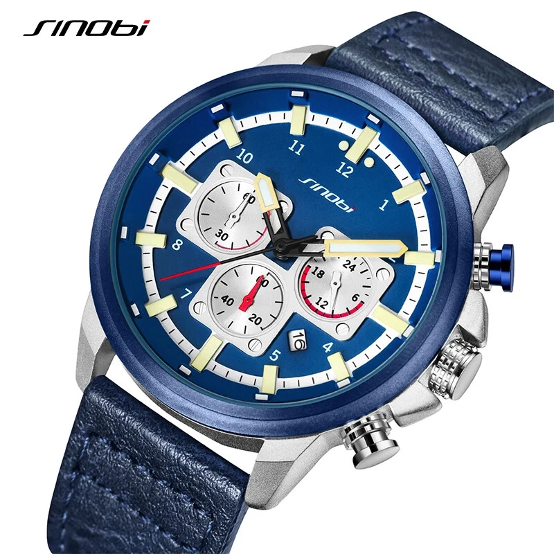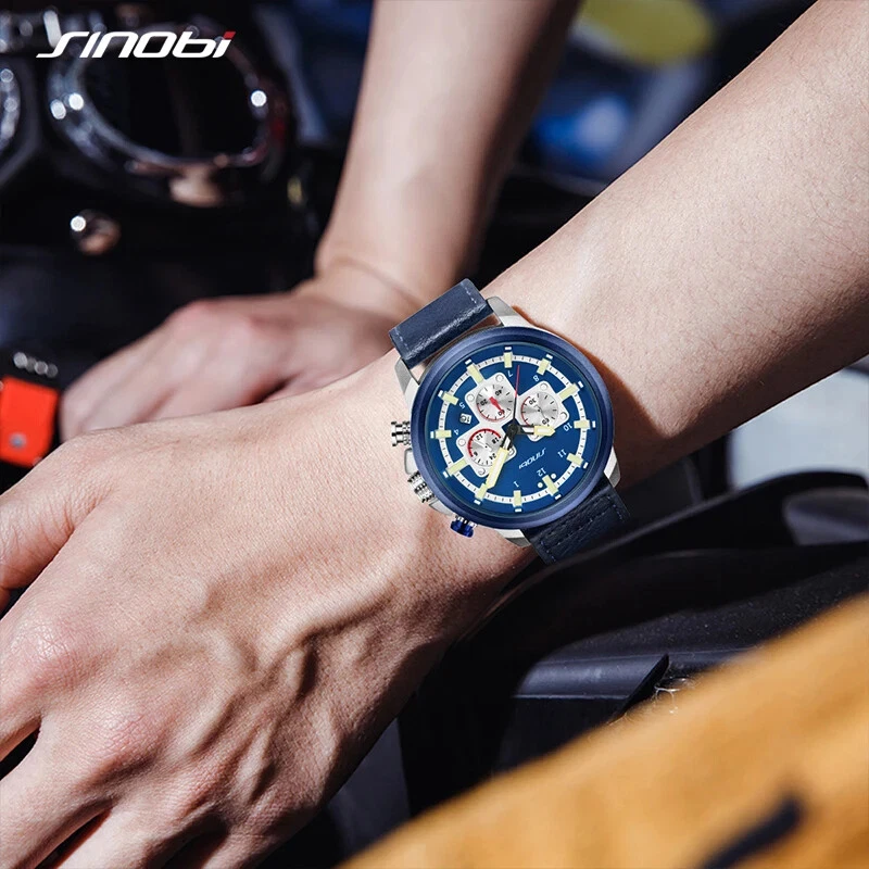 SINOBI Men Analog Leather Sports Watches Men's Military Watch for Men Date