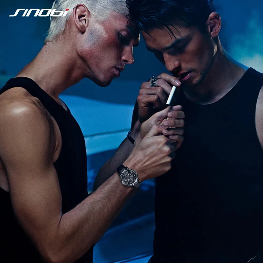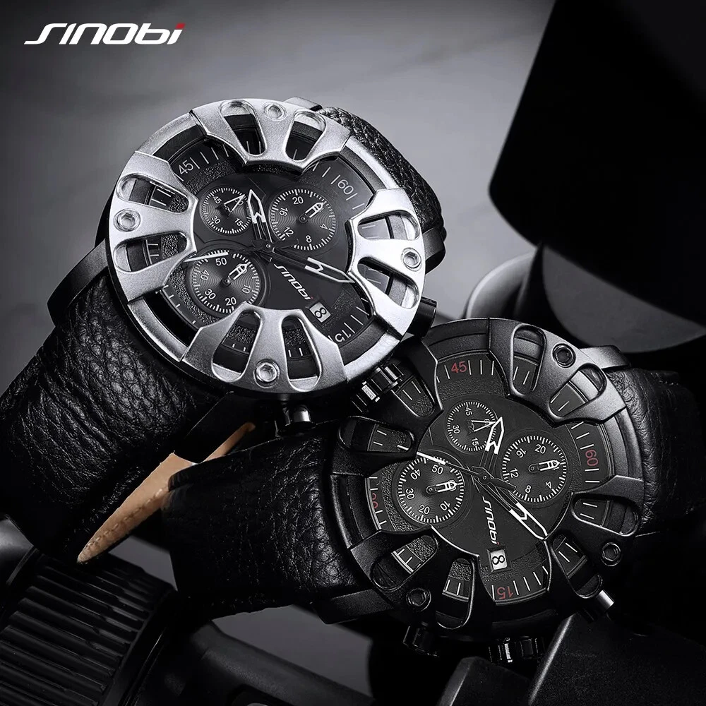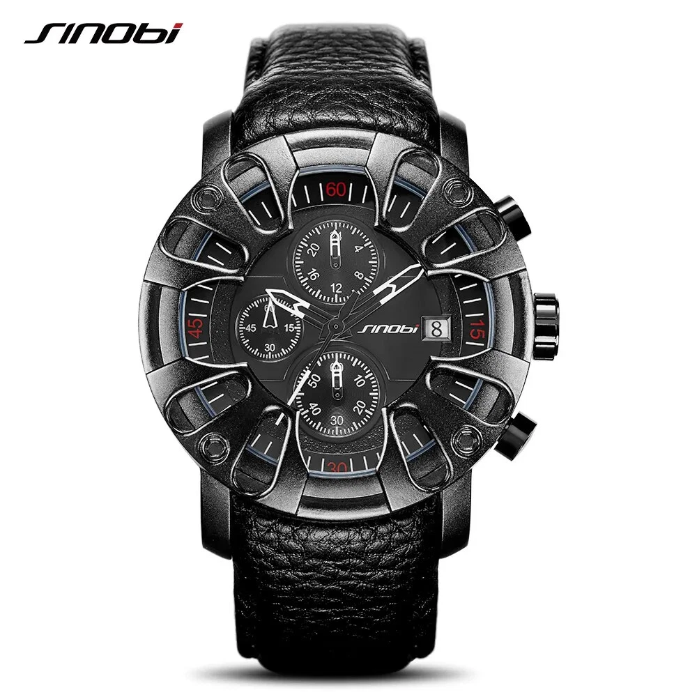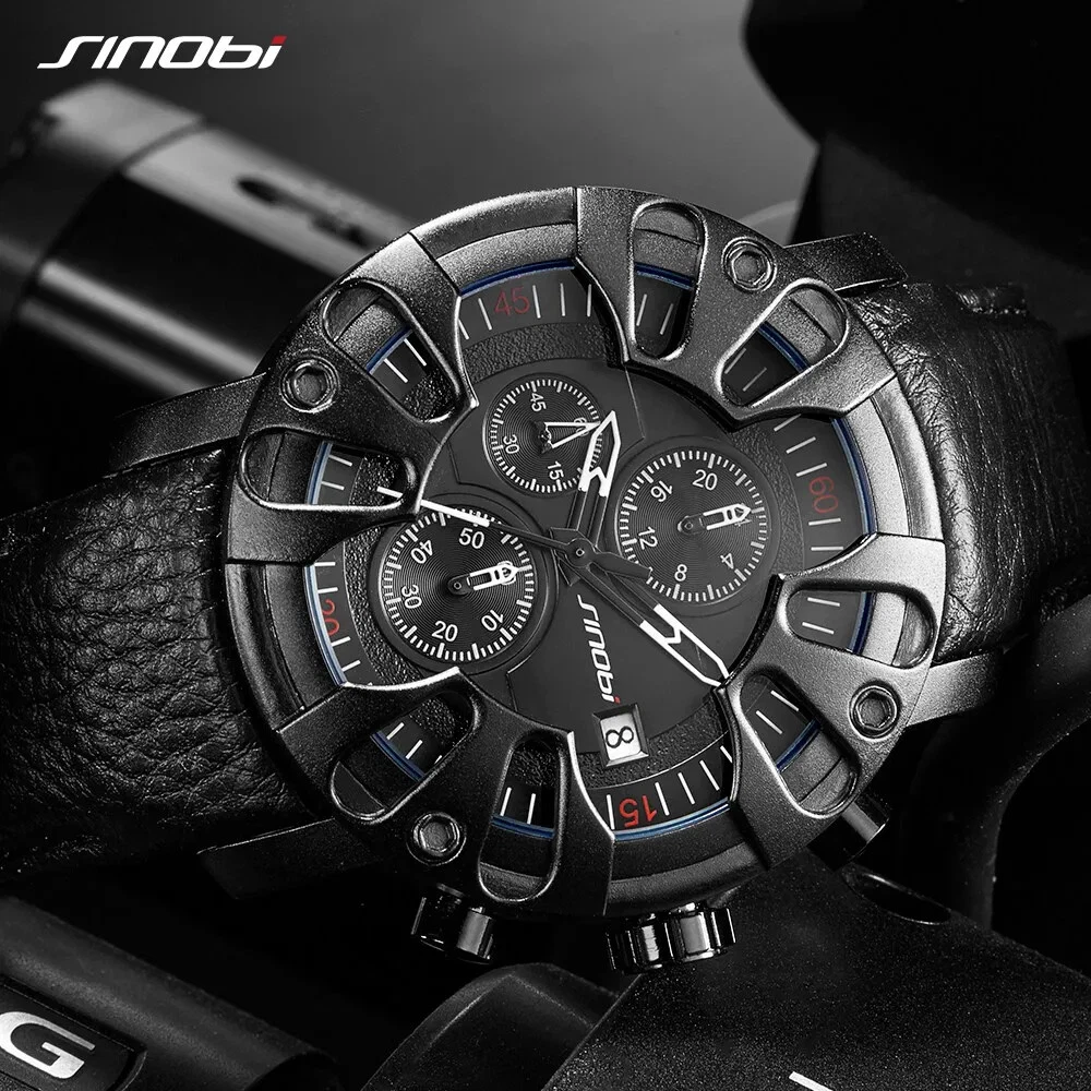 SINOBI Creative Car Design Leather Men Watches Canlender Man Quartz Wristwacth