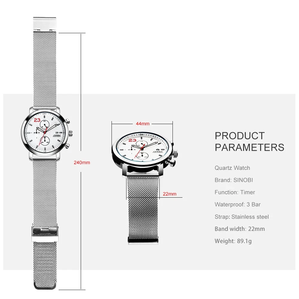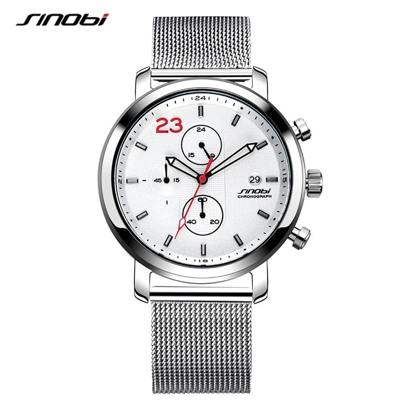 SINOBI Chronograph Men's Watches Business Stainless Steel Mesh Band for Men