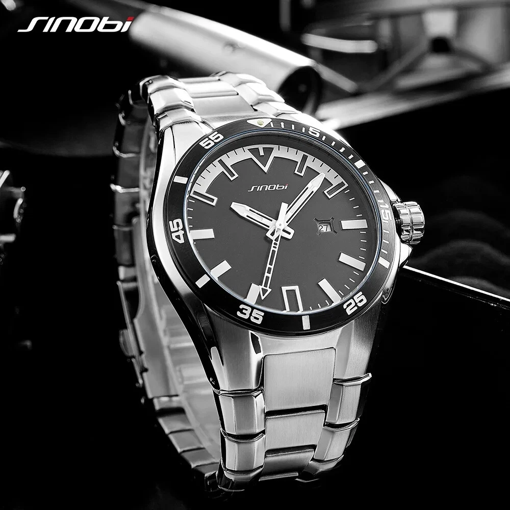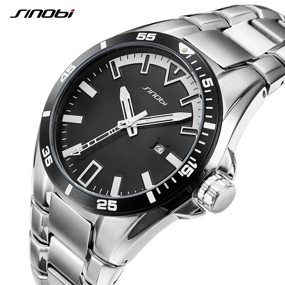 SINOBI Business Watch Men Full Steel for Men Fashoin Watchhes Luminous Ha
