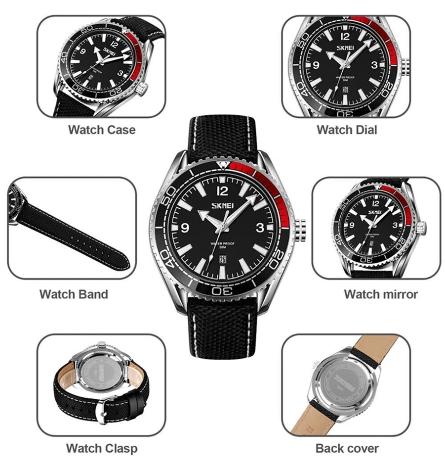 SKMEI Men Watches Luxury Brand Male Quartz Wristwatch Calendar Boy Leather Watch