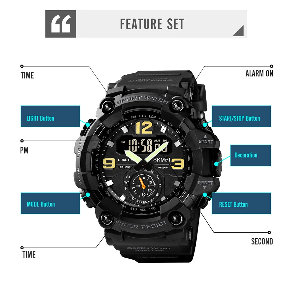 Men's Date Military Sport Digital Quartz Tactical Waterproof Shock Watch D8C9