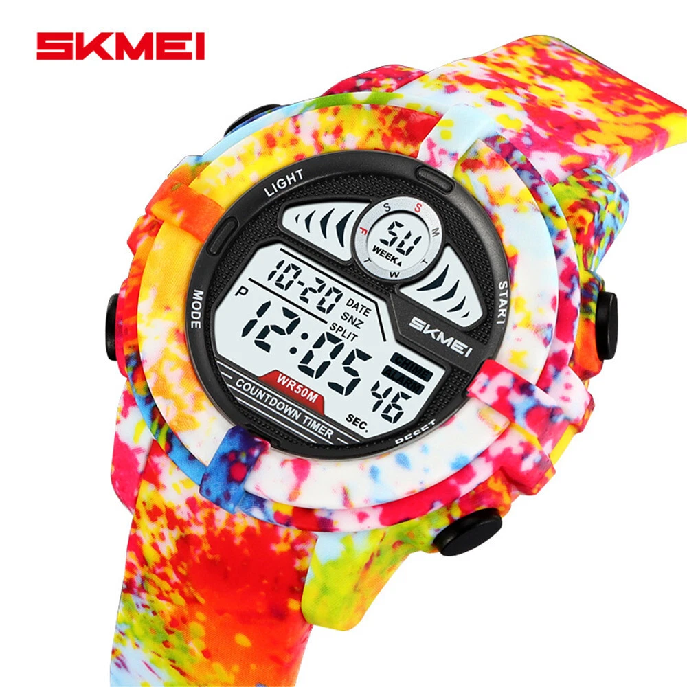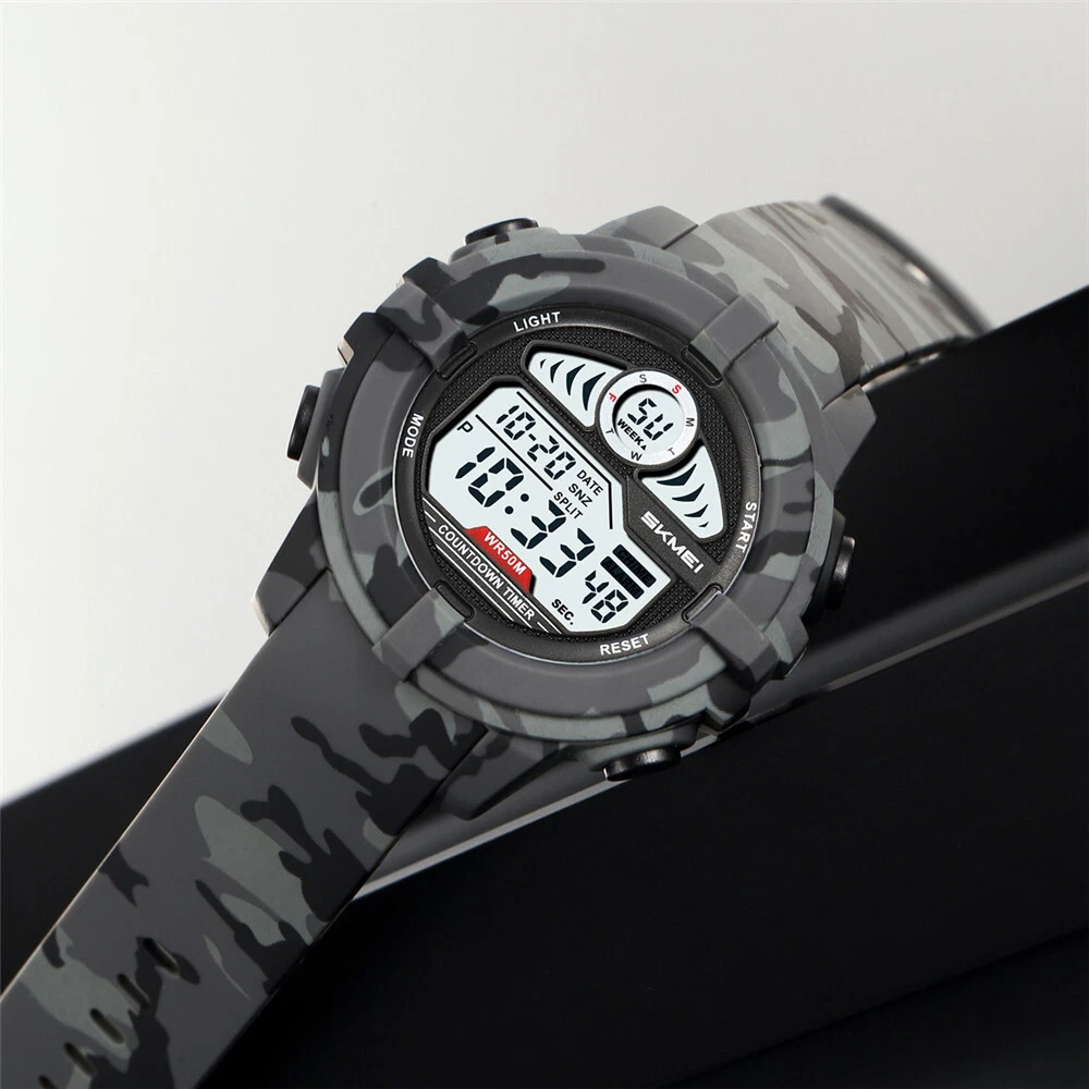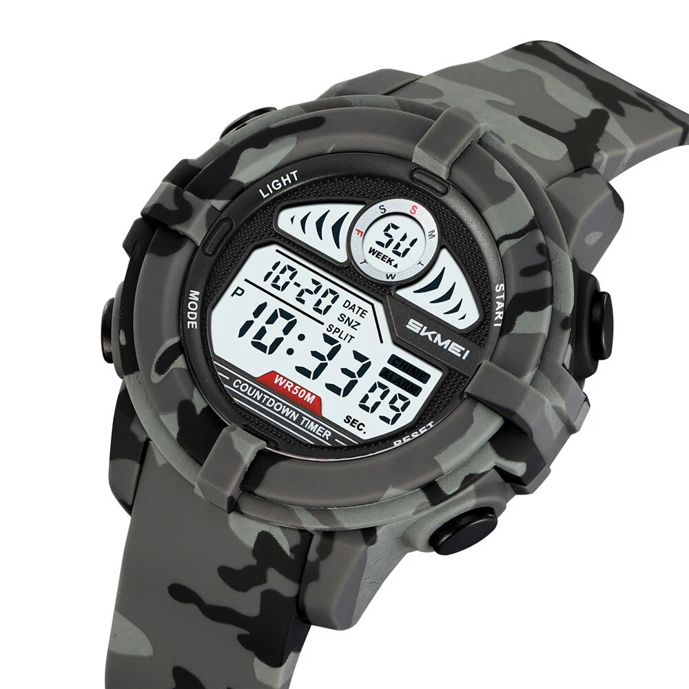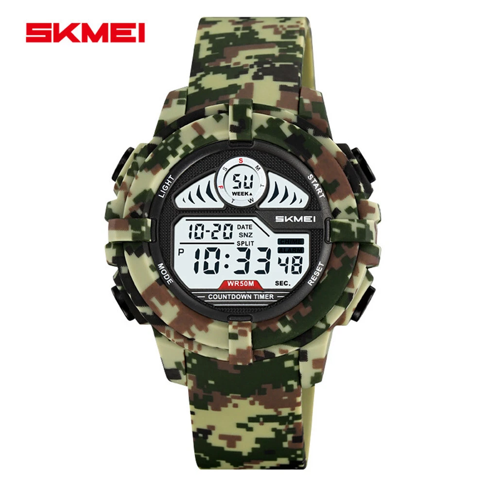 SKMEI Men Sport Watch Digital LED Wristwatch Military Camouflage Green Boy Watch