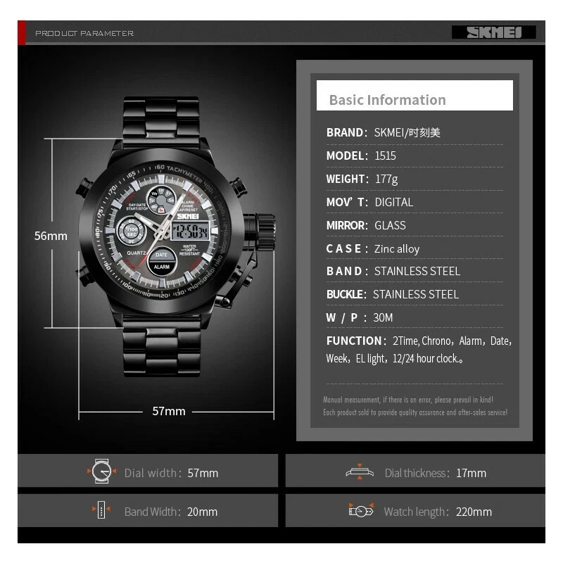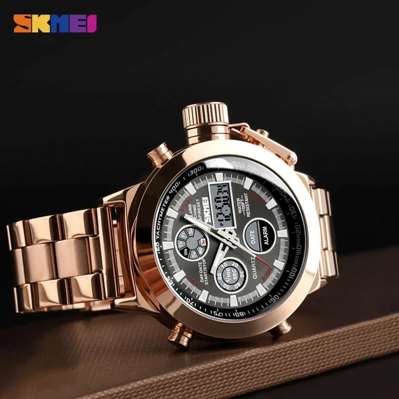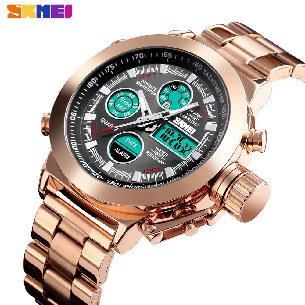 SKMEI Men Watch Dual Time Digital Wristwatch Male Steel Shockproof Sport Watches
