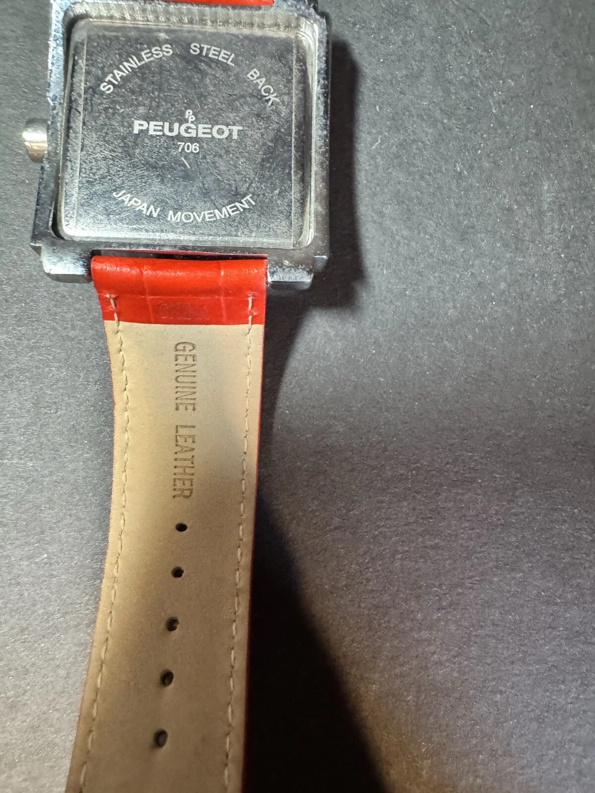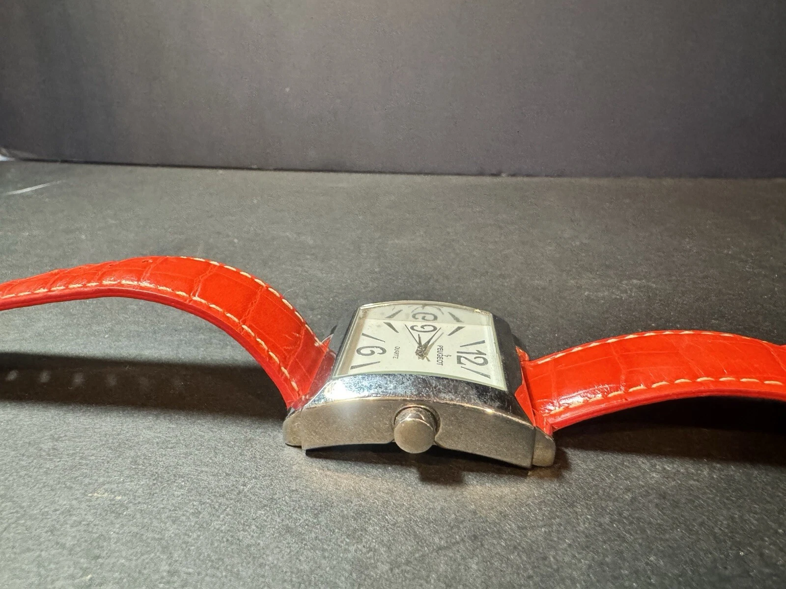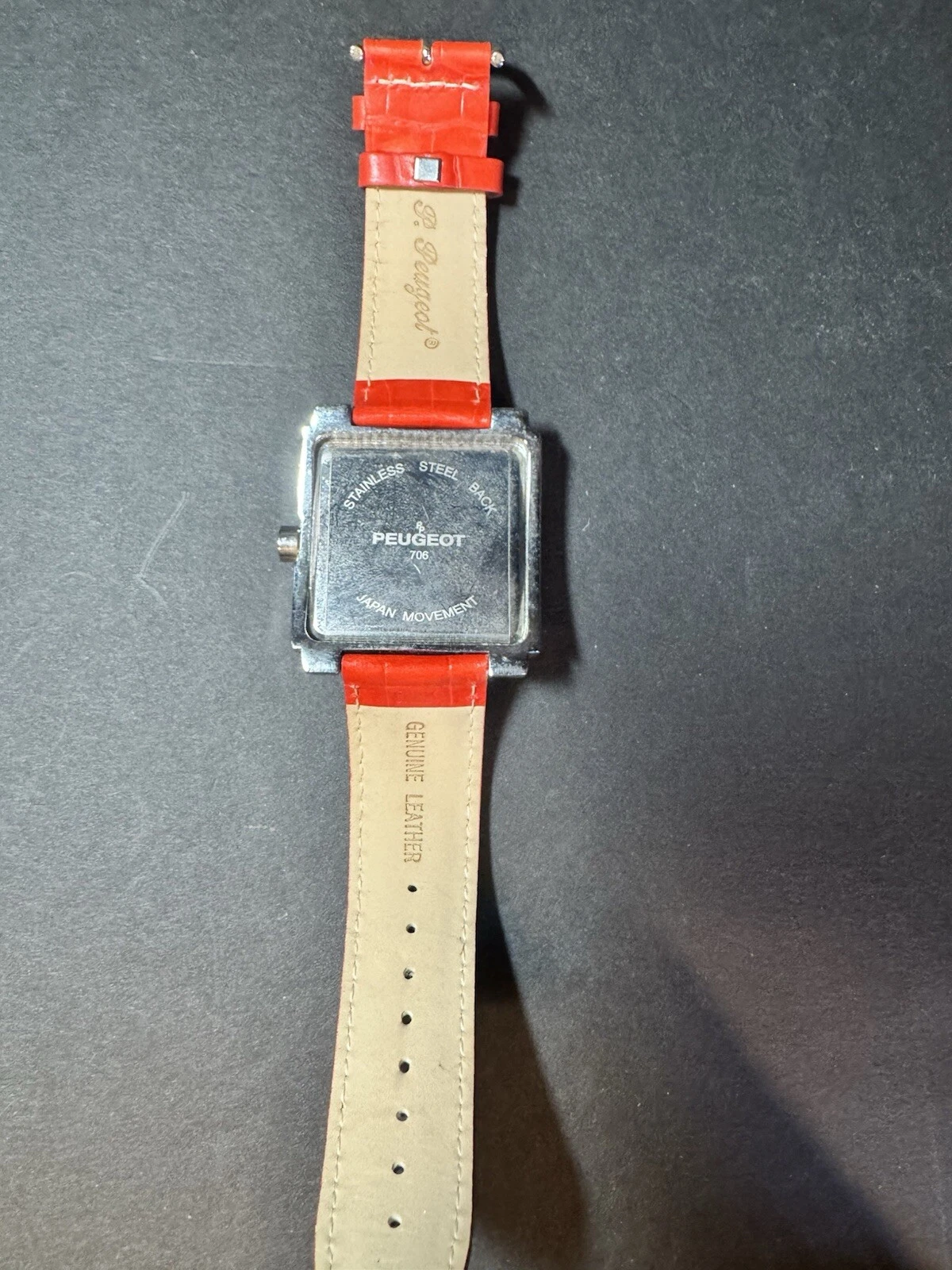 VTG Peugeot Women's 706RD Square Red Leather Boyfriend Watch #J16