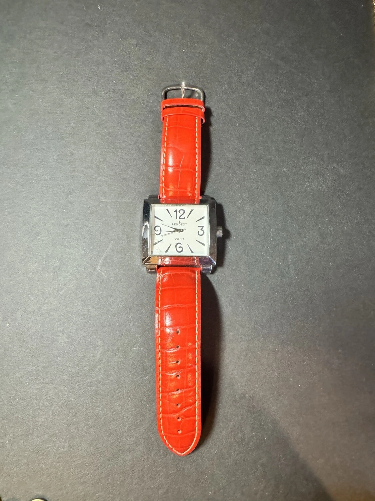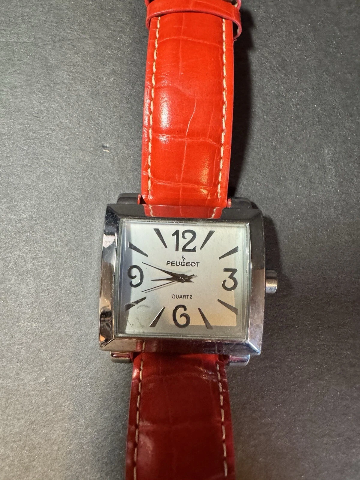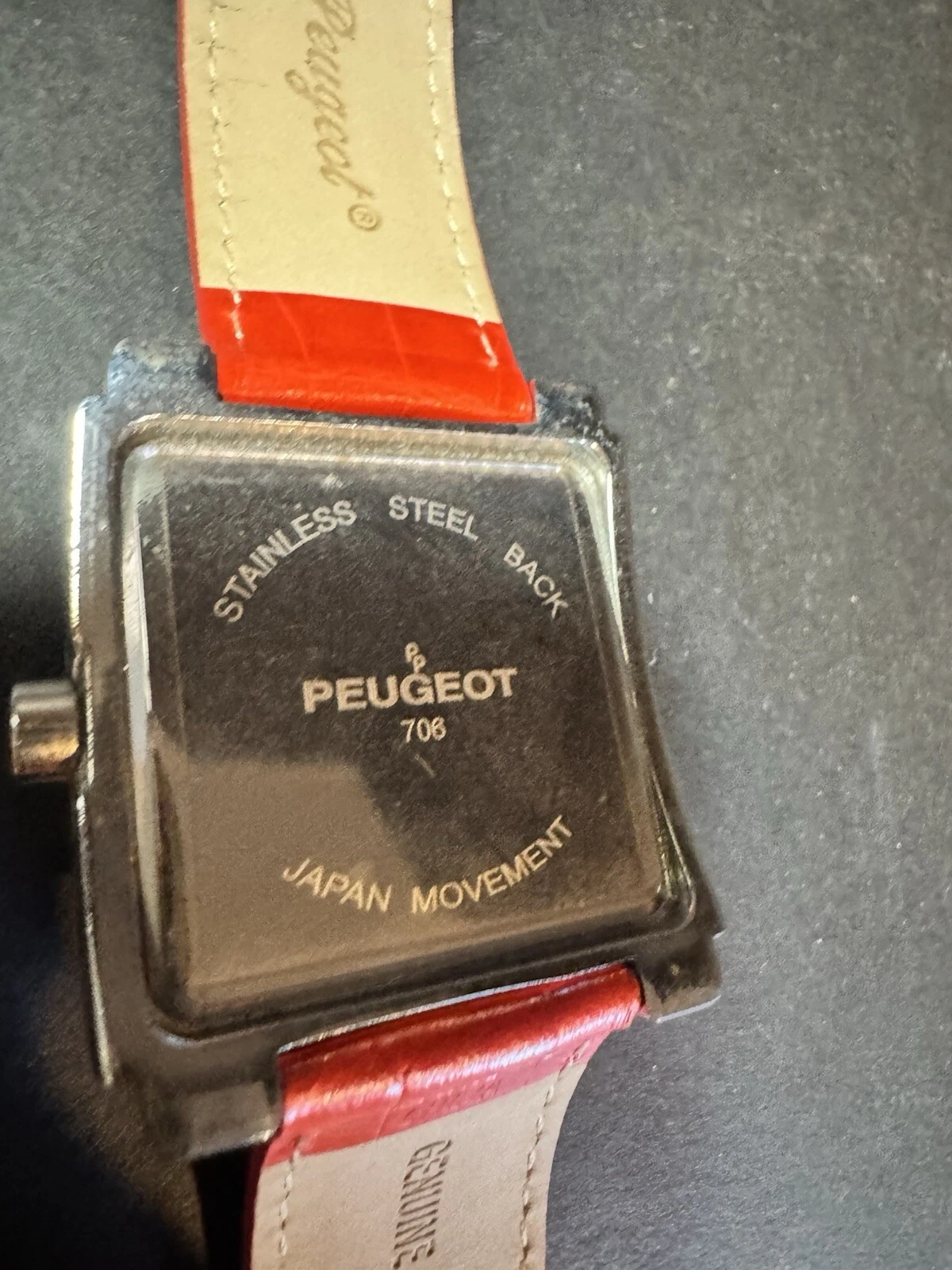 VTG Peugeot Women's 706RD Square Red Leather Boyfriend Watch #J16