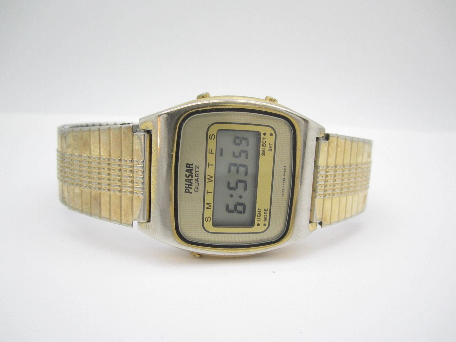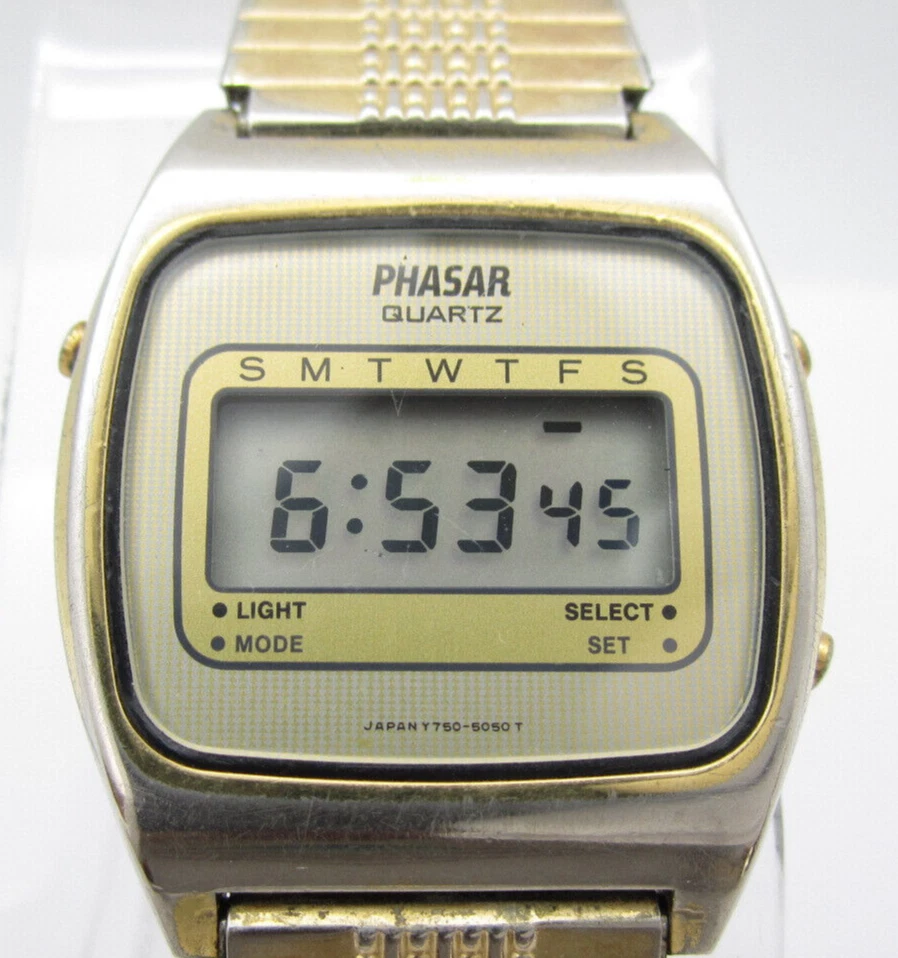 Vintage Men's Phasar Quartz WR 32mm Digital Round Watch (H75) "New Battery"