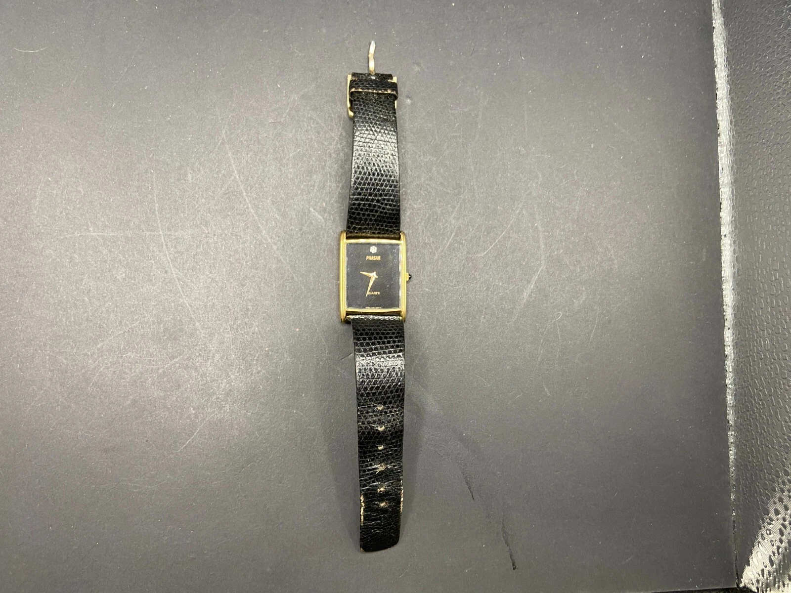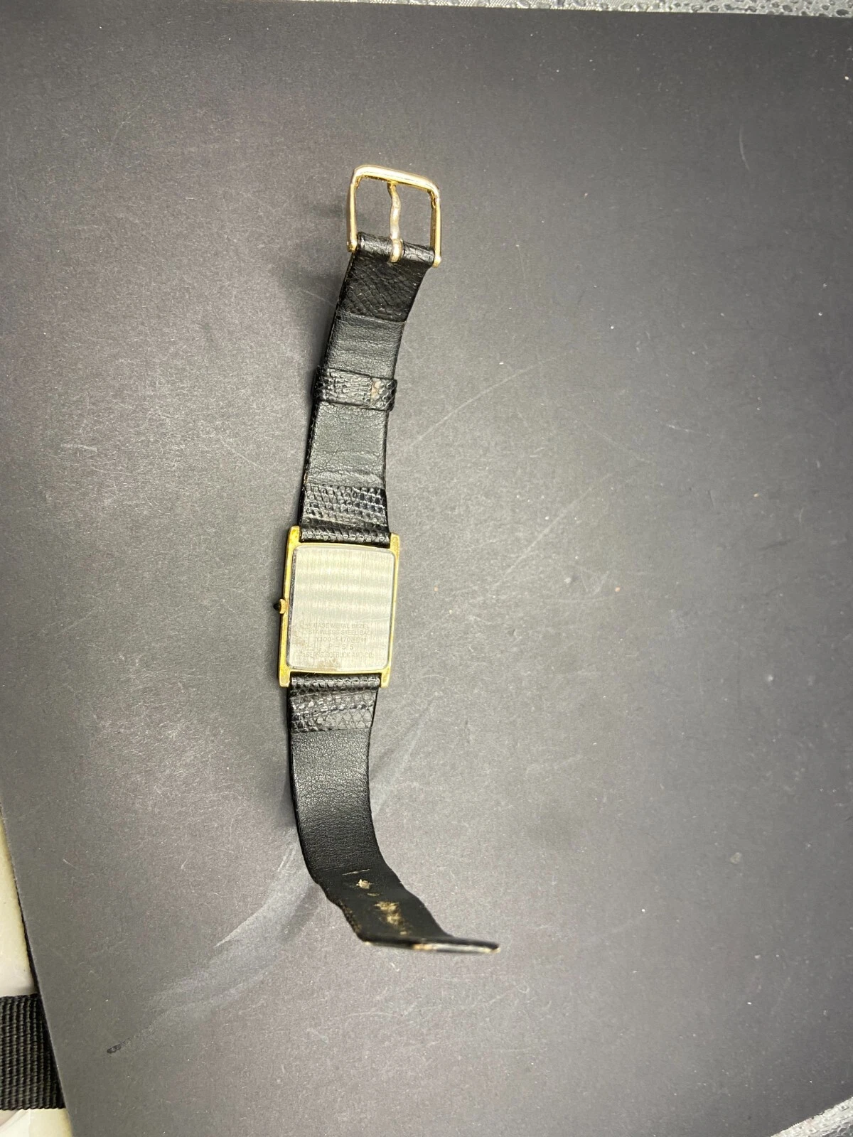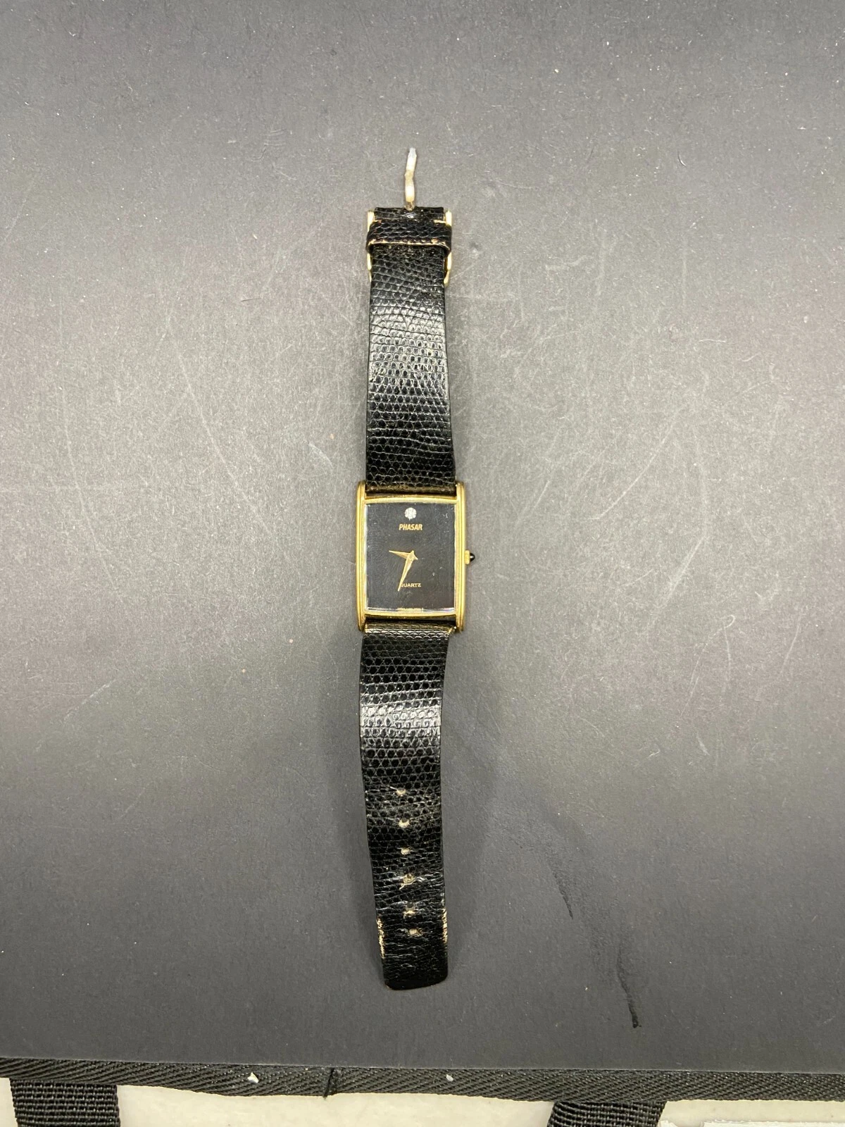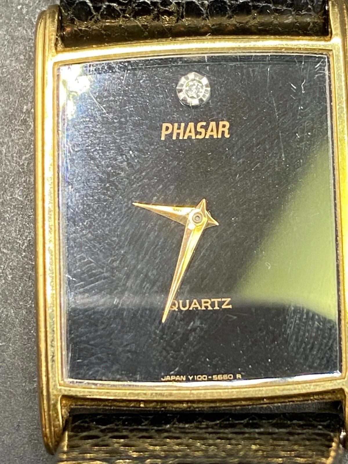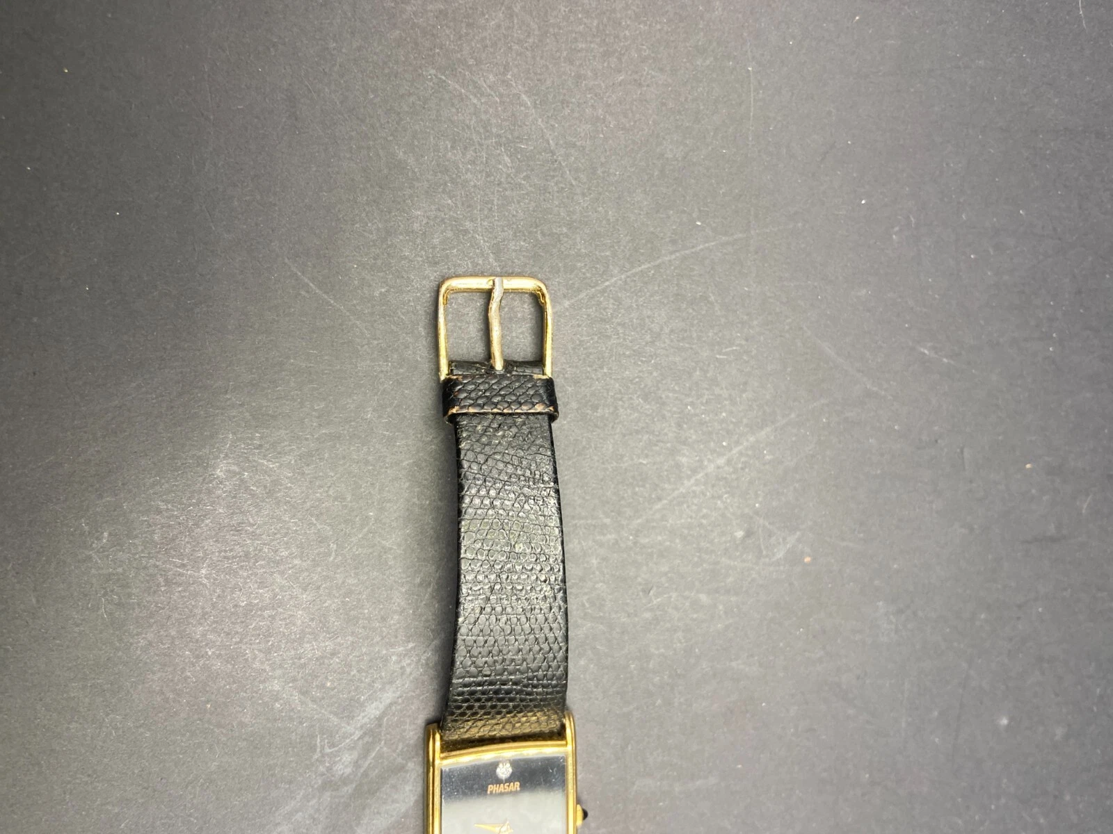 Phasar Gold Tone Rectangle Black Dial Quartz Watch Y100-5470 Black Leather Band