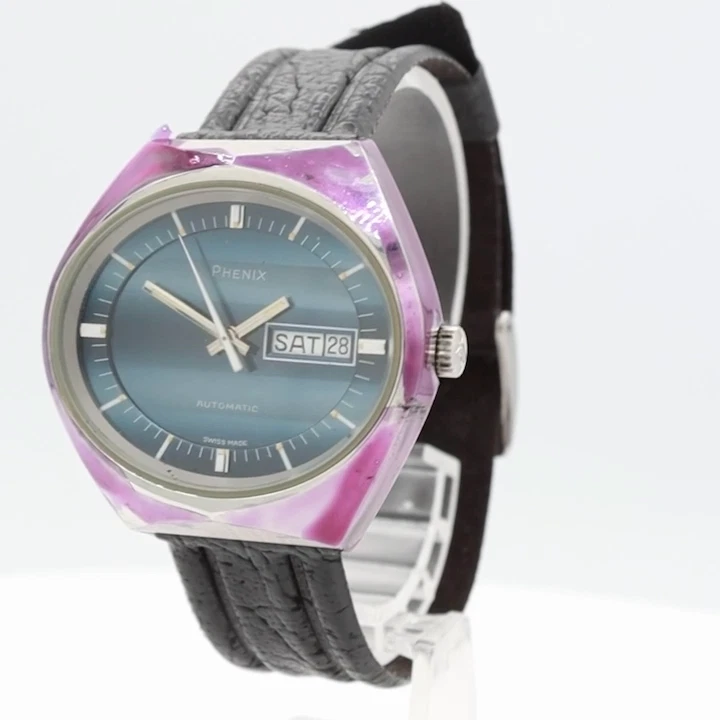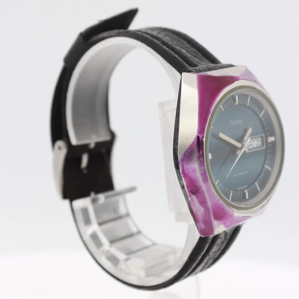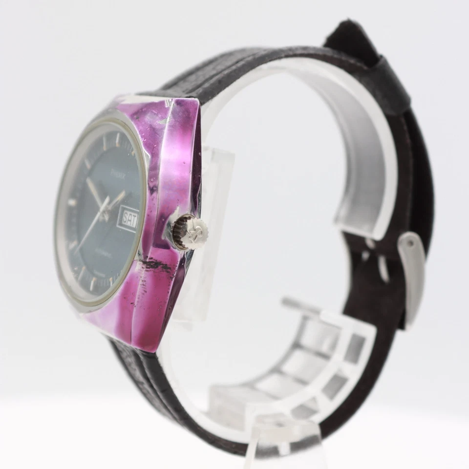 Vintage Phenix S 7726 B Purple Case Blue Dial Men's Automatic Wristwatch