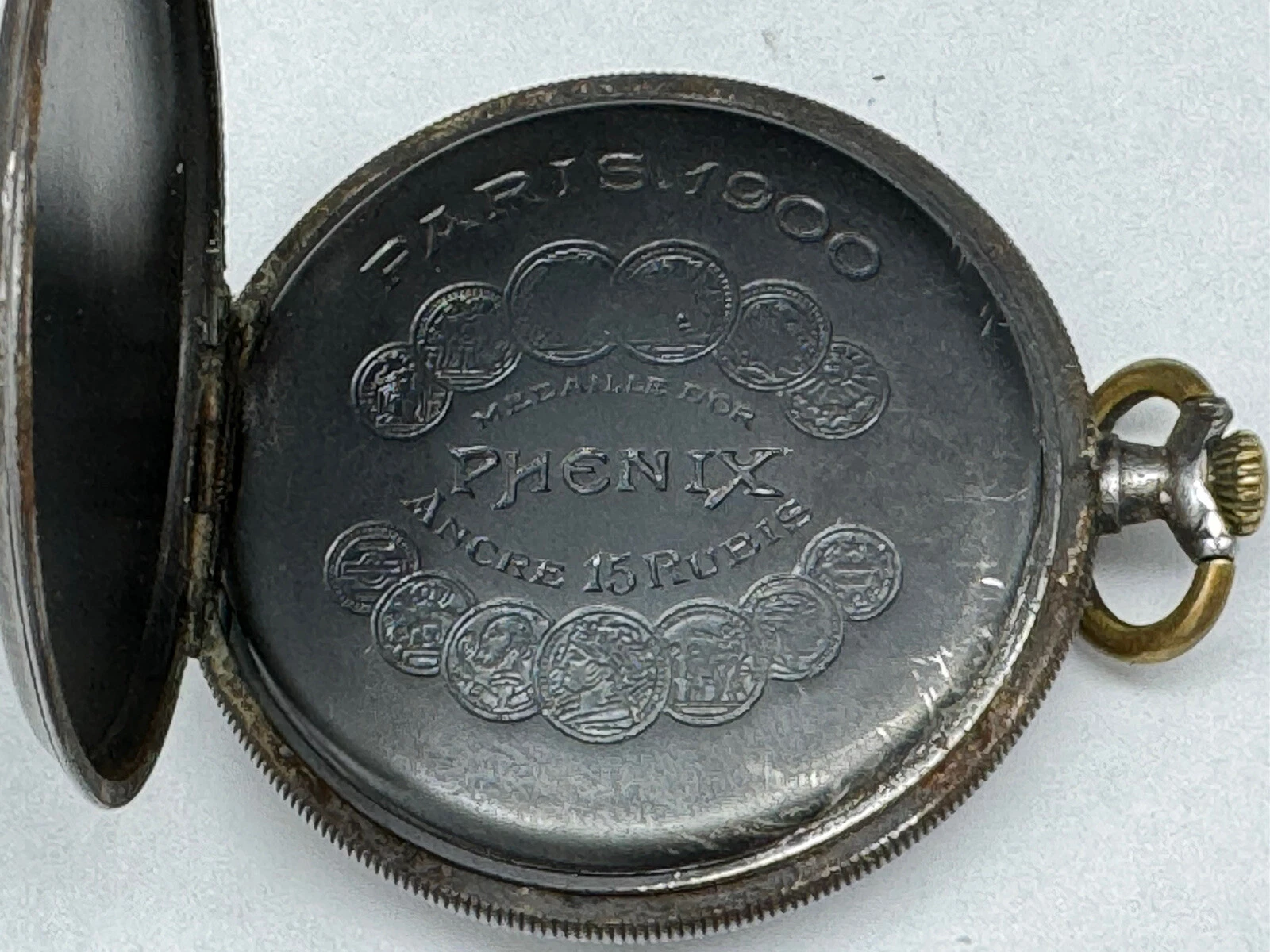 Rare Vintage PHENIX Gunmetal Working Pocket Watch, 1900 Paris Exposition