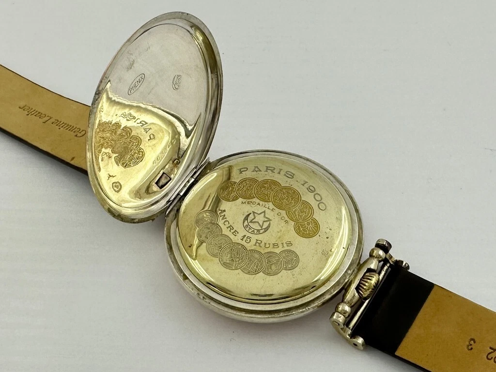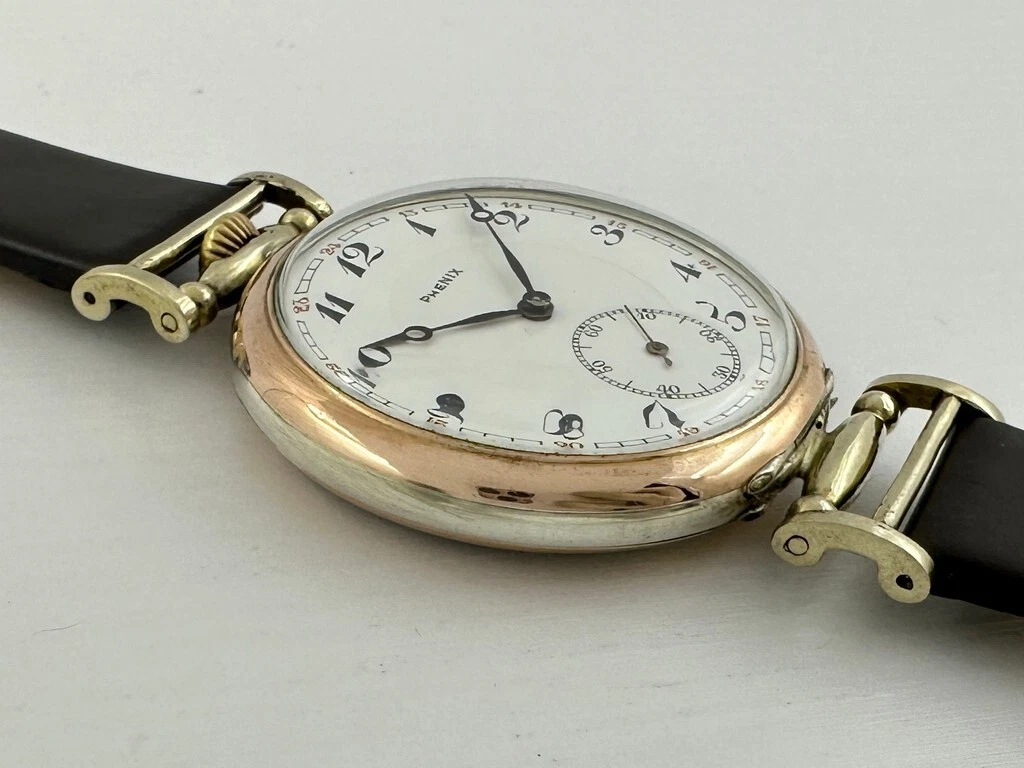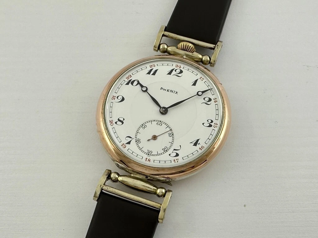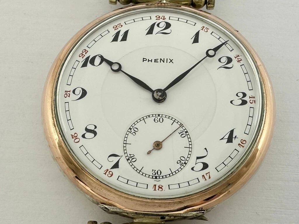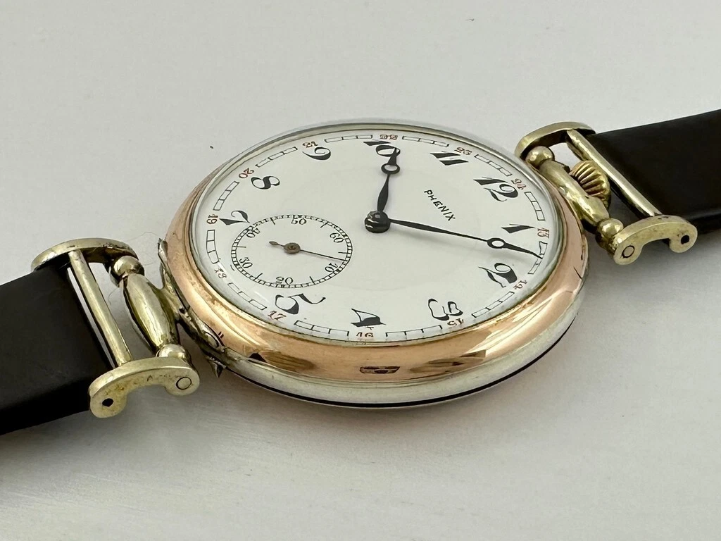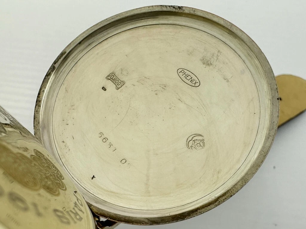 Phenix Antique 1910s Swiss Amazing Art Deco Silver Men Watch with Porcelain Dial