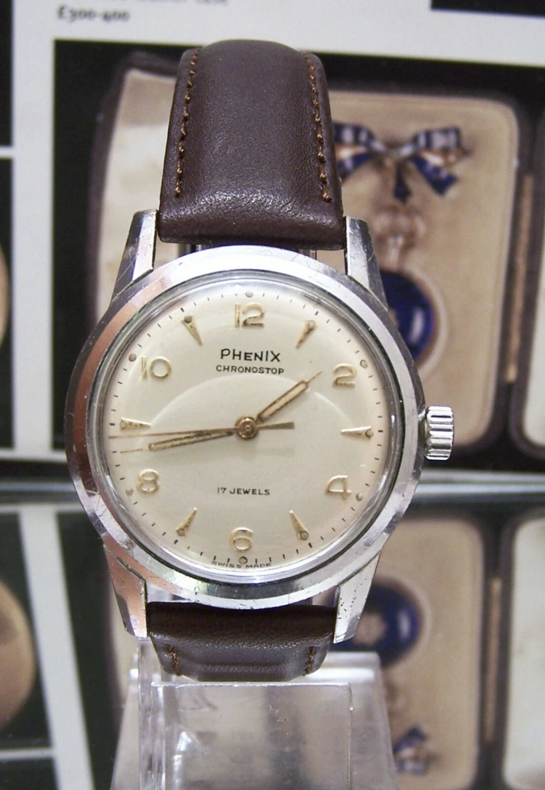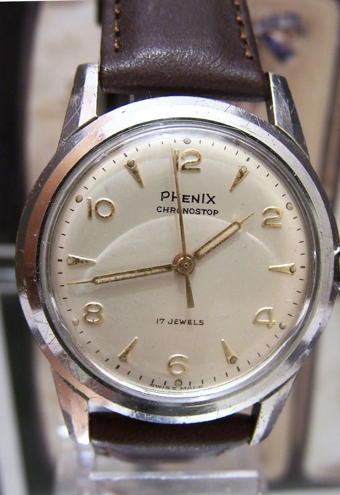 ANTIQUE VINTAGE SO RARE C1950'S SWISS PHENIX CHRONO STOP WATCH FULLY SERVICED