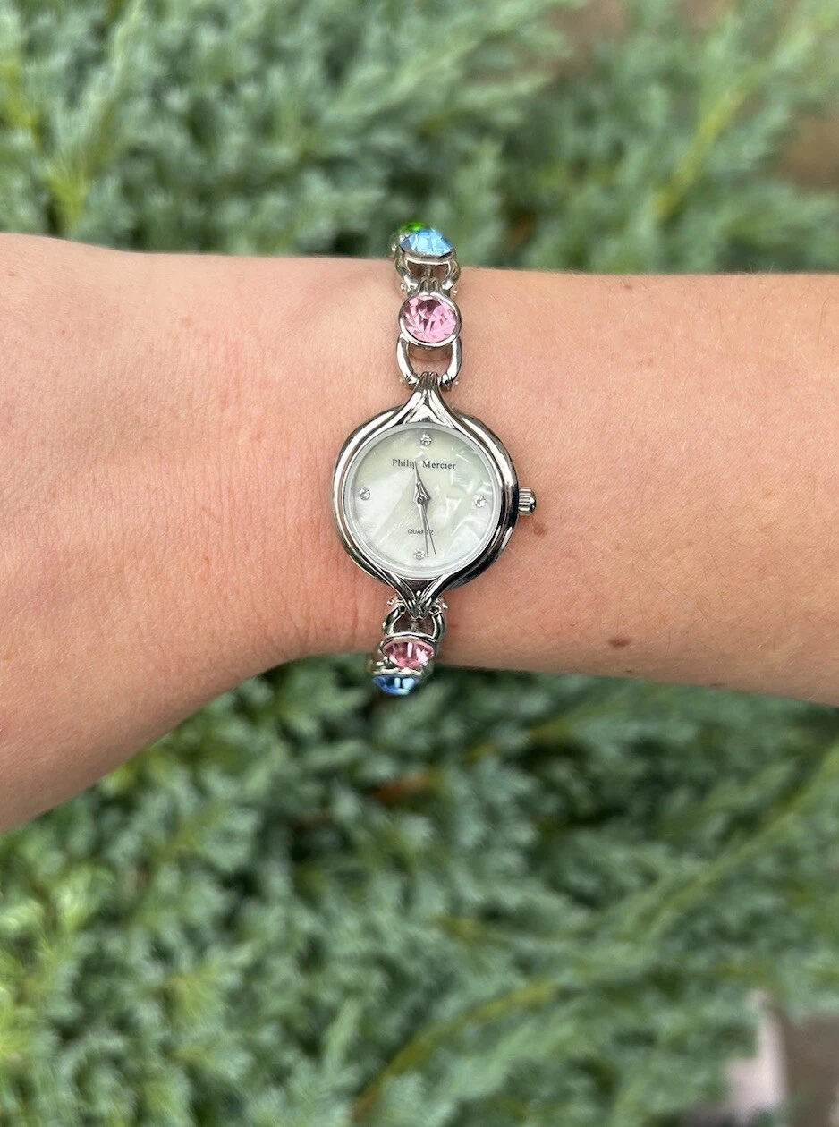 Vintage Colourful Gemstone Ladies Dainty Watch Bracelet Set Philip Mercier