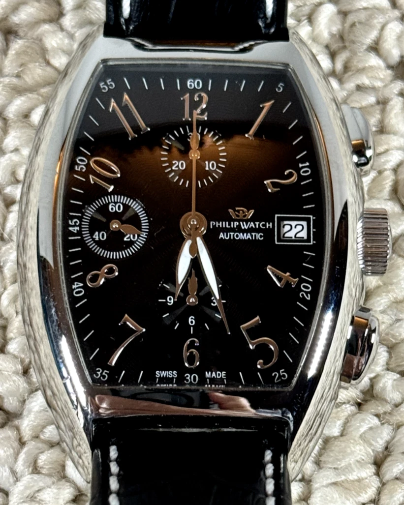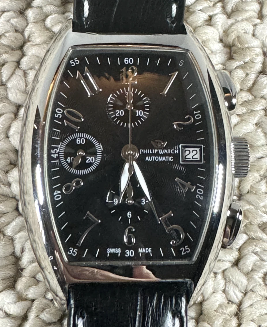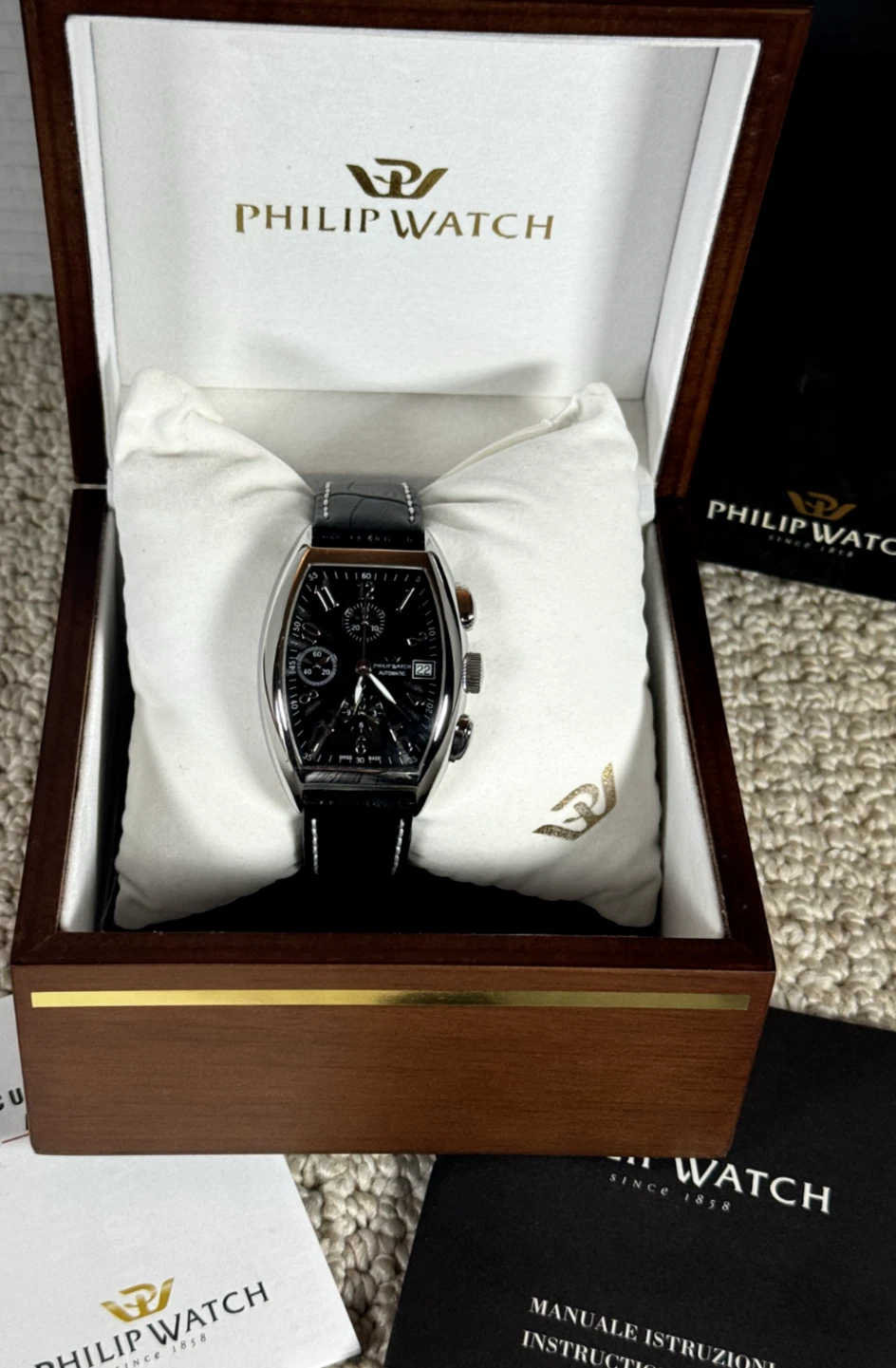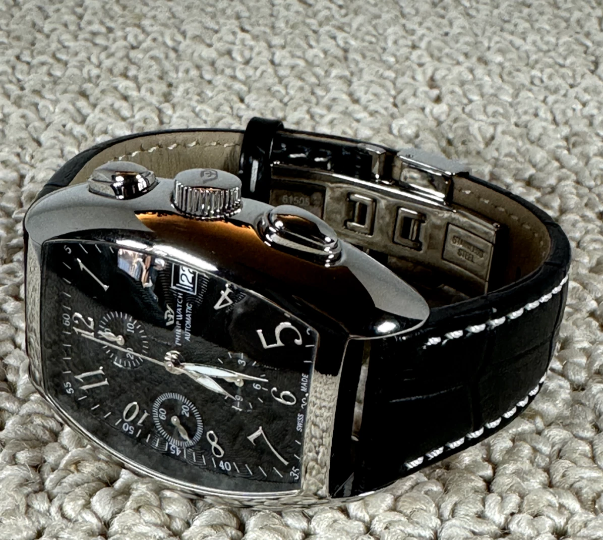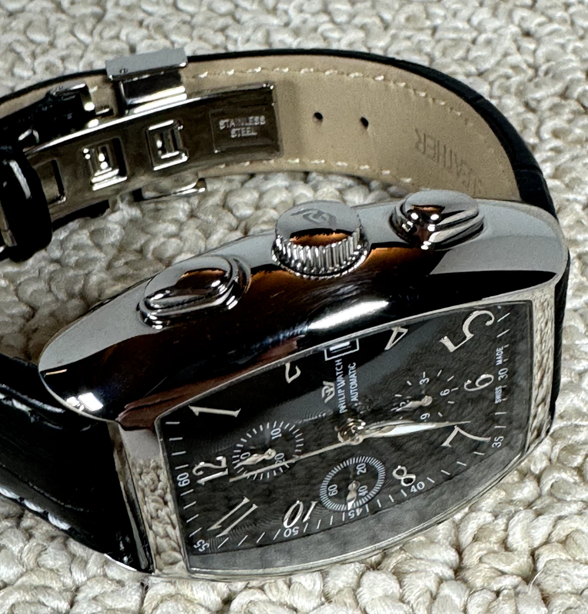 Philip Watch Swiss Automatic Chronograph Valjoux 7750 Black Dial RARE-VTG.