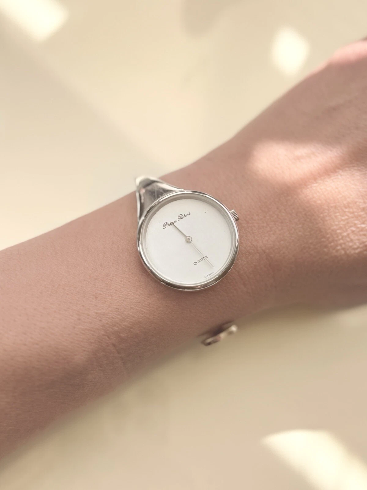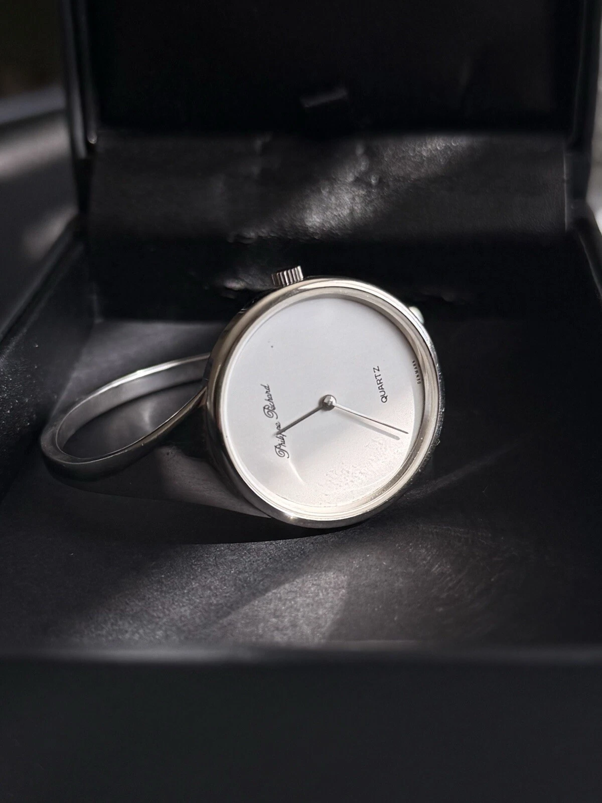 Ladies Philippe Pechard Silver Tone Modern Cuff Bracelet Analog Watch