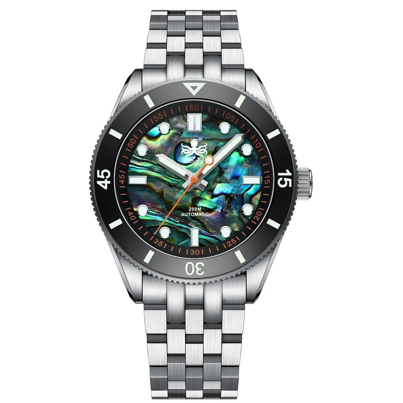 Phoibos Wave Master 200M Automatic Diver Watch 39.5mm - Abalone (No Date)