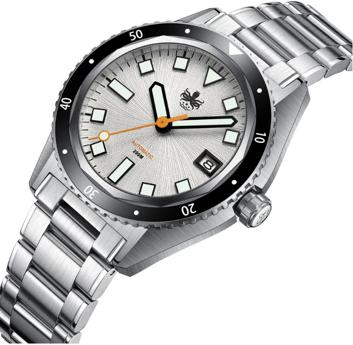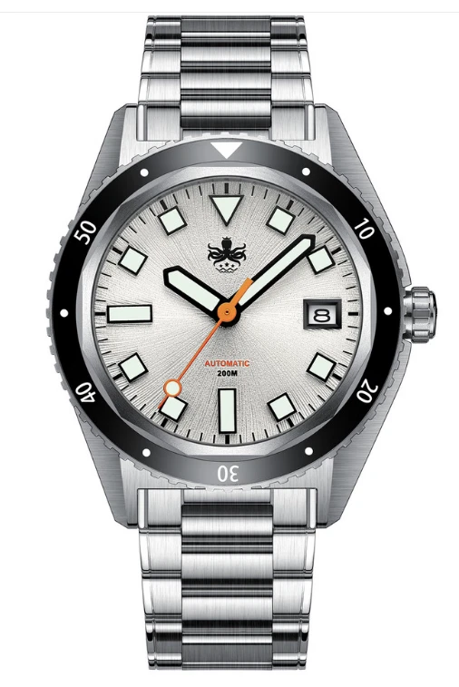 SALE!! PHOIBOS Argo 200M Automatic Diver Watch Spiral Sunray Silver White PY052E