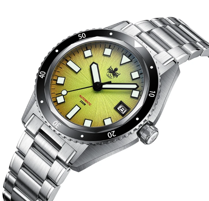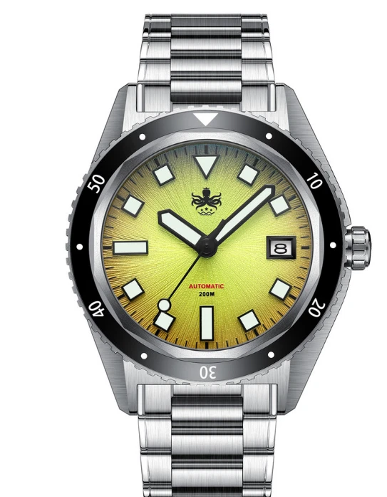 SALE !!! PHOIBOS Argo 200M Automatic Diver Watch Spiral Sunray Yellow PY052F