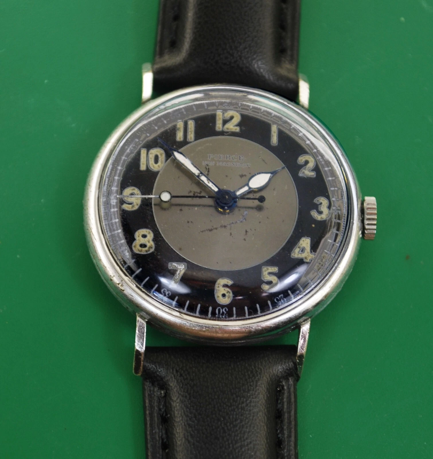 PIERCE Vintage 1940's WWII Military Pilots Watch Super Rare Original Dial