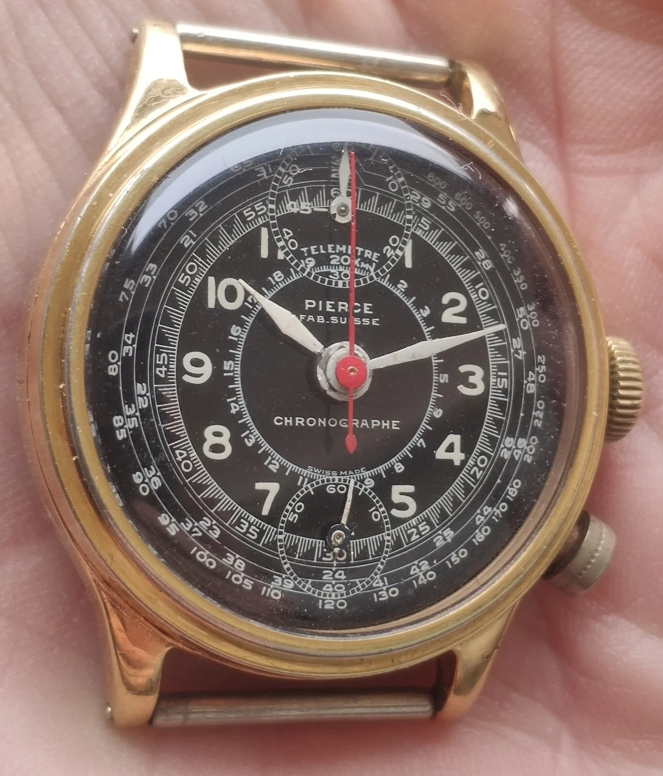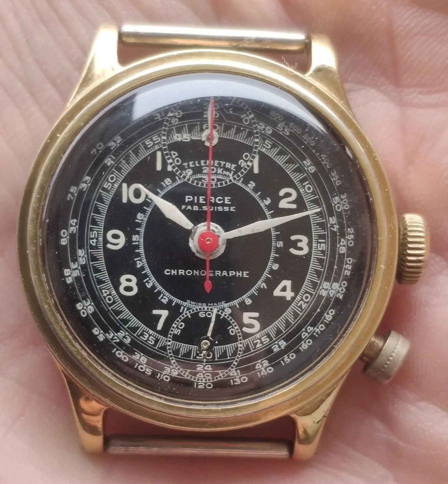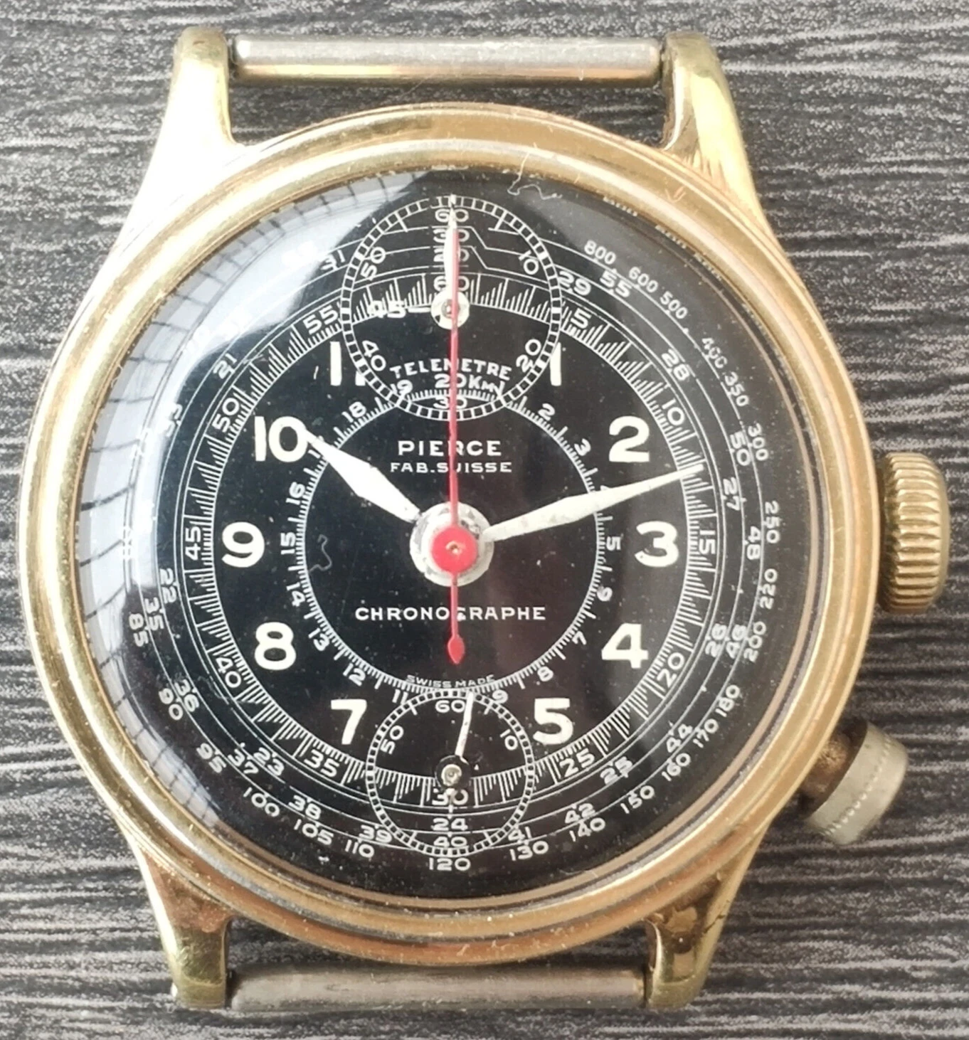 Vintage men's miltary vision Pierce Monopusher chronograph watch for repair