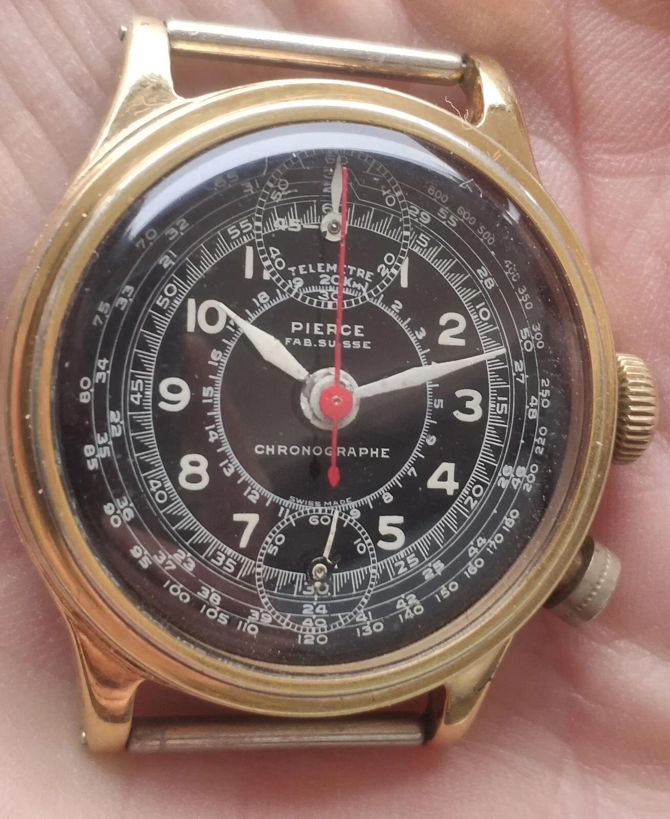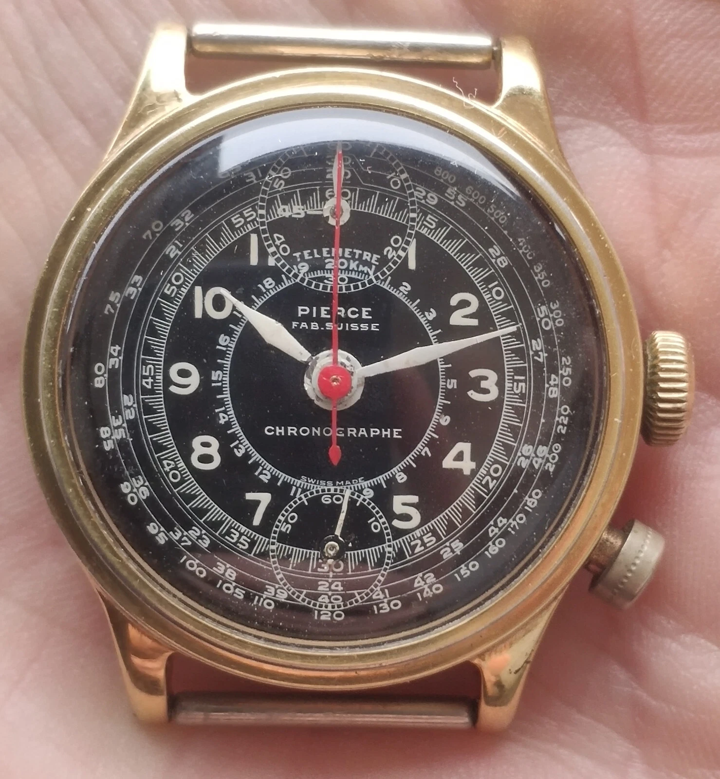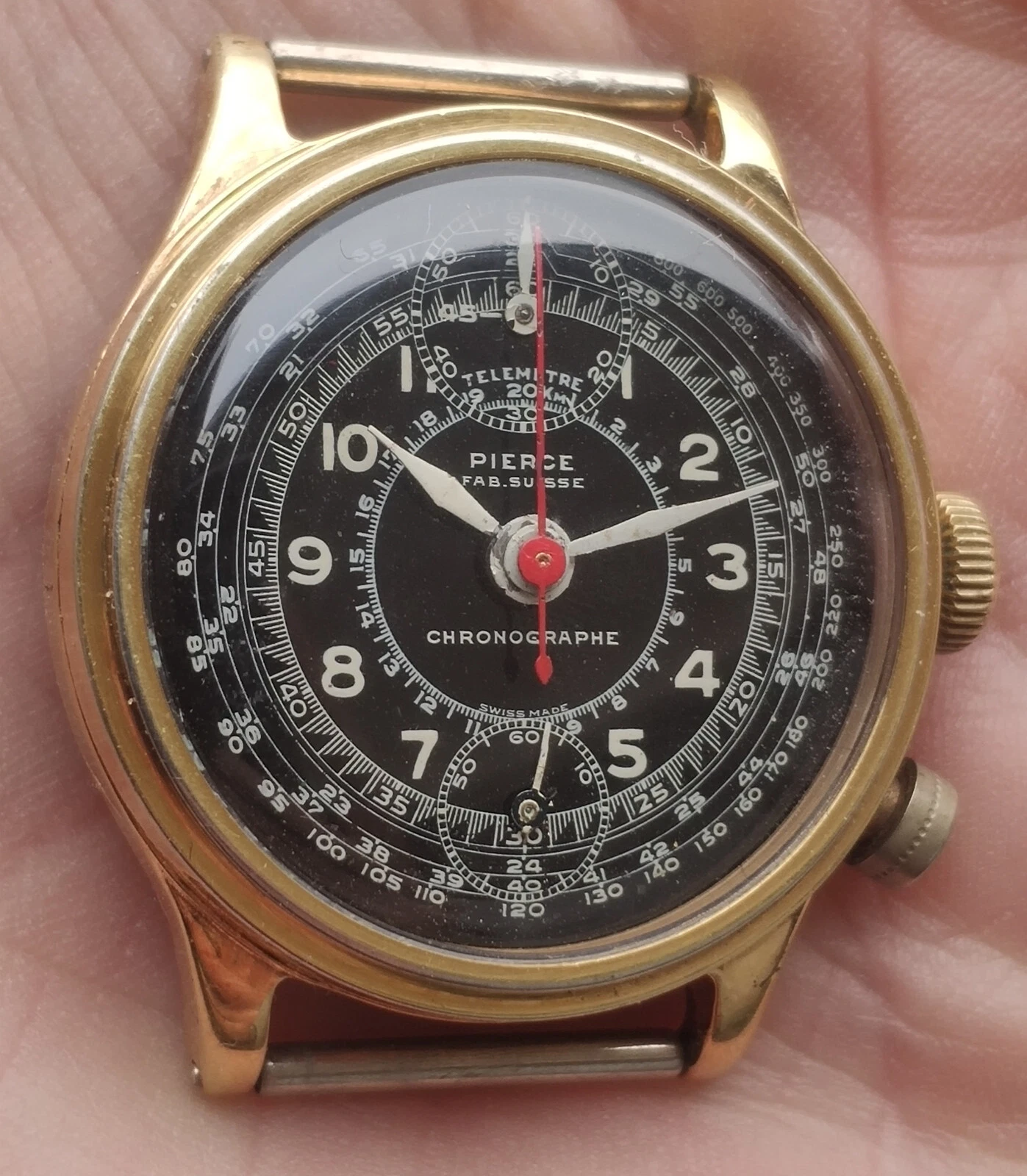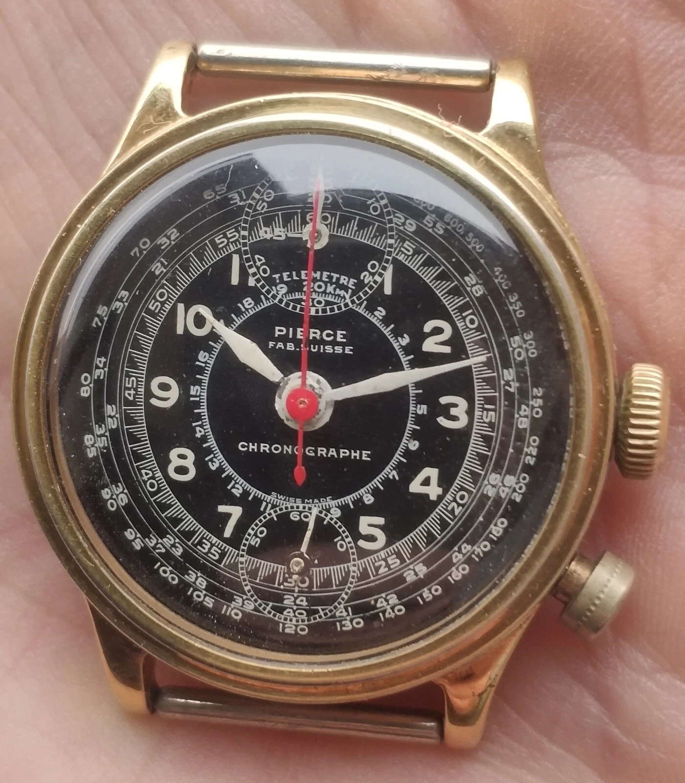 Vintage men's miltary vision Pierce Monopusher chronograph watch for repair