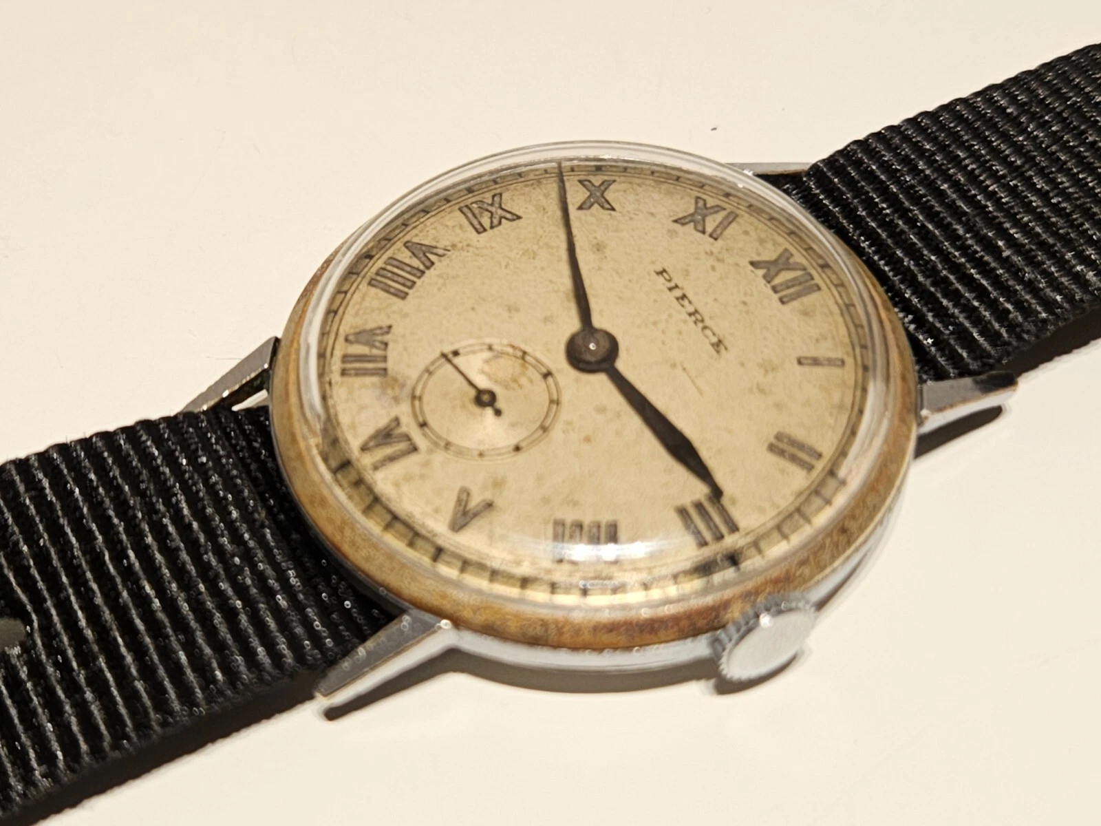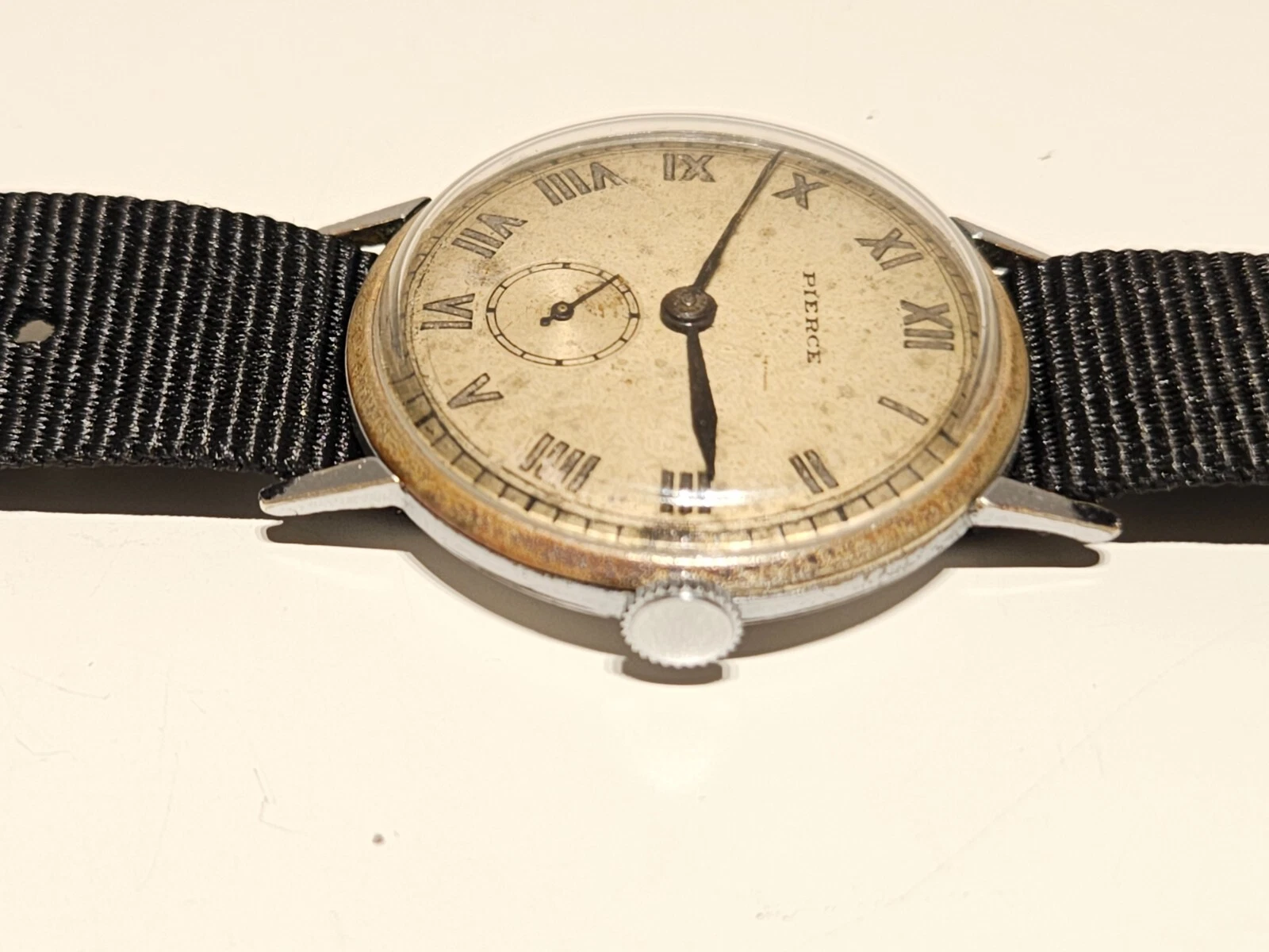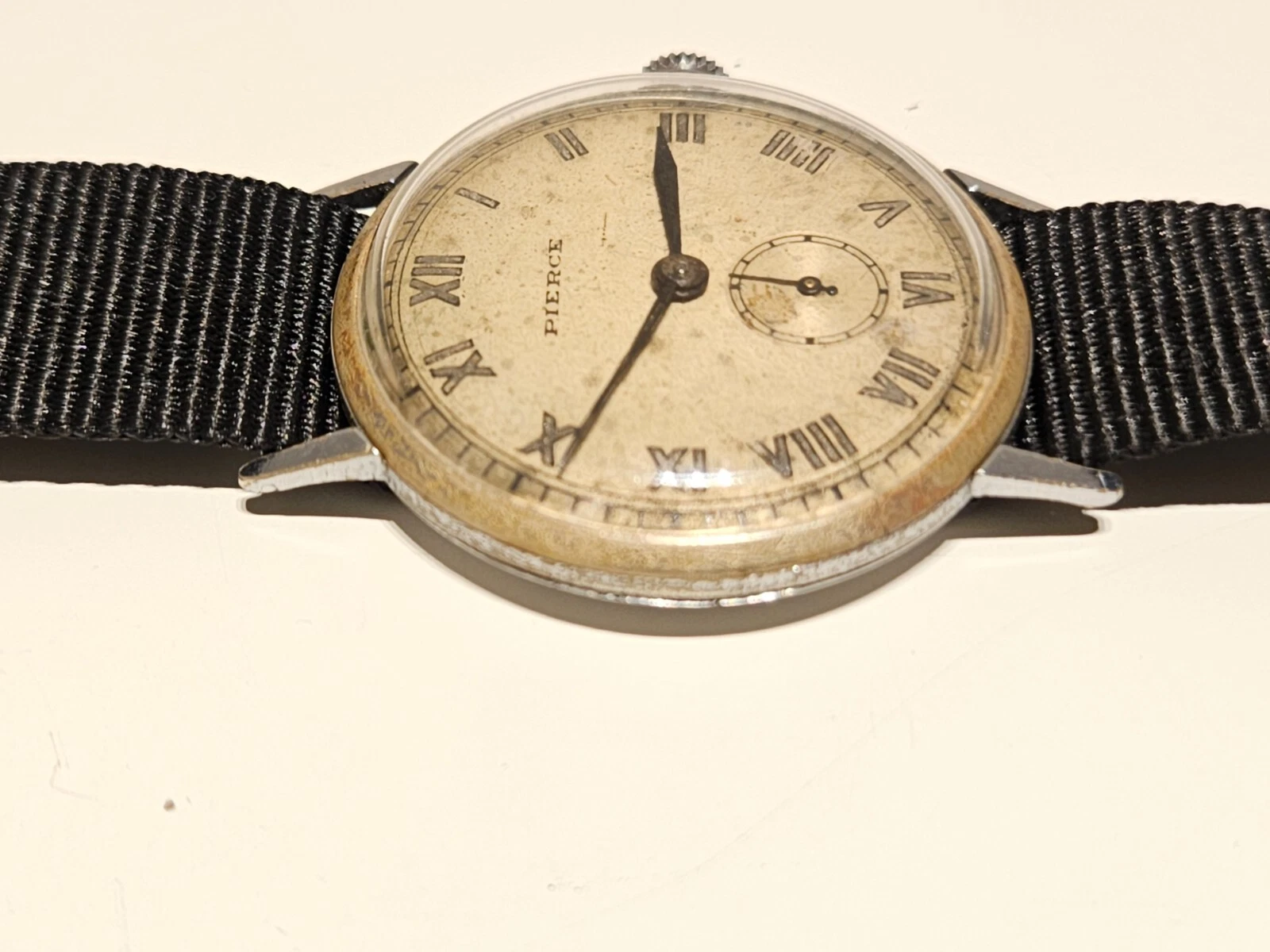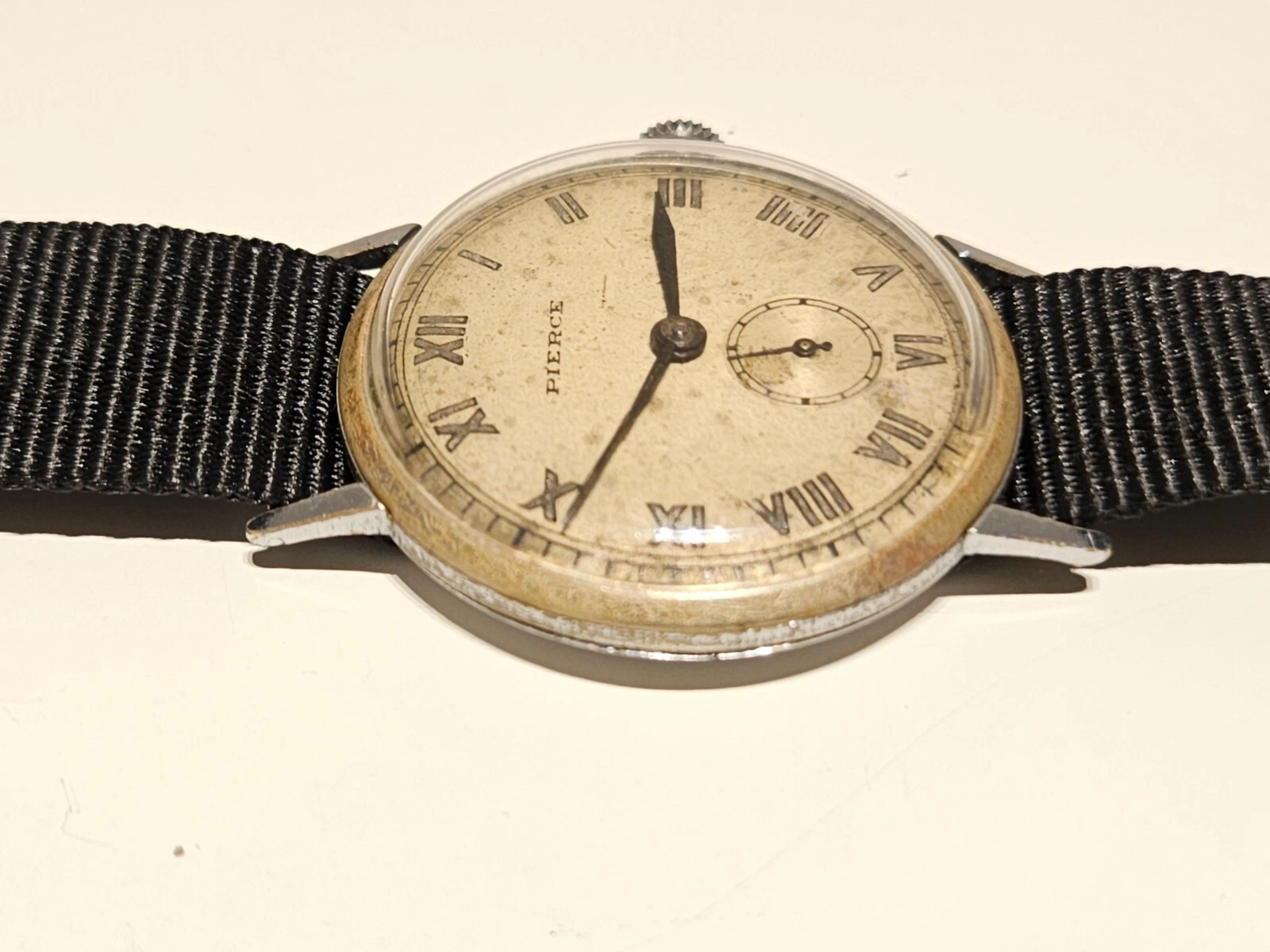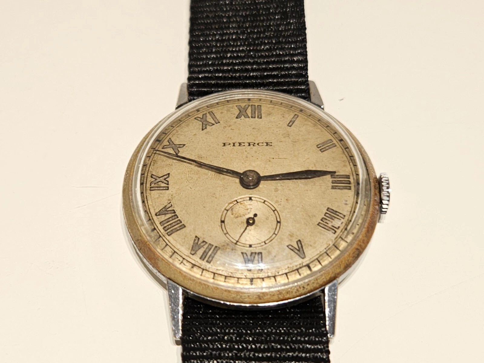 VINTAGE RARE WW2 ERA SUB SECOND CHROMED MEN'S SWISS 35mm WATCH "PIERCE"15J