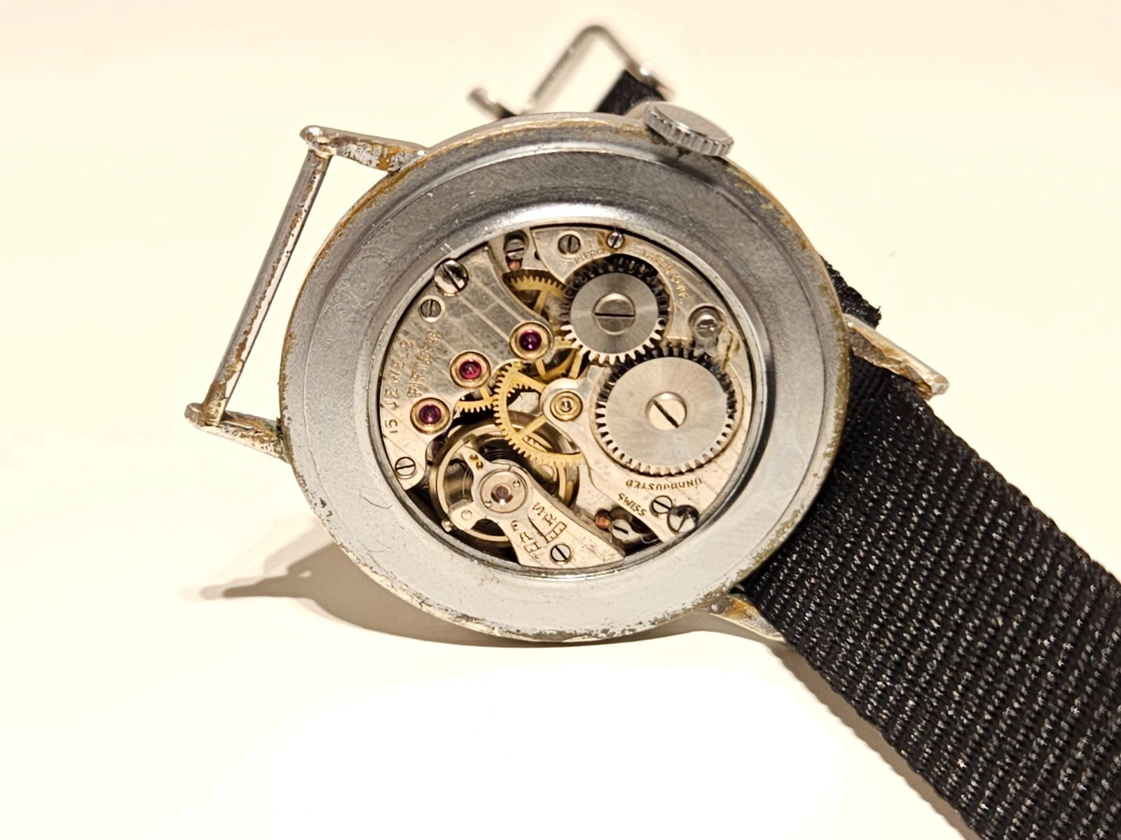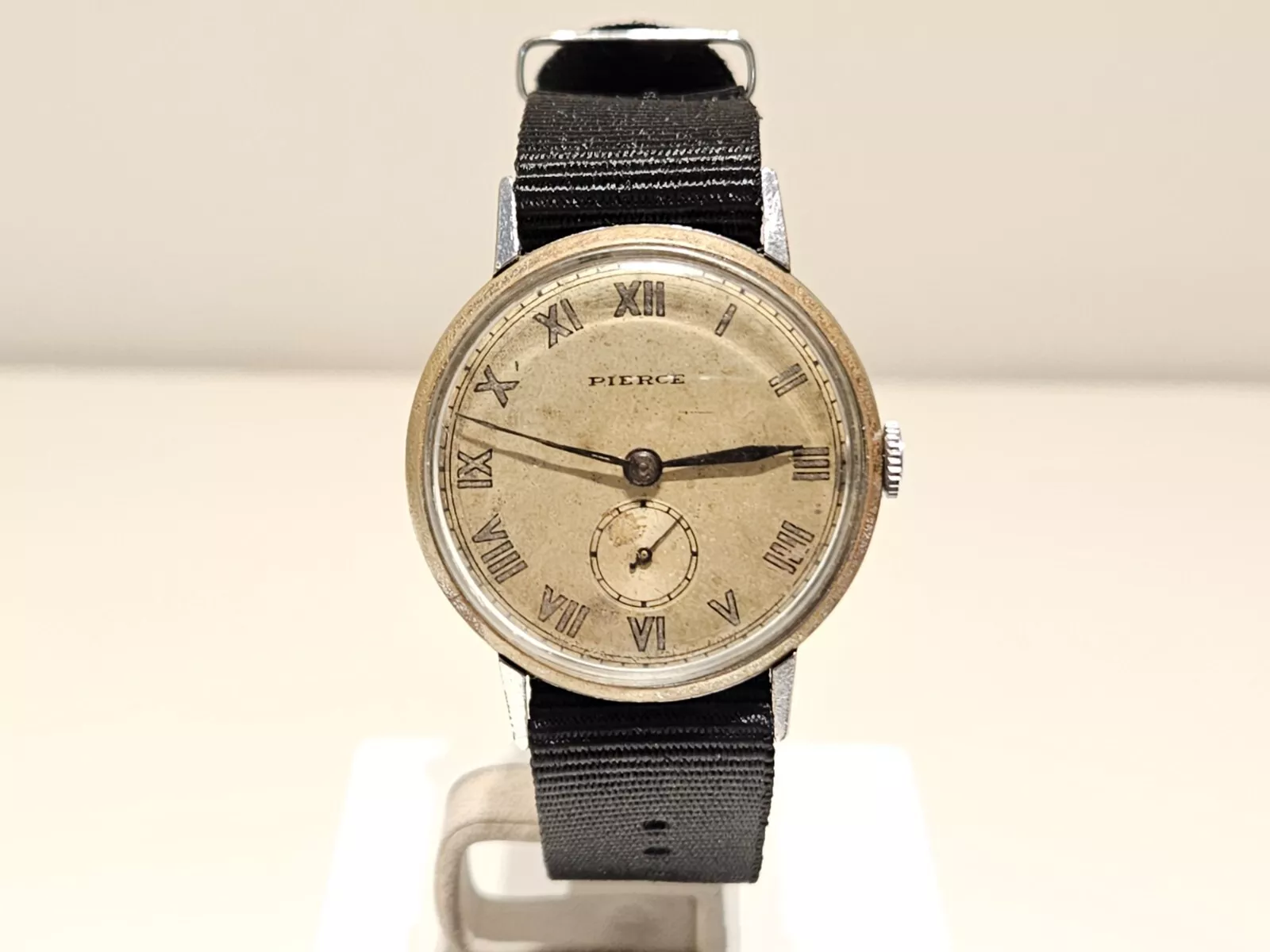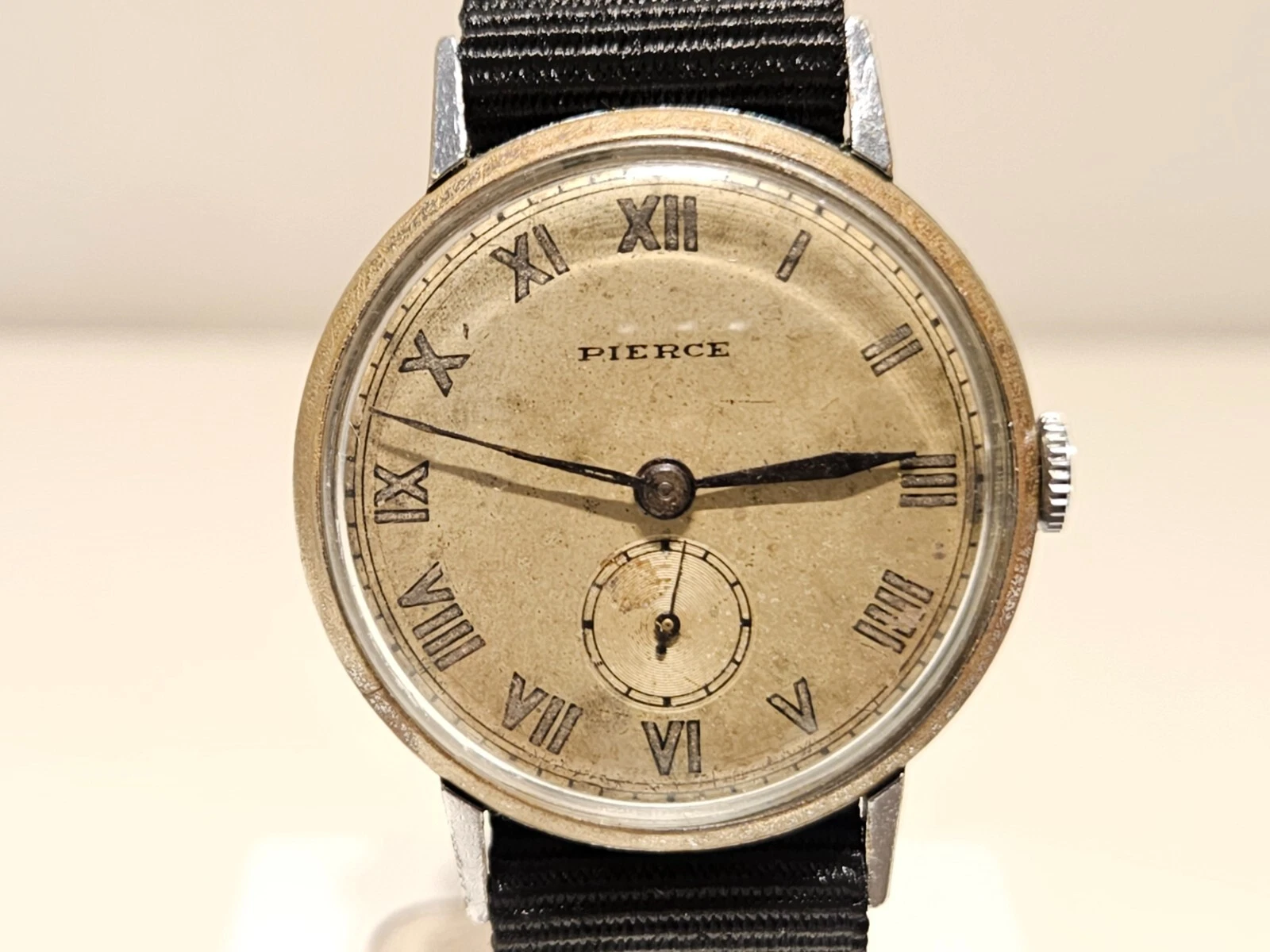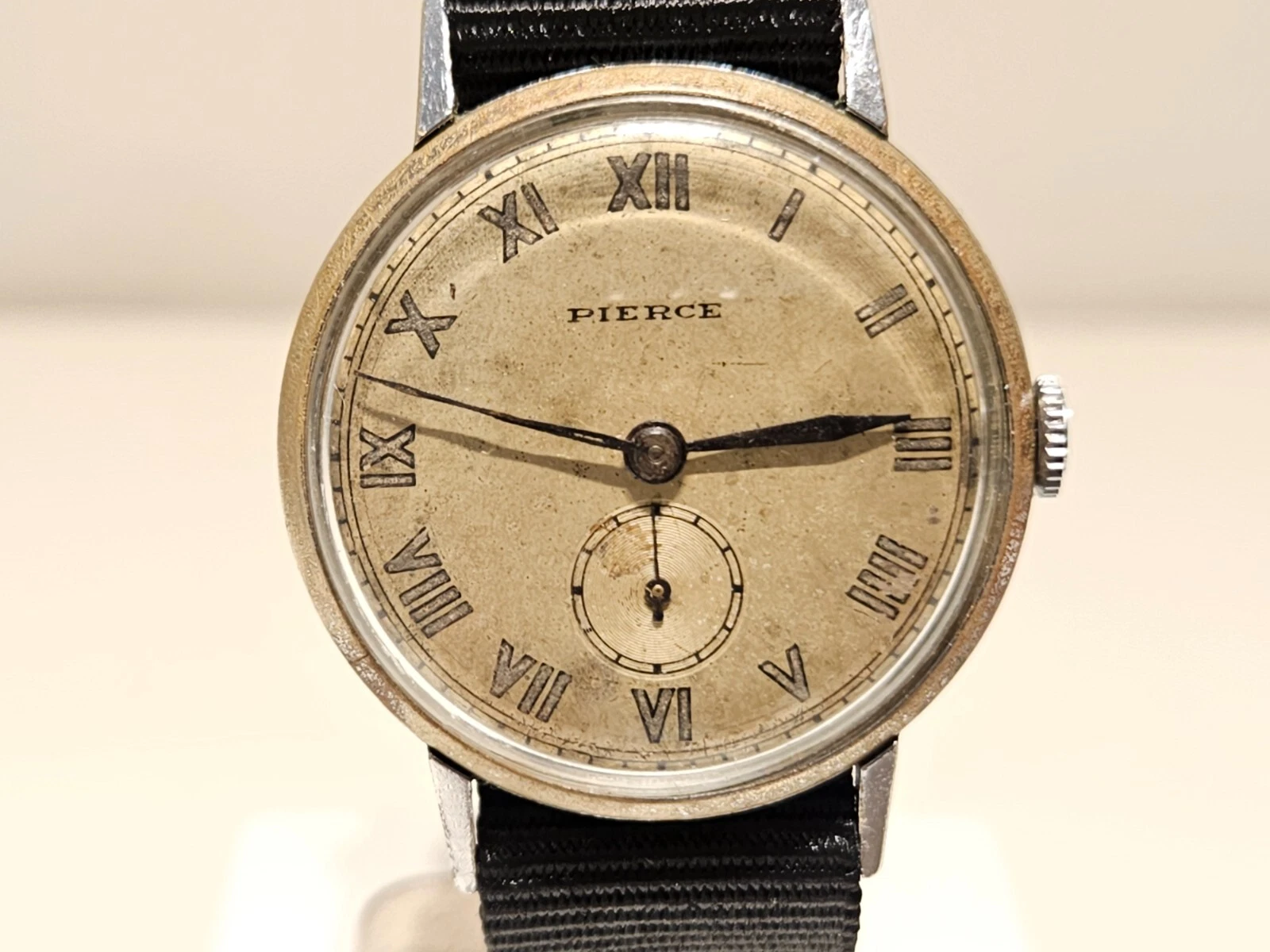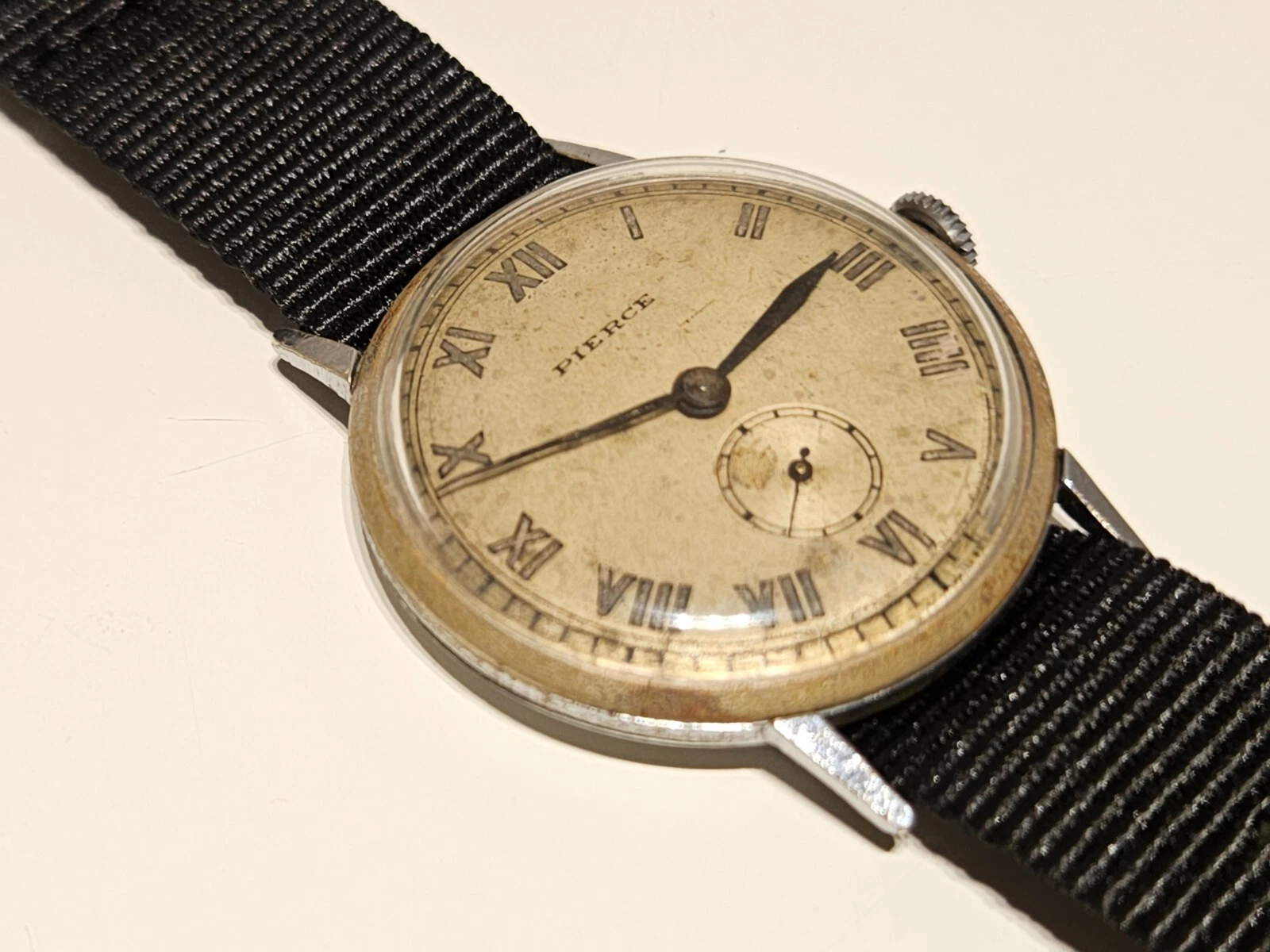 VINTAGE RARE WW2 ERA SUB SECOND CHROMED MEN'S SWISS 35mm WATCH "PIERCE"15J