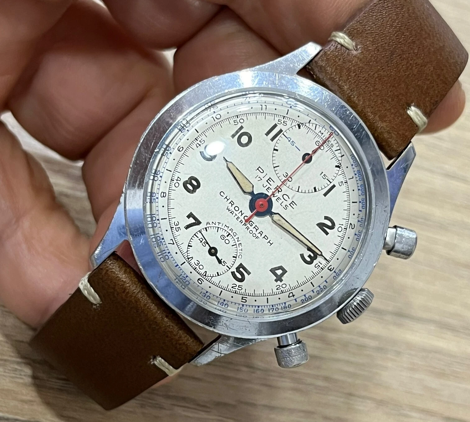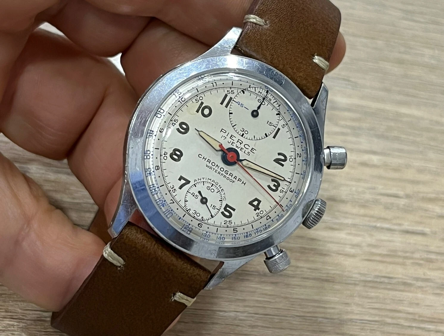 PIERCE CHRONOGRAPH 37 mm MANUAL Cal. Pierce 134 RARE MEN WRIST WATCH