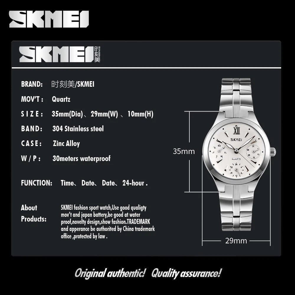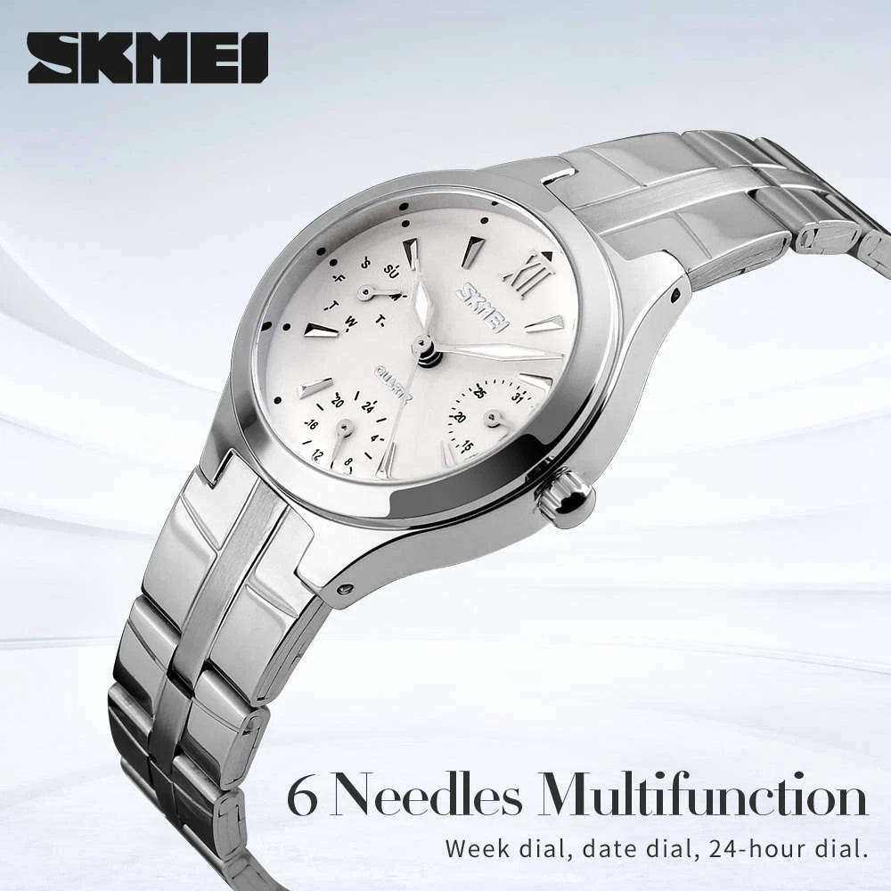 Skmei 9132 Women's Steel Date Day Classic Modern Silver Wrist Watch